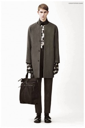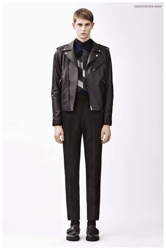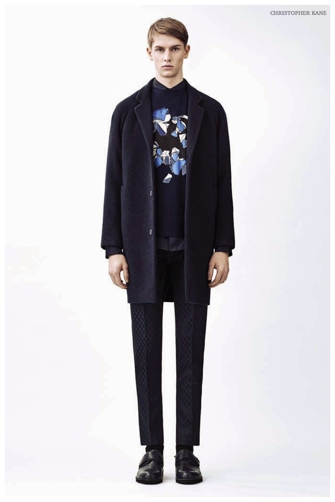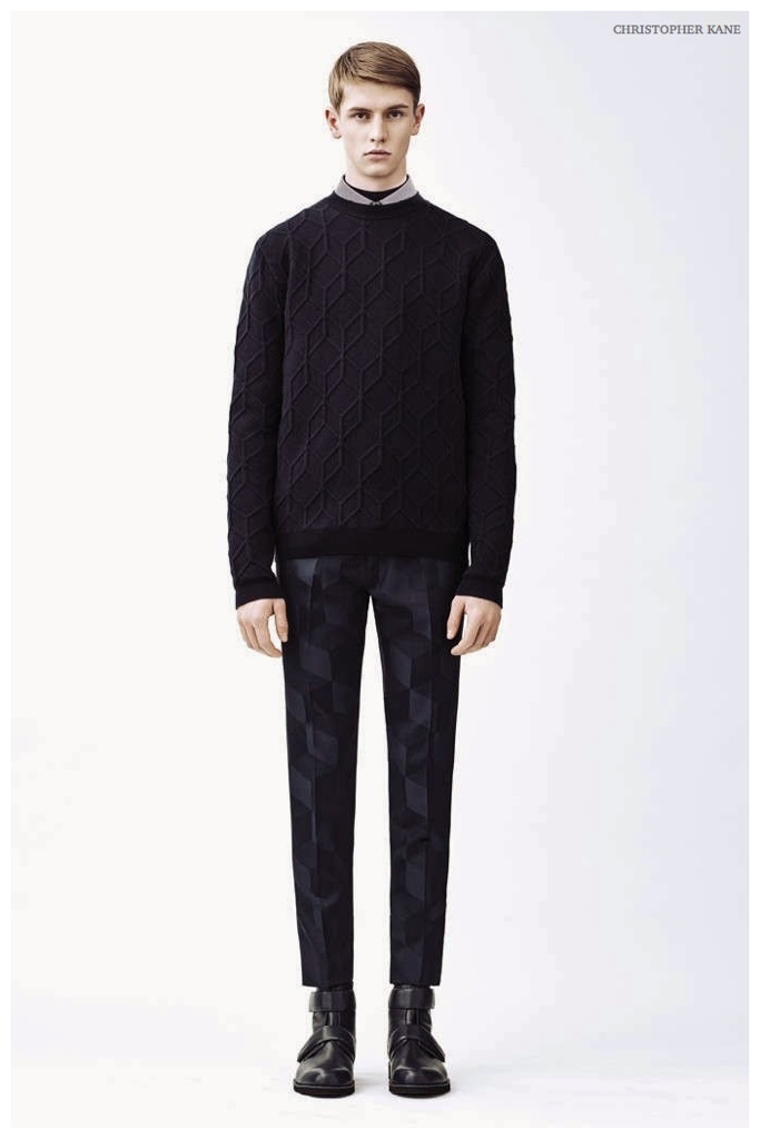 WWD shares a look at Christopher Kane’s fall-winter 2015 menswear collection. Walking through his latest lineup, which he will be showing by appointment during Paris Fashion Week, Kane explained, “The boys love a strong theme, strong color and decoration. The patterns are cubic, broken-up geometrics and chevron.” With a certain ease, Kane’s signature penchant for prints dresses up simple staples, cut with modern proportions. Pullovers, knitwear, lean jackets and suiting separates come together with a graphic appeal.