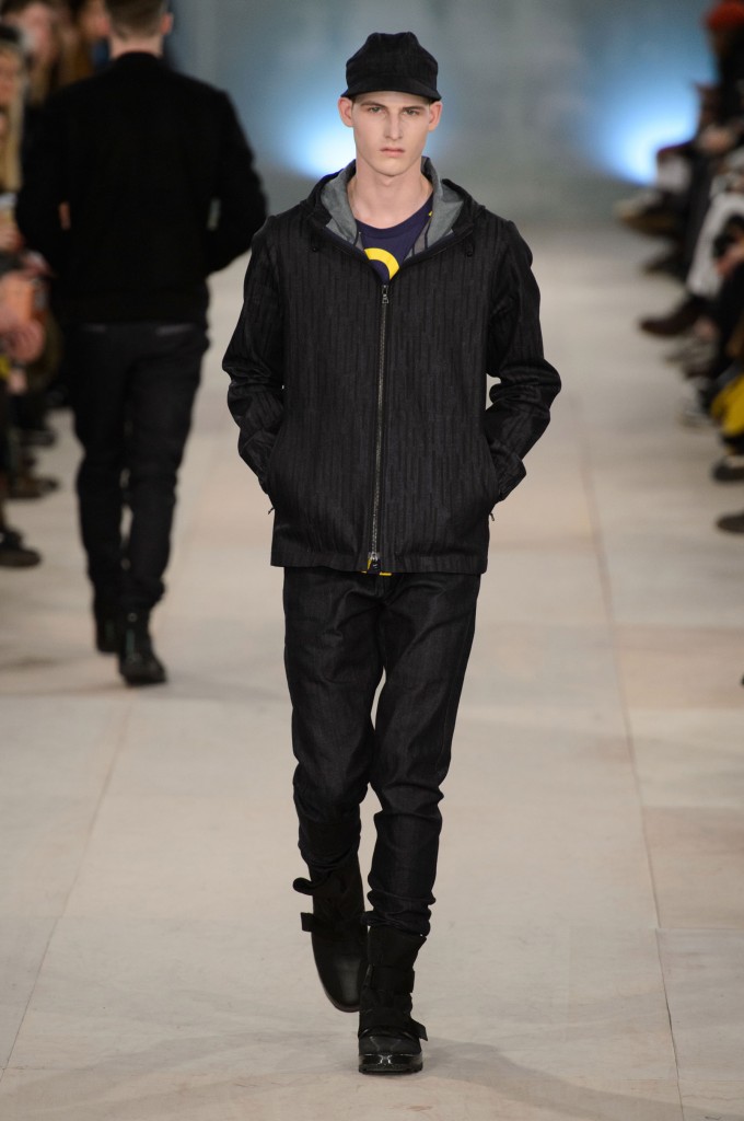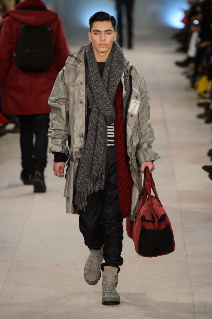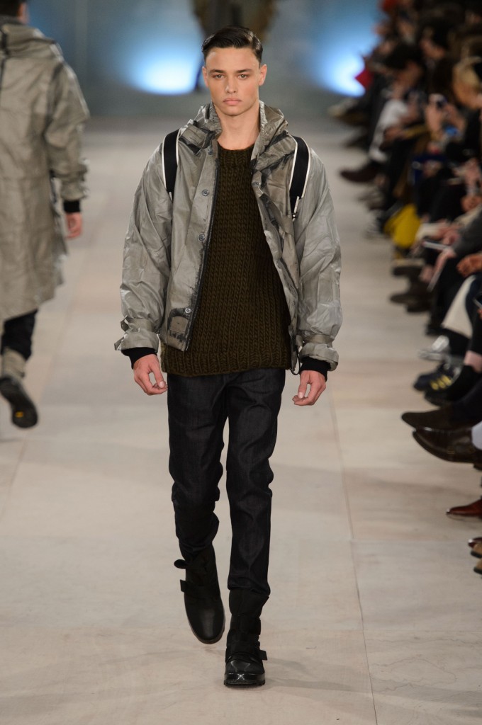 Designer Christopher Raeburn sent his explorer off to Mongolia for the season. One of London Collections: Men’s strongest examples of sporty menswear, the range seamlessly blended an active appeal with a stylish point of view. Returning from Mongolia with an eclectic wardrobe for the coldest of winters, Raeburn’s man put outerwear and knitwear in the spotlight.