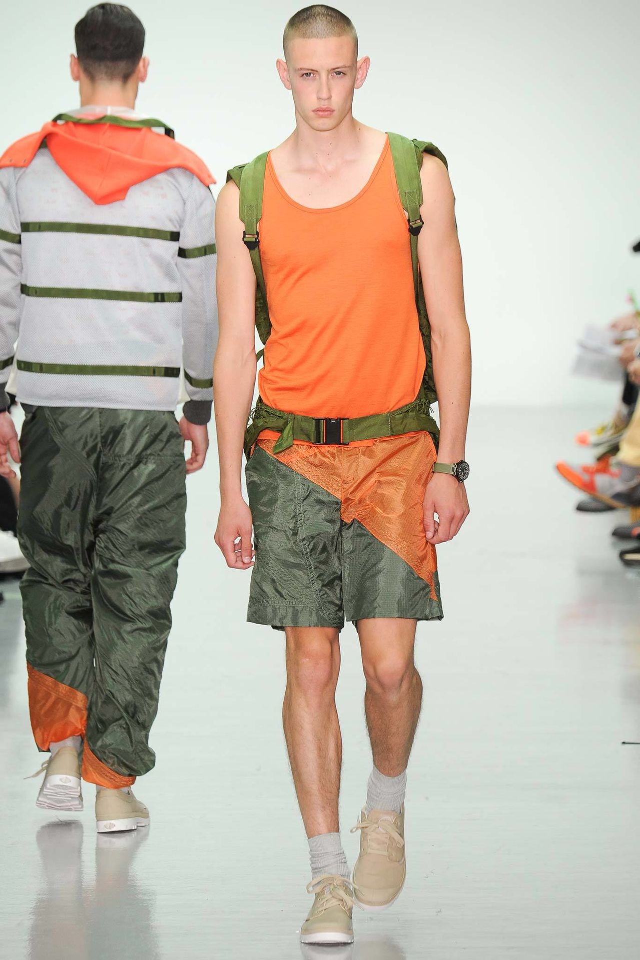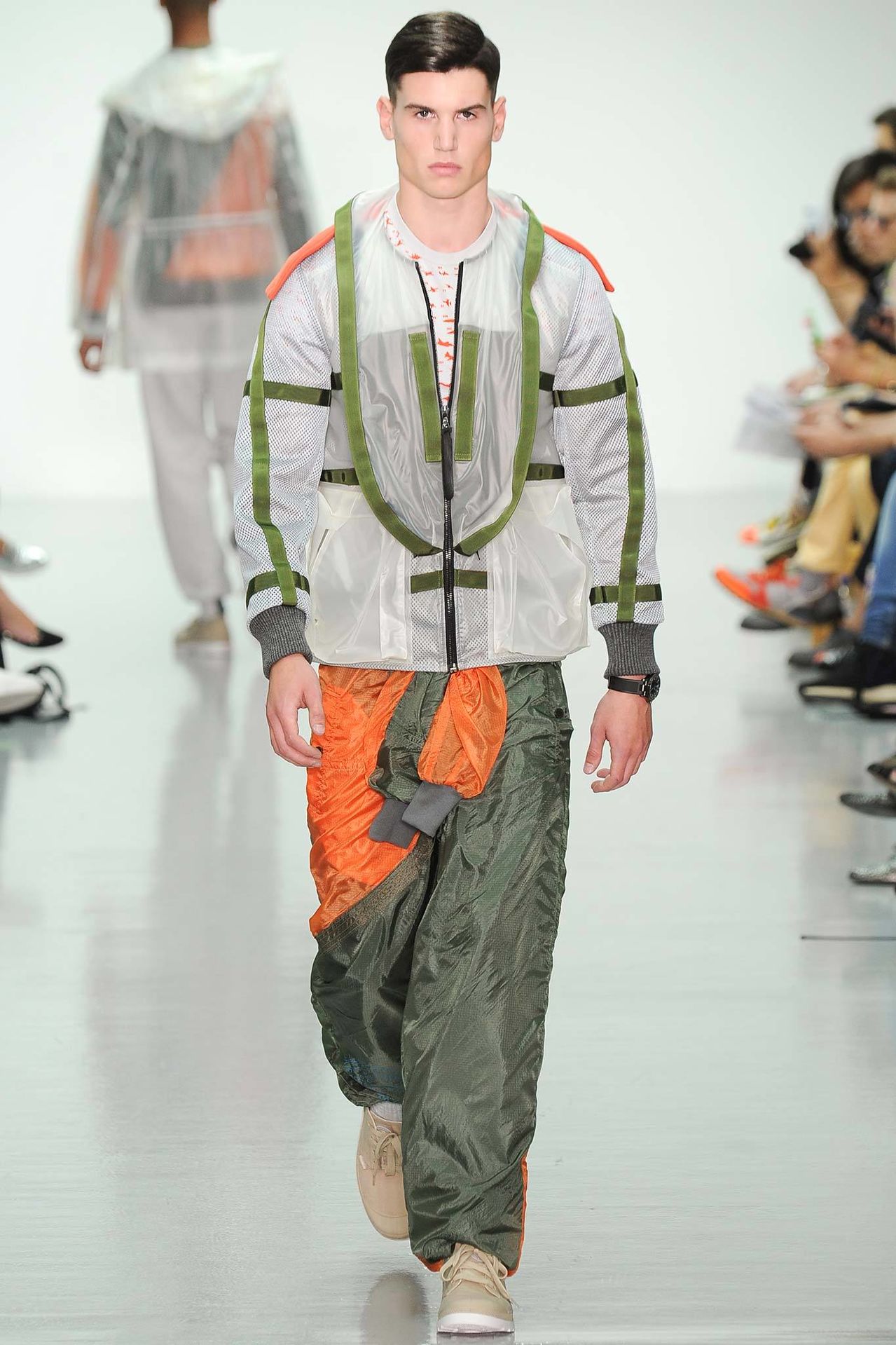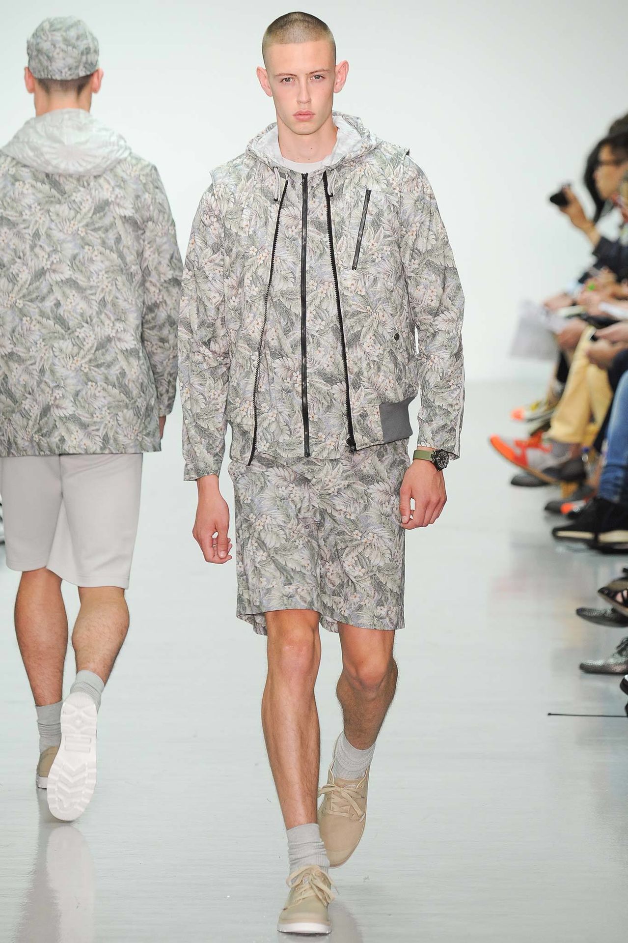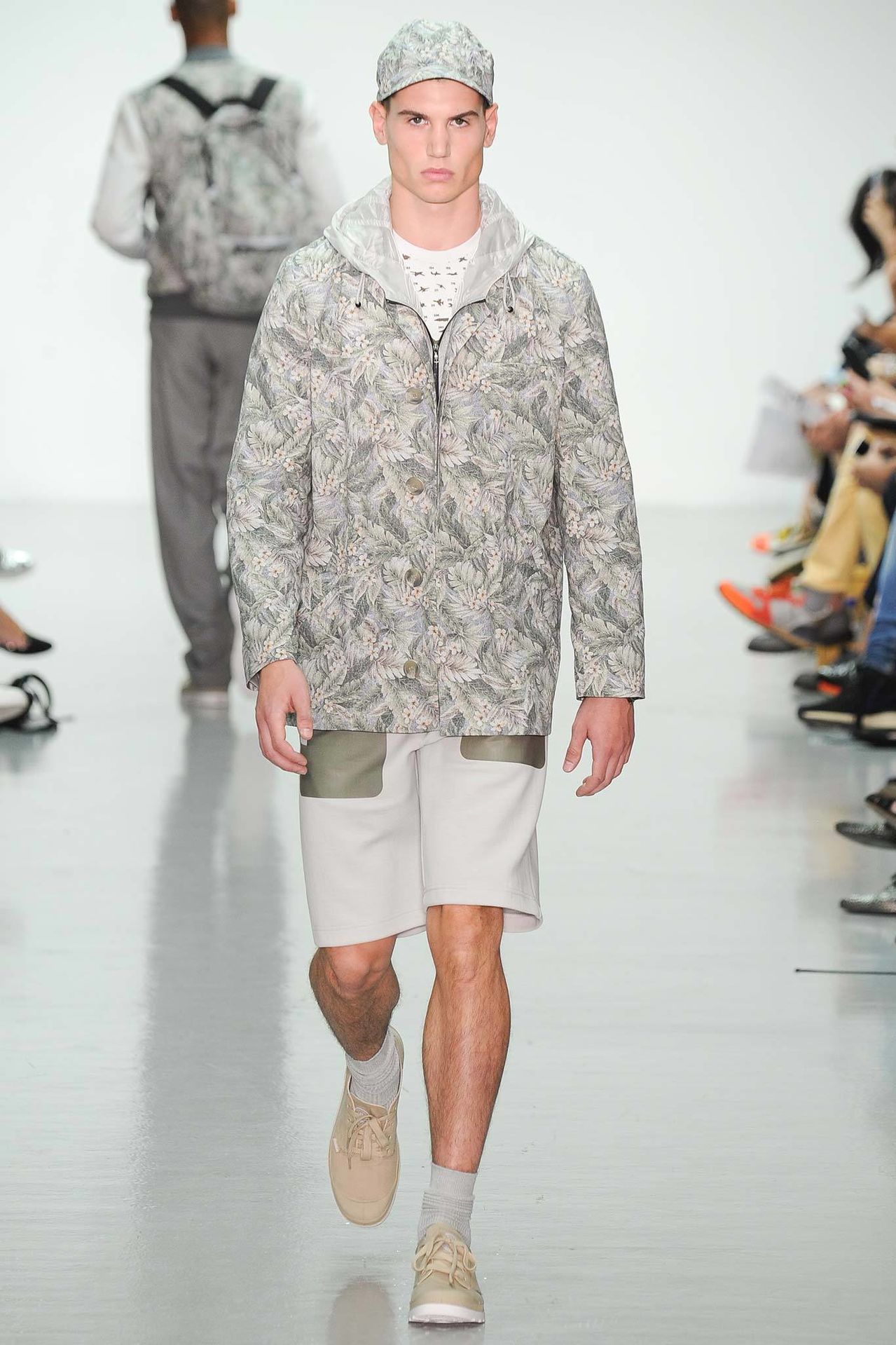 Christopher Raeburn Spring/Summer 2015–Designer Christopher Raeburn looked to the deserts of Arizona for inspiration this season, particularly the boneyards where old military aircraft find their way. Staying true to his sportswear roots, the season’s theme was applied to the collection with a minimal hand. Among dusty floral prints, plane fragments made their way into patterns that covered mac jackets, pullovers, shorts and hooded jackets.