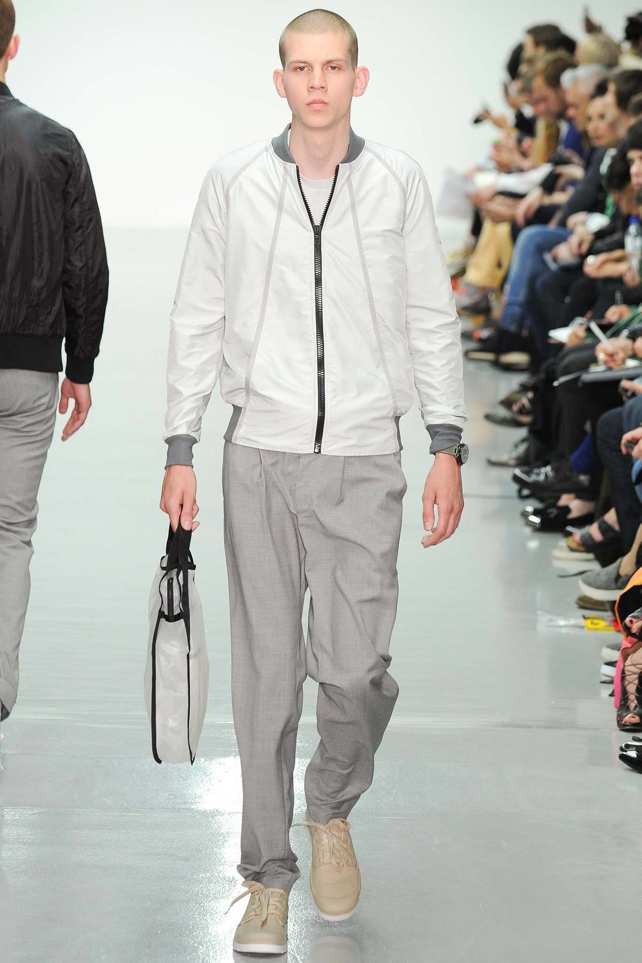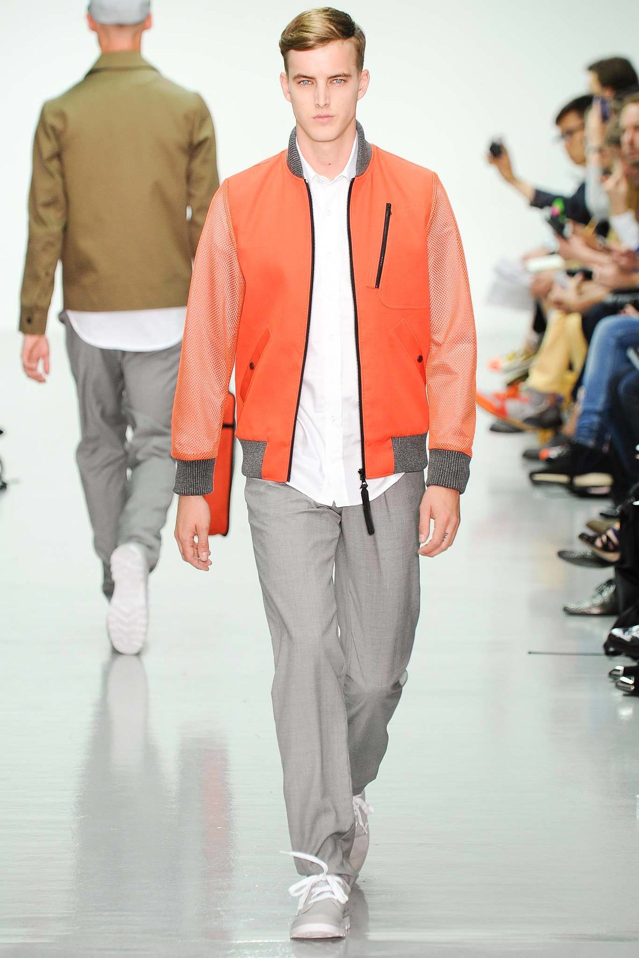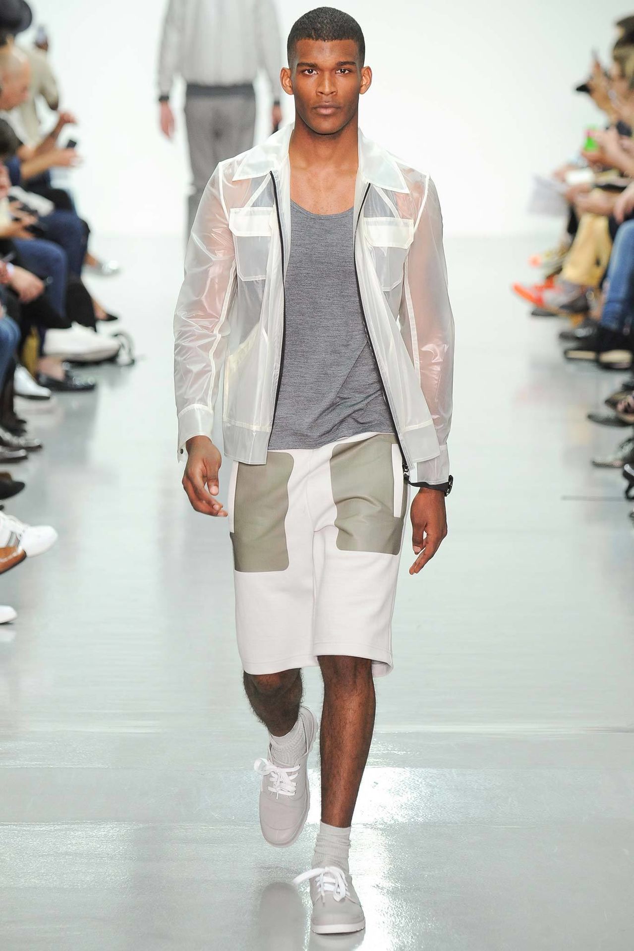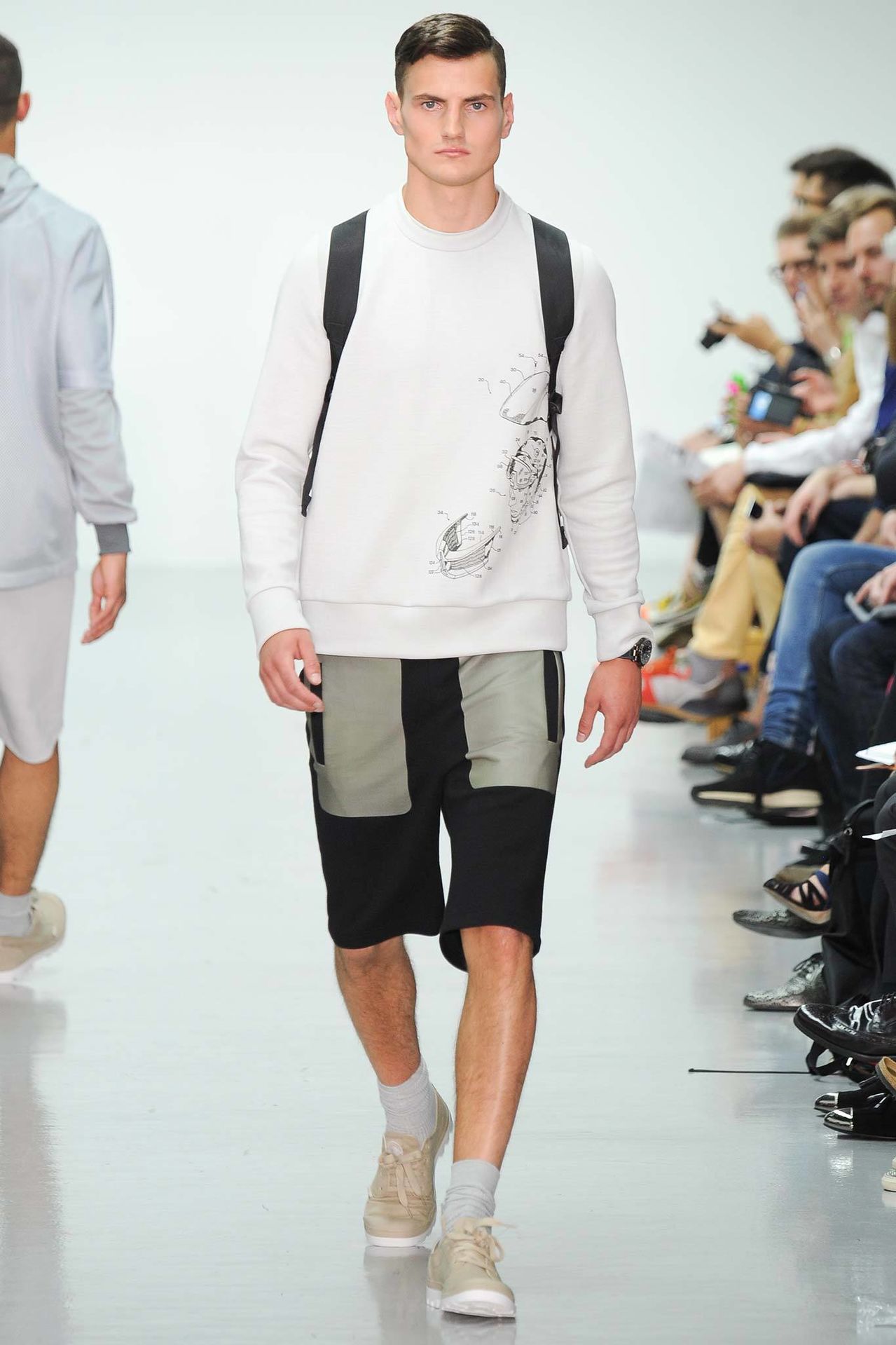 Christopher Raeburn Spring/Summer 2015–Designer Christopher Raeburn looked to the deserts of Arizona for inspiration this season, particularly the boneyards where old military aircraft find their way. Staying true to his sportswear roots, the season’s theme was applied to the collection with a minimal hand. Among dusty floral prints, plane fragments made their way into patterns that covered mac jackets, pullovers, shorts and hooded jackets.