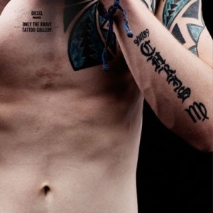 Christopher’s Body of Work-Dressed in a simple tank and a pair of dark wash jeans, Re:Quest model Christopher Wetmore is enlisted by Diesel to show off his colorful tats for their Only the Brave Tattoo Gallery.