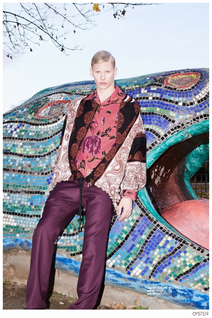 Walk the Walk–Oyster magazine casts model Claes Nordstrom for a spread lensed by fashion photographer Mark Rabadan. Featuring eccentric looks for fall, Claes is captured outdoors as he struts in statement fashions from Paul Smith, Vivienne Westwood, Saint Laurent, Gucci and more.