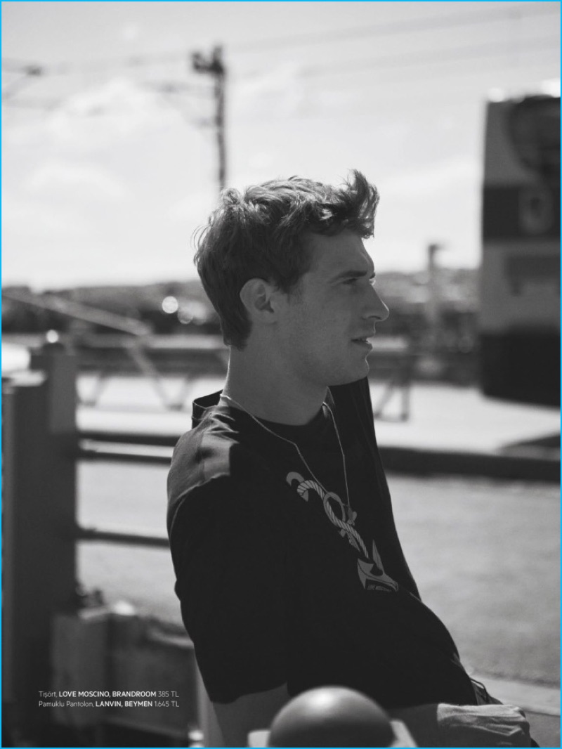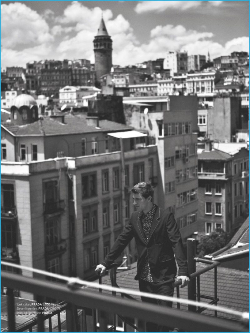 The current face of Missoni, French model Clément Chabernaud returns to the pages of L’Officiel Hommes Turkey. After channeling Johnny Cash for a previous story, this time around, Clément covers the magazine. Photographed by Koray Birand, Clément departs on a summer holiday, traveling to Istanbul. Taking in the sights in true tourist fashion, the leading model is styled by Ayca Elkap. Sporting a mixed wardrobe, Clément showcases relaxed tailoring, easy tees, summer shorts and more essentials from brands such as Dries Van Noten.