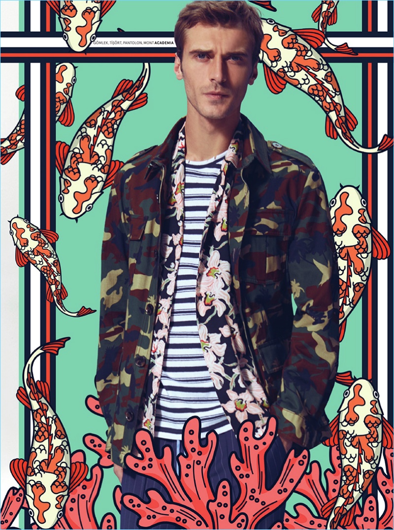 PinFrench model Clément Chabernaud sports a spring look from Academia.
