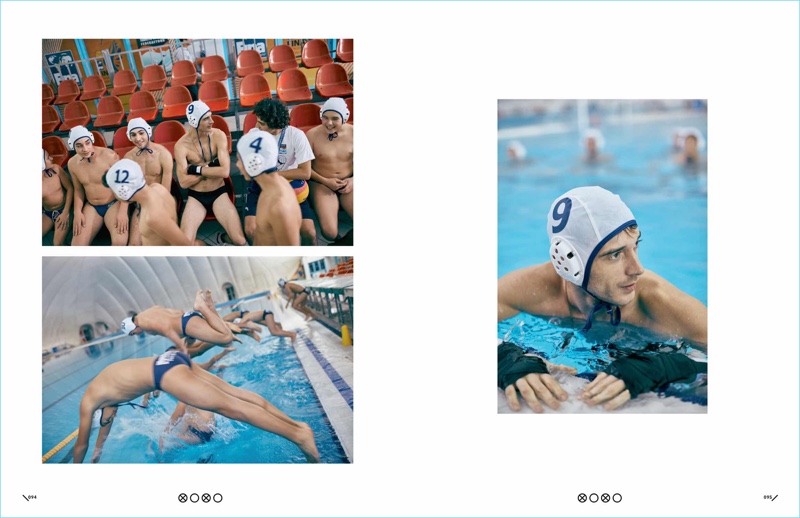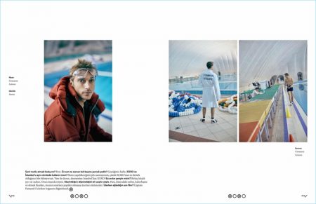 Clément Chabernaud takes a dive for the latest cover story of XOXO The Mag. The French model reunites with photographer Koray Birand for the editorial. Joining a men’s swim team for the day, Clément rocks active styles. Stylist Deniz İrem Cek outfits the leading French model. Front and center, Clément wears brands such as Adidas, Balmain, and Calvin Klein.