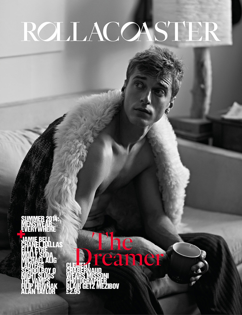 Dream On–British magazine Rollacoaster envisions the perfect dream world for its summer issue. Capturing the theme, stylist Andrew Davis works with photographers Blair Getz Mezibov, Philipp Mueller, Jam Sutton and Nick Maddow for the issue’s dreamy covers. Pulling out all the stops, the magazine’s summer edition has four covers featuring models Clement Chabernaud, Filip Hrivnak, George Admiraal and Mias van der Westhuyzen.