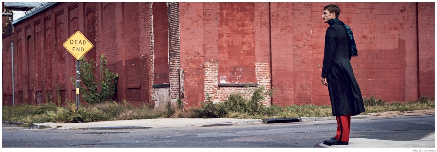 After donning choice pieces from Bottega Veneta’s fall-winter 2014 collection for a Man of the World shoot, French model Clément Chabernaud reunites with the independent magazine for a new editorial. Connecting with photographer Nathaniel Goldberg, Clément offers a wide view of his New York surroundings. From lounging indoors to venturing outdoors, Clément’s wardrobe includes sharp, tasteful pieces, highlighting fine knitwear, sleek coats, colorful trousers and more. / Styling by Michael Philouze.