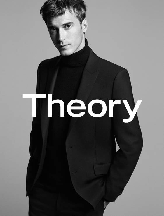 After starring in Theory’s spring-summer 2015 campaign, model Clément Chabernaud reunites with the brand for fall. Photographed by David Sims once more, the leading French model poses for essential studio images. Showcasing Theory’s minimal offering, Clément models a classic suit, alternating between a simple tee and a smart turtleneck.