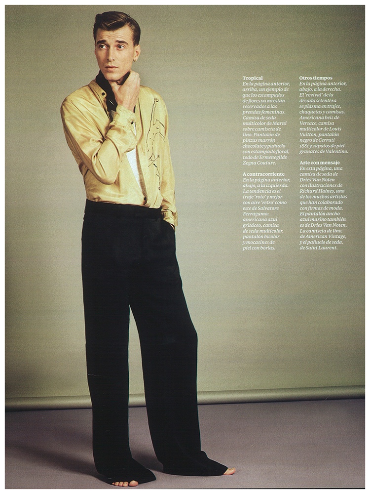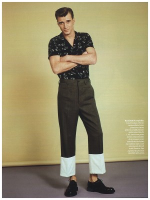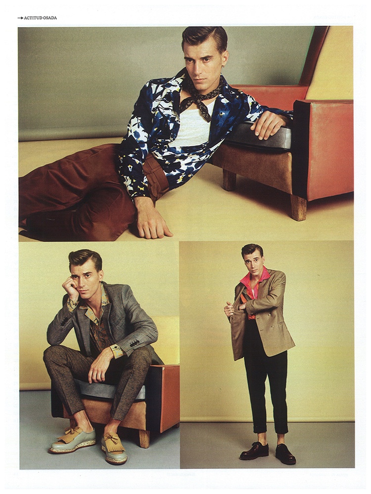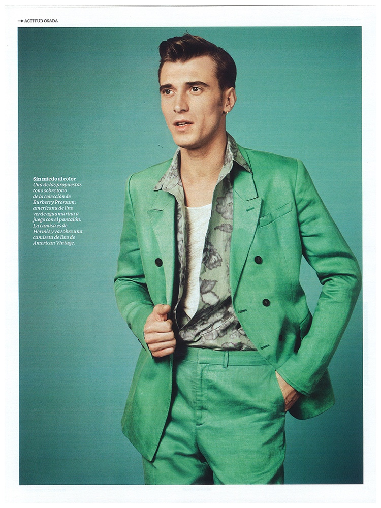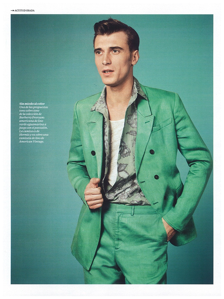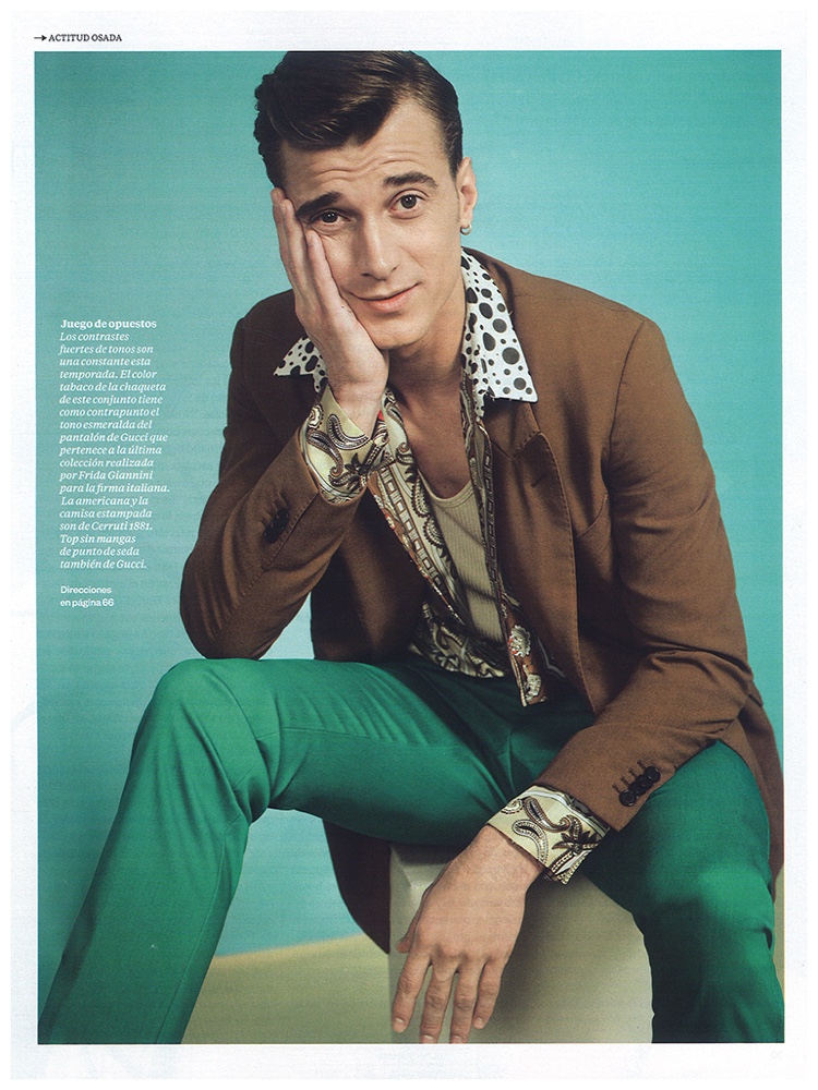 Sergi Pons photographs Clément Chabernaud for the latest cover story from Spanish magazine El Pais Semanal. Embracing a retro flair, Clément dons colorful suits and bold fashion pieces from the likes of Loewe, Burberry Prorsum, Gucci and Prada, as pulled together by stylist Ana Murillas.