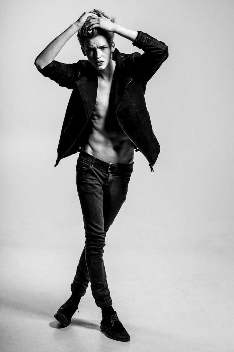 Shooting Valerio–Just in time for fashion week, which kicks off later this month for spring/summer 2015, IZAIO model up and comer Valerio hits the studio with photographer Richard Kranzin. Posing for black & white images, the 18 year-old with bee-stung like lips doesn’t have to do much to keep interest.
