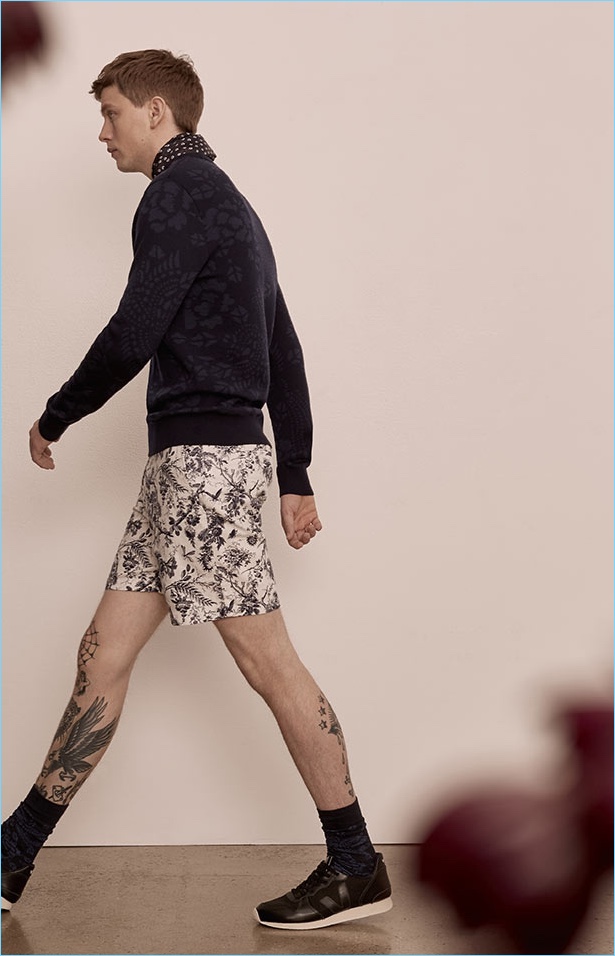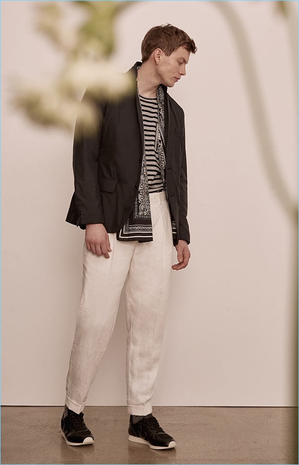 Discussing the outing, Club Monaco vice president of men’s design, Matthew Millward shares, “This season our overarching focus is pattern, incorporating florals and various renditions of stripes paired together in a novel way.” Taking to a studio for another look at spring’s smart collection, Club Monaco taps model Sid Ellisdon for a new lookbook.