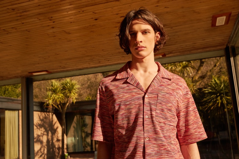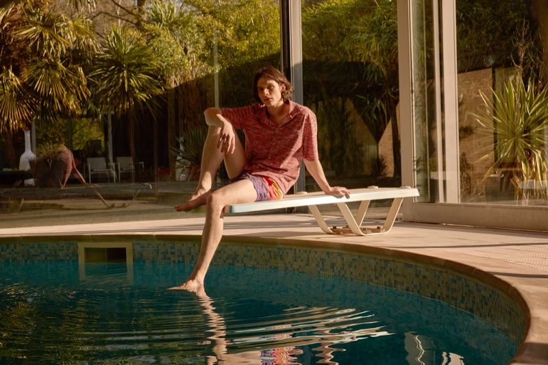 Captured poolside, Liam Gardner wears a Missoni shirt and swim shorts.Pin