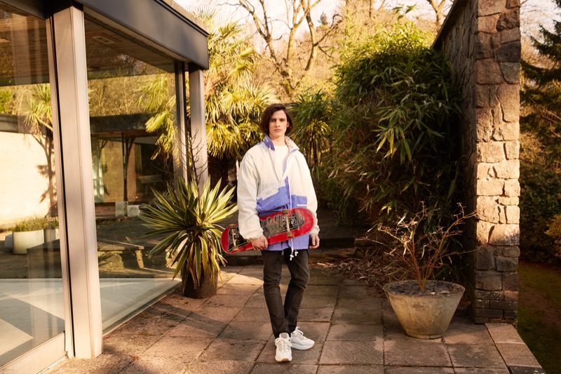 Liam Gardner sports a Maison Margiela nylon ripstop jacket for Coggles’ spring-summer 2019 campaign.