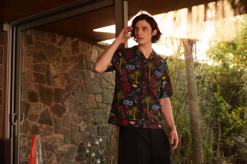 Relaxing, Liam Gardner sports a Neil Barrett shirt for Coggles' spring-summer 2019 campaign.Pin