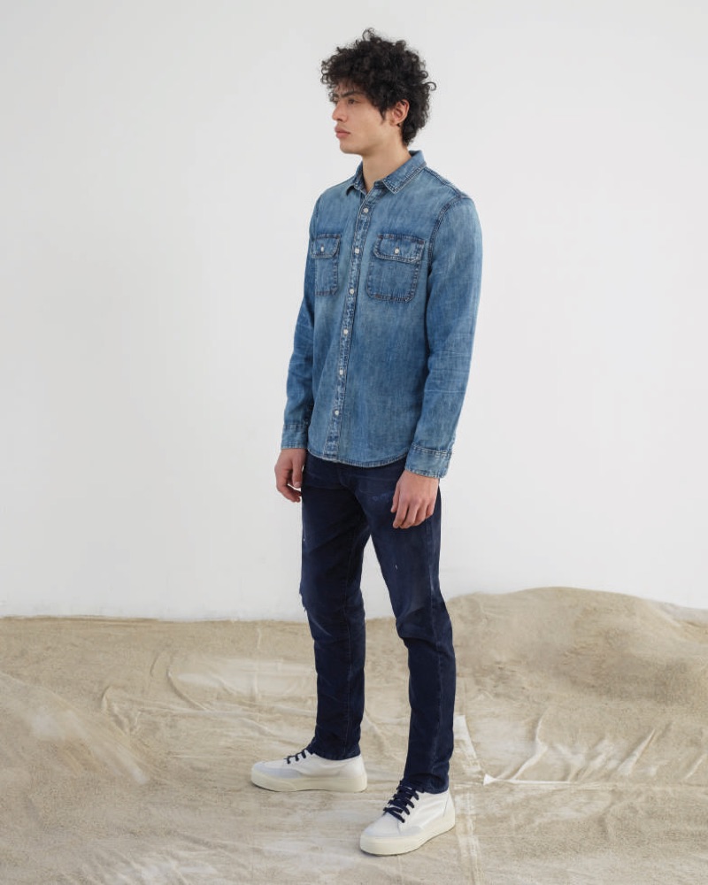 AG Jeans chases the idea of “Summer’s Shadow” with its fall-winter 2019 men’s collection. Reflecting the transition from summer to autumn, the collection mixes light and dark neutrals. A lineup of casual essentials takes center stage for the season’s lookbook. Model Cristiano Palmerini stars in the laid-back outing. Colored jean jackets join a range of slim-fit jeans and easy tees. Pleated trousers and classic button-down shirts showcase a smart approach to everyday style. Meanwhile, boxy sweaters, turtlenecks, and denim shirts complete AG Jeans’ offering.