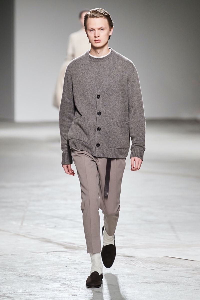 Agnona reenters the men’s market with its fall-winter 2020 collection. The fashion brand returns to menswear following a 20-year hiatus. Creative director Simon Holloway looks to Agnona’s heritage in balancing a luxurious appeal with a comfortable sensibility. For Holloway, this idea is not confined by an impeccable suit but expanded by a selection of tailored jersey menswear, juxtaposed with sleek coats and refined knitwear. An excellent start to a new chapter for Agnona, fall delivers a smart appeal with neutral tones and versatile wardrobe pieces.