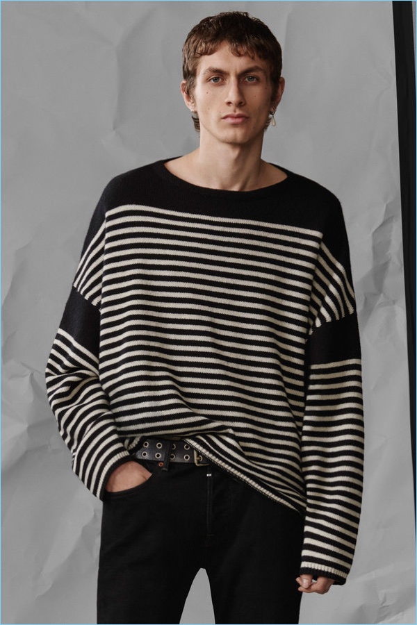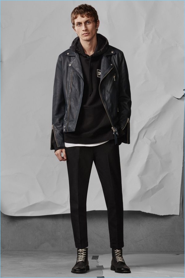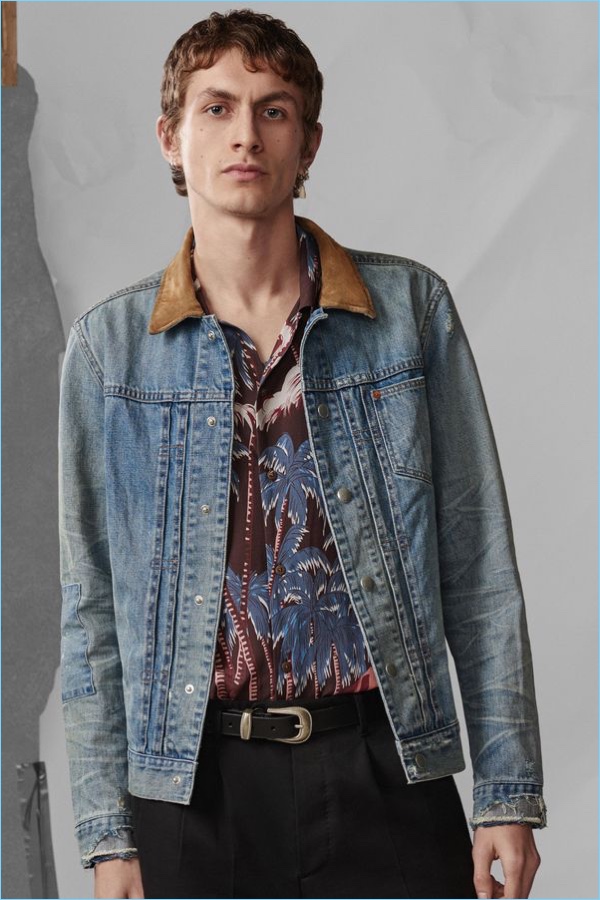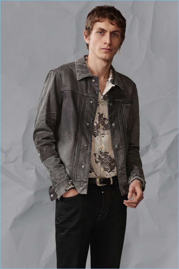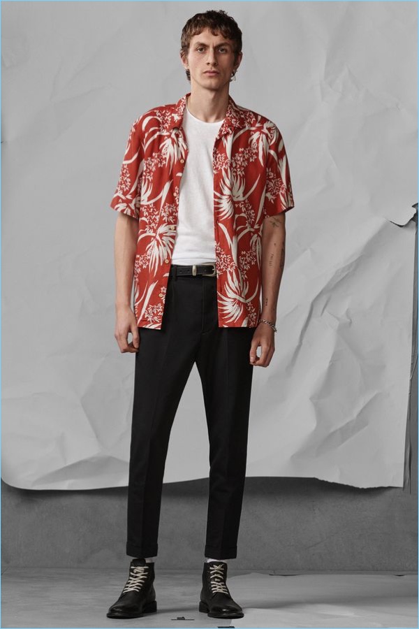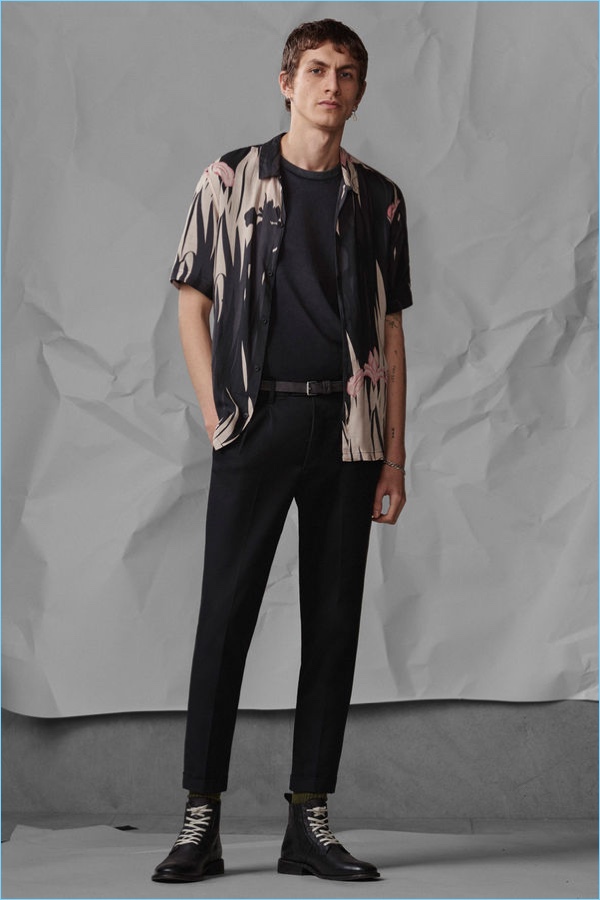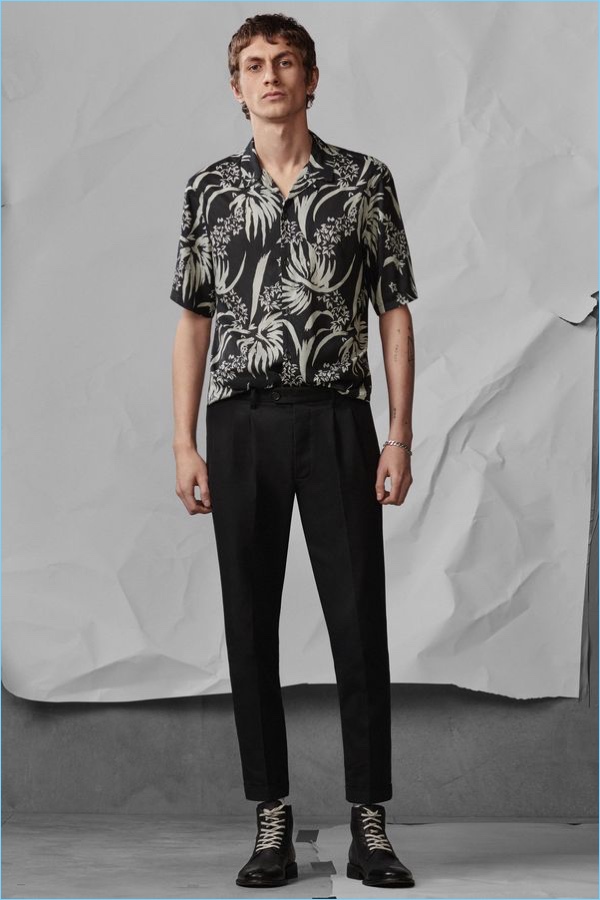 Following the unveiling of AllSaints’ spring 2018 campaign, we take a look at the brand’s latest arrivals. Henry Kitcher stars in the season’s lookbook. He perfectly represents AllSaints’ unaffected cool. Posing against a crinkled paper backdrop, Henry wears key pieces. AllSaints’ picture-perfect wardrobe includes cool signatures such as the brand’s leather jackets and skinny jeans. Additional must-haves range from a striped sweater and simple bomber jacket to a Hawaiian print shirt. The brand also offers a sleek pair of essential trousers.