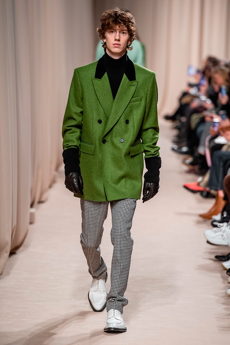 Alexandre Mattiussi delivers bourgeois style for AMI’s fall-winter 2019 collection. Mattiussi interprets a prim and proper take on Parisian style for the season. Monochromatic color schemes take the focus with oversized coats, chunky knitwear, and slouchy trousers. Hues of cream and brown open themselves up to splashes of green and red. Meanwhile, statement scarves accent smart coats and covetable knits. In addition to a series of chic coats, AMI’s must-haves include shirts with elongated sleeves and plunging v-neck sweaters.