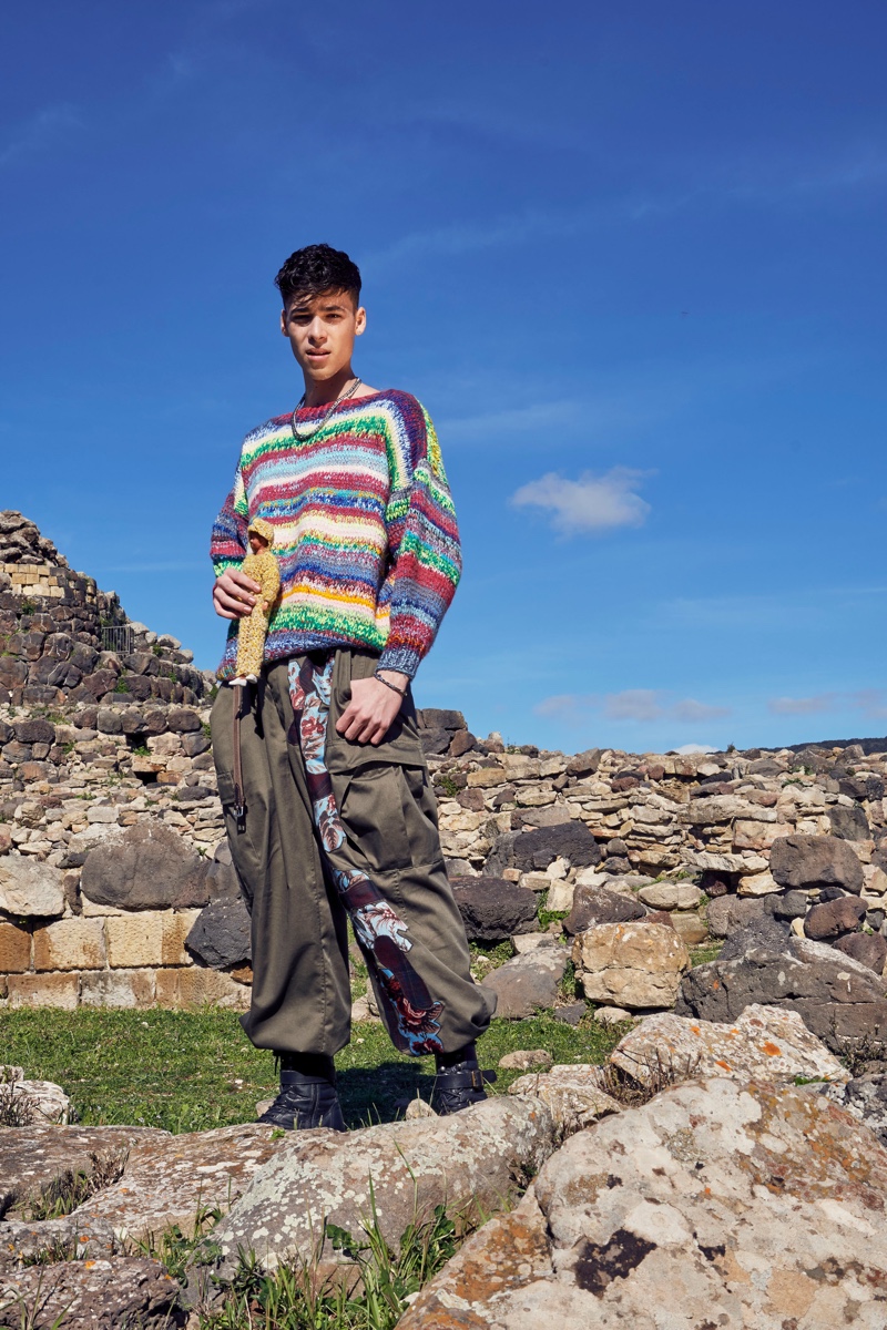 Antonio Marras invites us to the Barumini comune in Sardinia, Italy, for his fall-winter 2021 men’s collection entitled “A Story of Intense Times.” Marras looks to the region’s rich history and Sardinian tradition to inform the season. As a result, the rugged nature of the outdoors comes into contact with relaxed tailoring. Neutral tones dress jackets, coats, shirts, and trousers as Marras presents a wardrobe of interchangeable pieces. Meanwhile, varied patterns and patchwork add an artisanal flair to rustic looks. Furthermore, details like additional pockets suggest a utilitarian approach to fashion while a splash of tartan reinforces the season’s Sardinian inspiration.