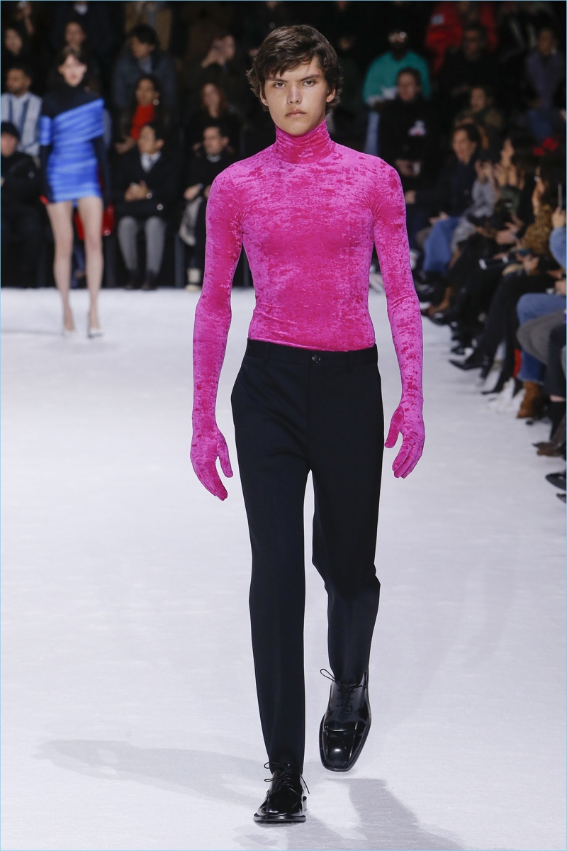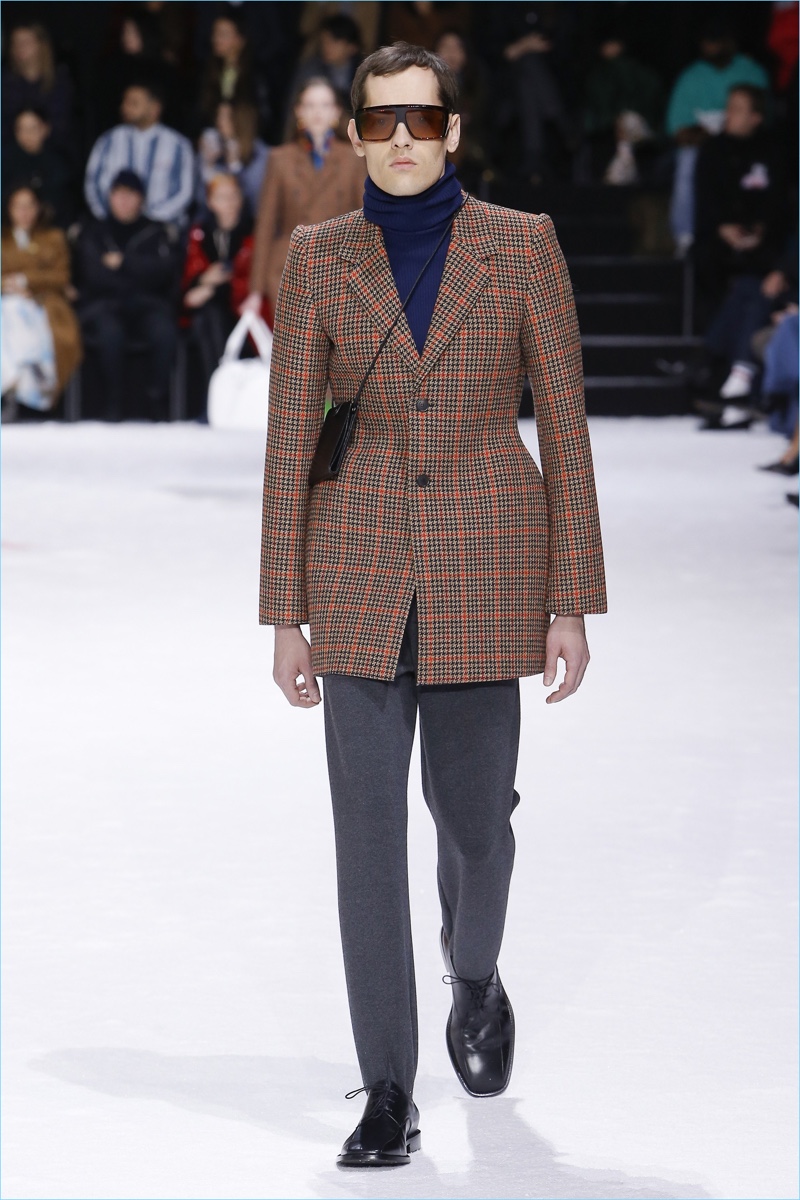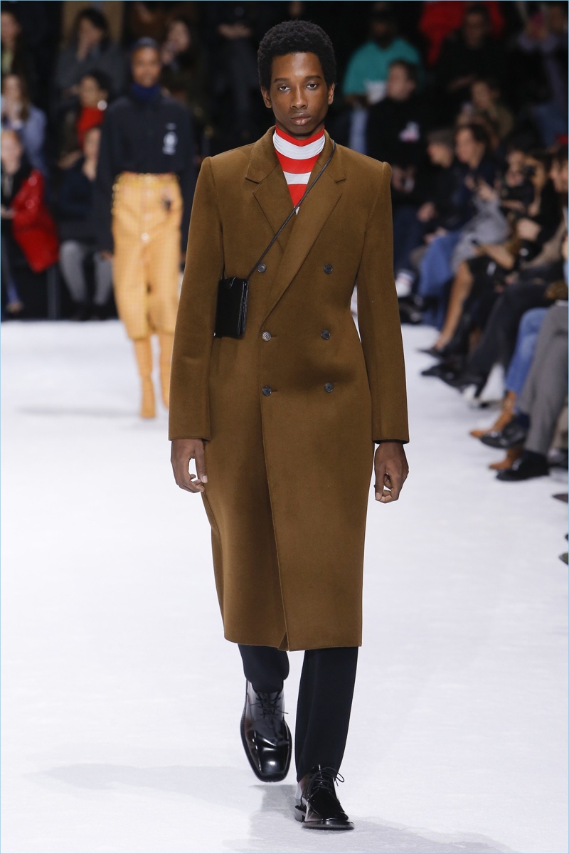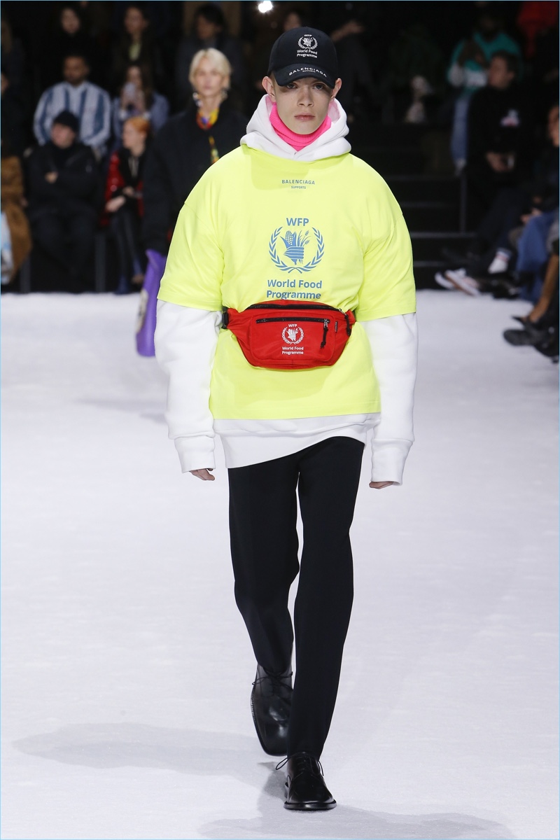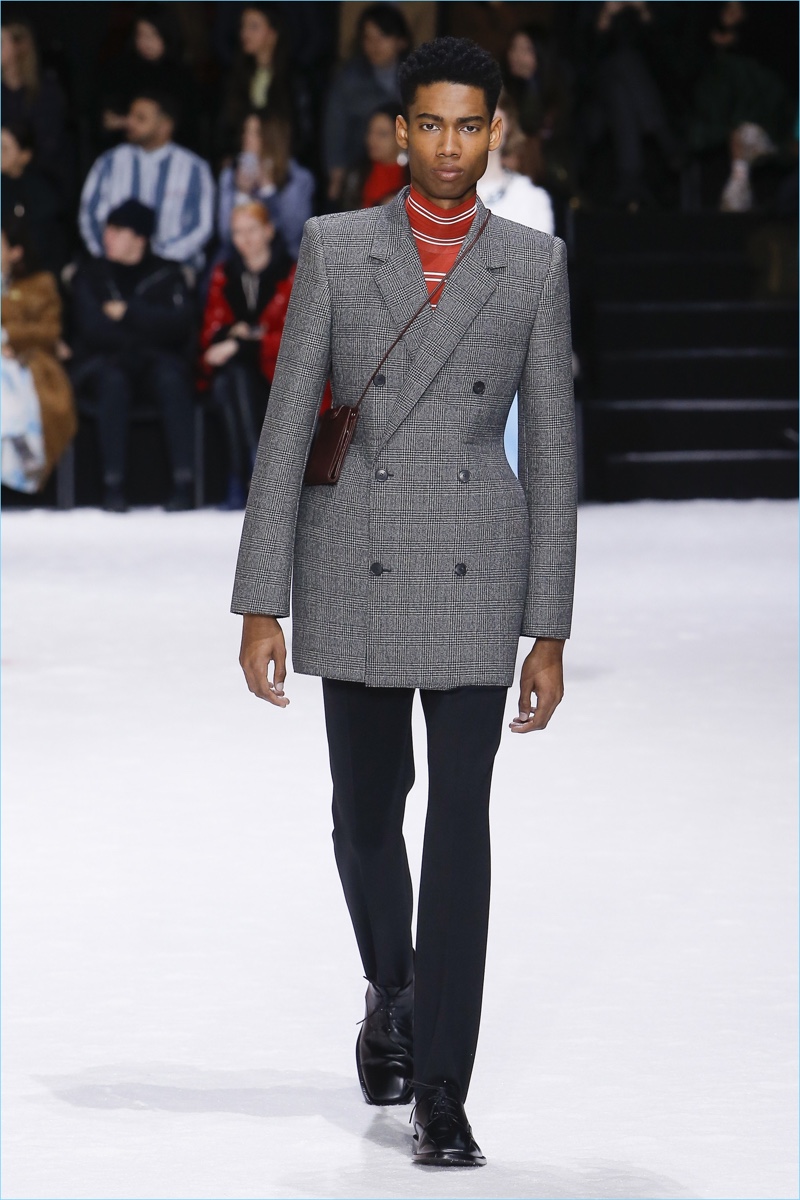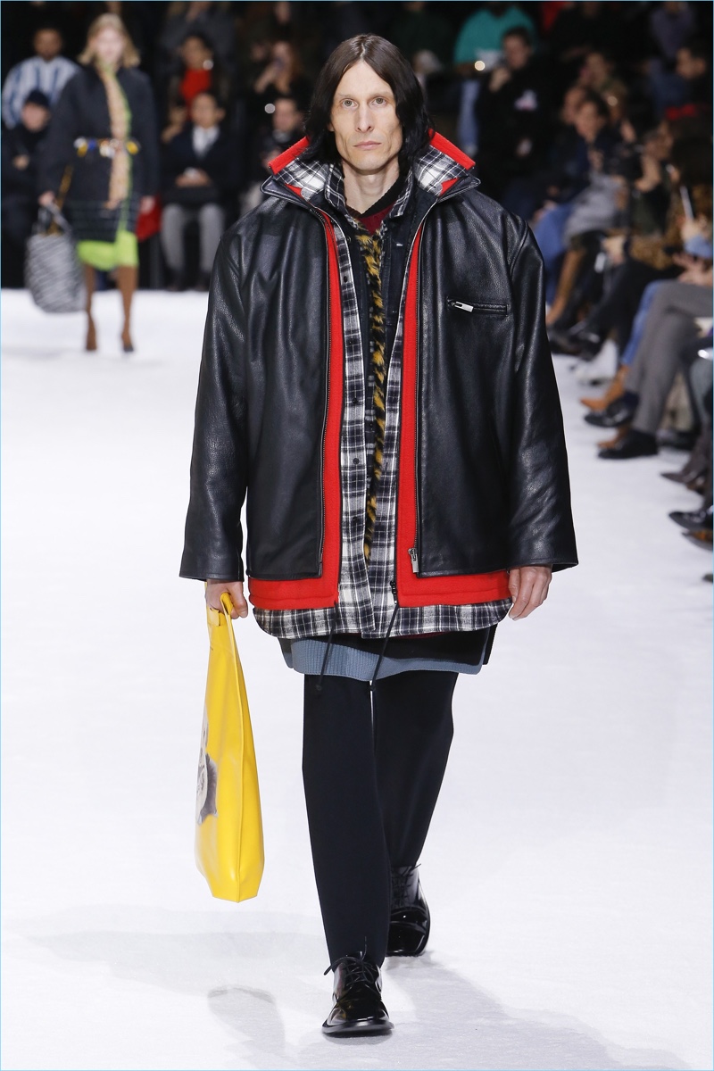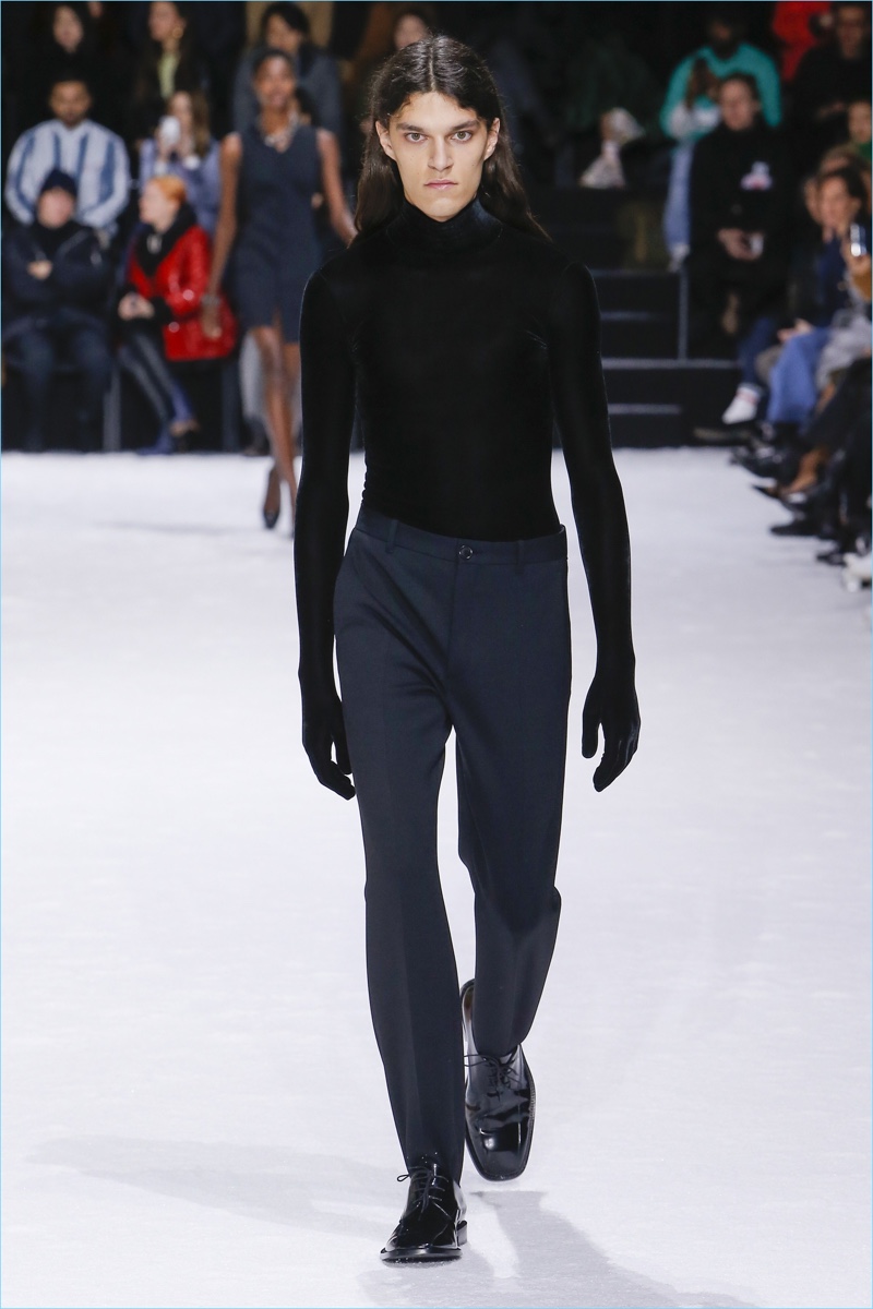 Demna Gvasalia follows the progression of the Balenciaga man for fall-winter 2018. The designer revisits the design codes of Cristóbal Balenciaga and transitions into his own aesthetic for the fashion house. Set against a snowy winter landscape, Gvasalia braces his man for the cold. Body-hugging turtlenecks open up to jackets and coats that pinch at the waist. Meanwhile, the initial formality of the season gives way to Gvasalia’s nostalgic approach towards streetwear. Nineties vibes reign as the designer embraces a vintage-like attitude. It’s here that oversized shirt jackets join layers of tees, sweaters, hoodies, and parkas. For footwear, the Balenciaga man is treated to retro-style sneakers and classic leather dress shoes.