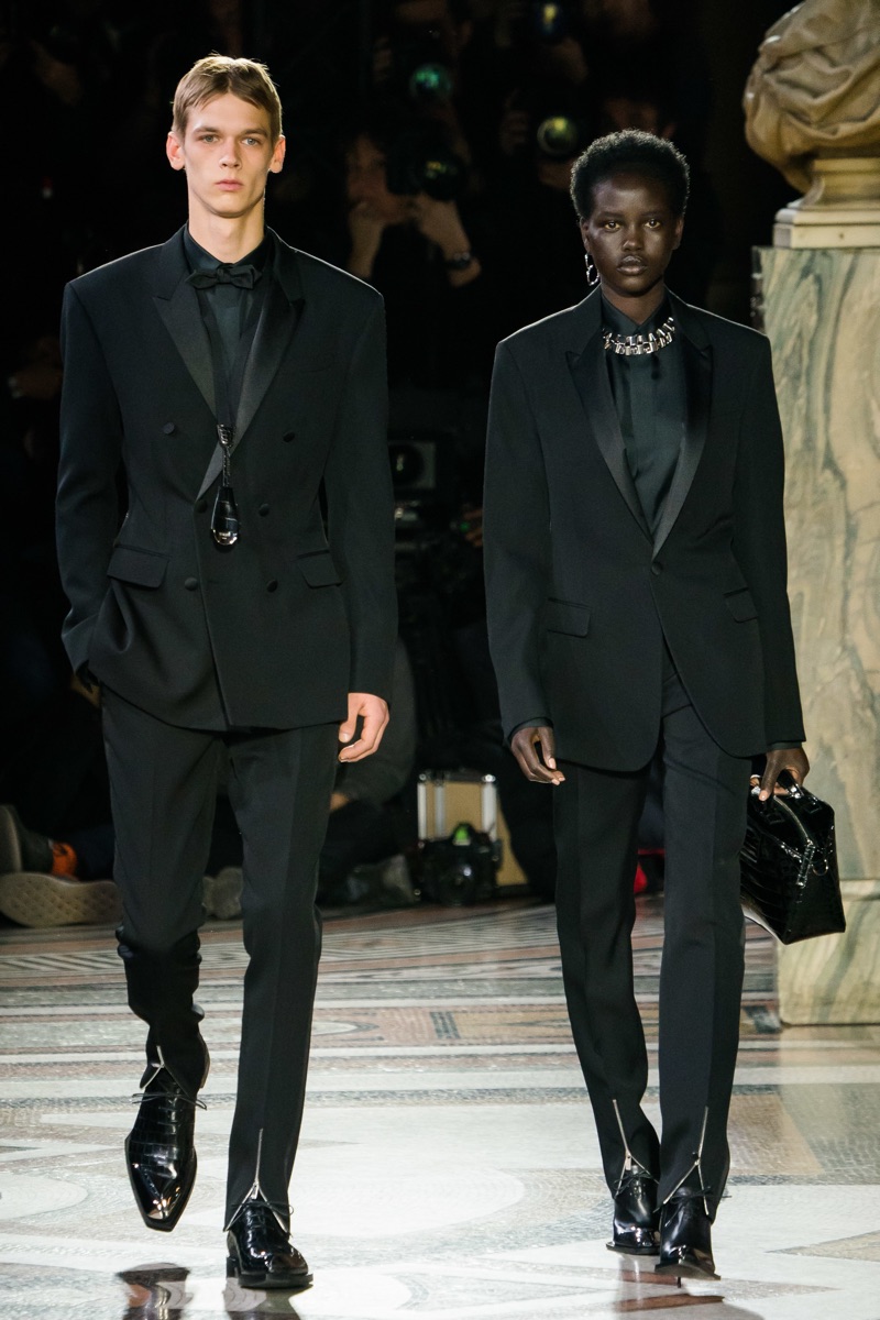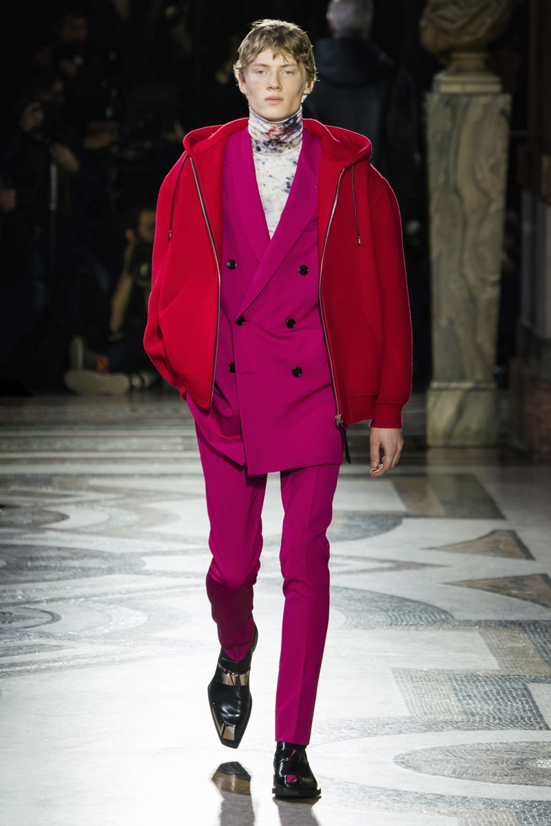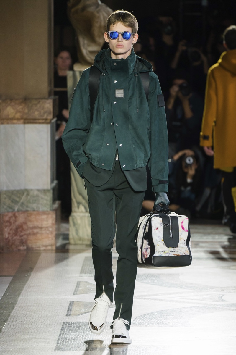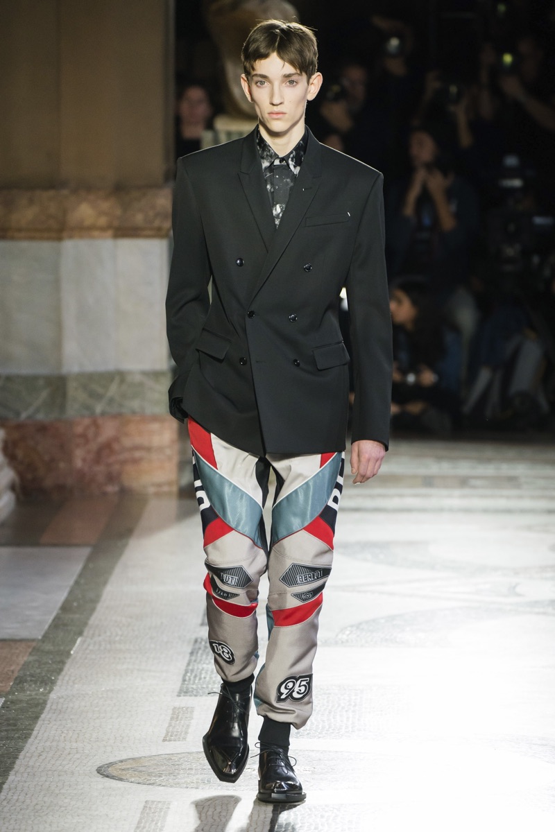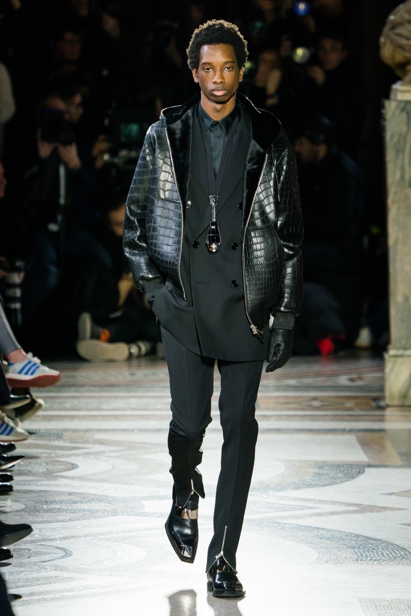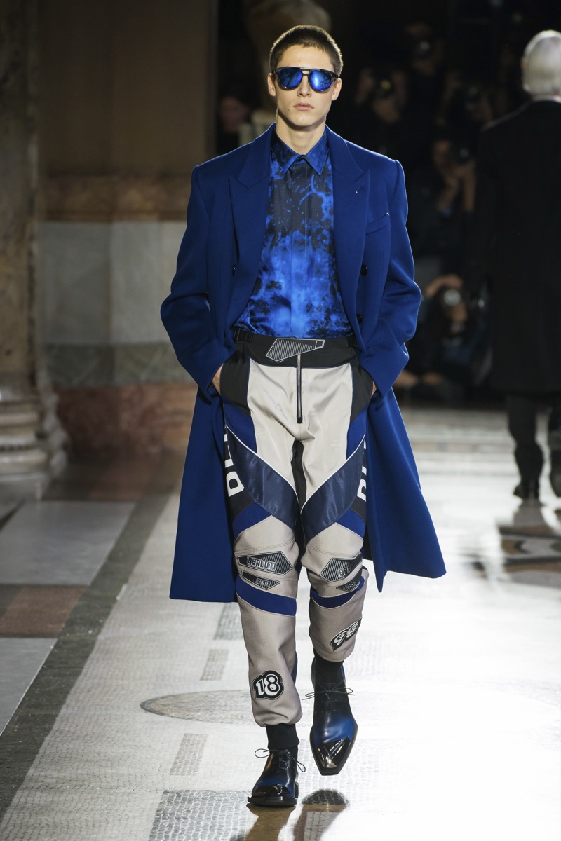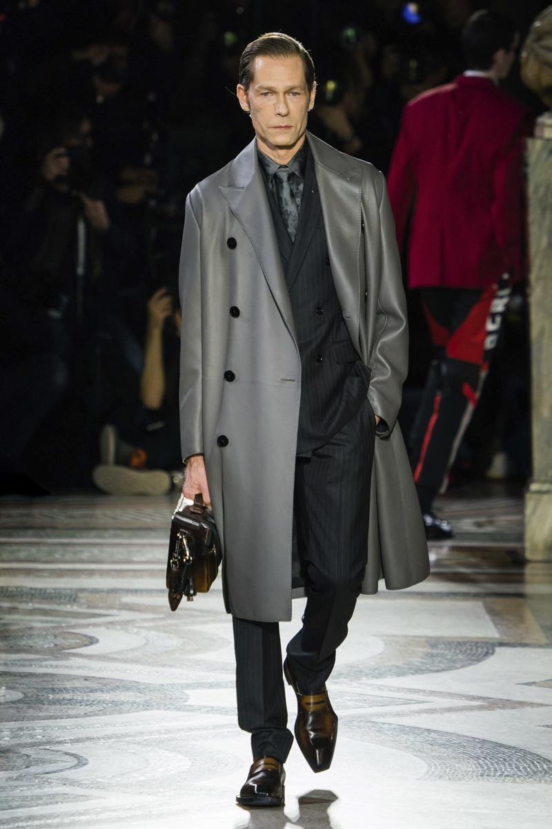 Setting the framework for his tenure at Berluti, designer Kris Van Assche finds inspiration in the fashion house’s notable craftsmanship. In particular, Berluti’s fine reputation for leather shoes and accessories influence the direction of Van Assche’s fall-winter 2019 collection. From the rich quality of leather garments to the print of stained marble from Berluti’s own factory, this season’s lineup mirrors the brand’s esteemed accessories. While the theme at heart plays into a series of impeccably tailored suits and coats, Van Assche perhaps hints at what’s to come for Berluti. Casual pieces like a parka, bomber, and hoodie offered a glimpse into the future.