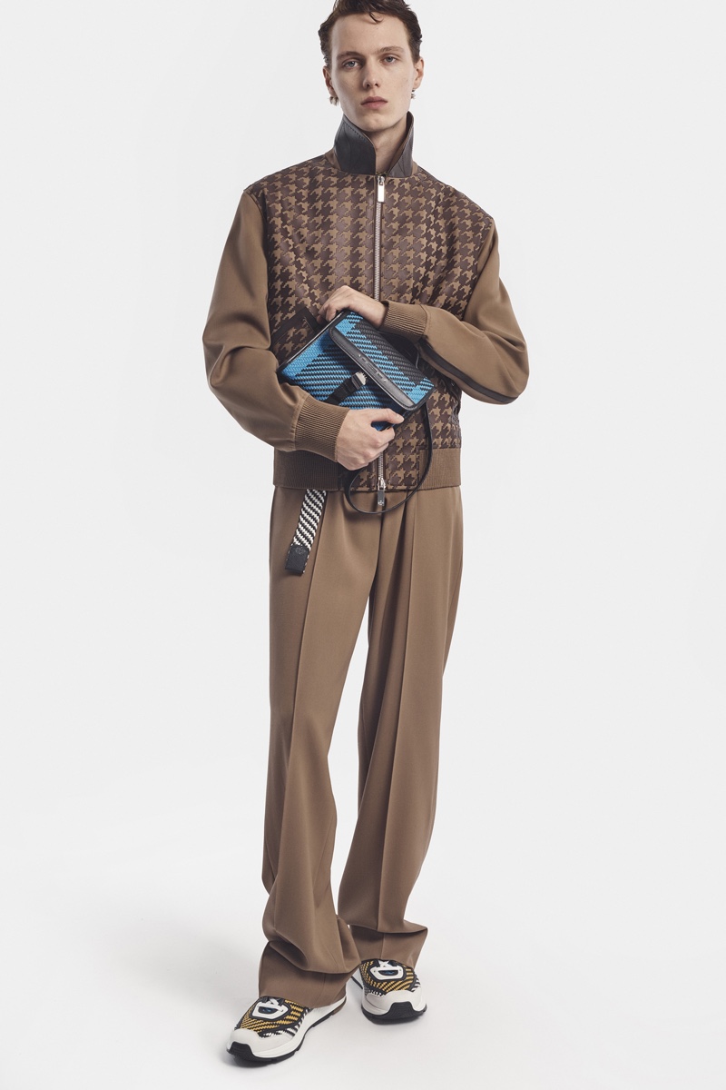 Kris Van Assche embraces the art of collaboration for Berluti’s spring-summer 2021 collection. The Belgian designer reaches out to ceramics sculptor Brian Rochefort to inject the season with a taste of modern art. Van Assche references Rochefort’s signature use of melted glass and multiple glaze layers for vibrant prints. The unique graphics complement Berluti’s relaxed shapes and meshing of traditional tailoring with contemporary sportswear. Meanwhile, photographer Valentin B. Giacobetti captures the collection lookbook, working with stylist Mauricio Nardi. The latter outfits model Daan Duez in standouts, such as billowing trousers, a printed shirt, or an oversized double-breasted coat. As usual, Berluti’s leather accessories are compelling with patterned and graphic accents.