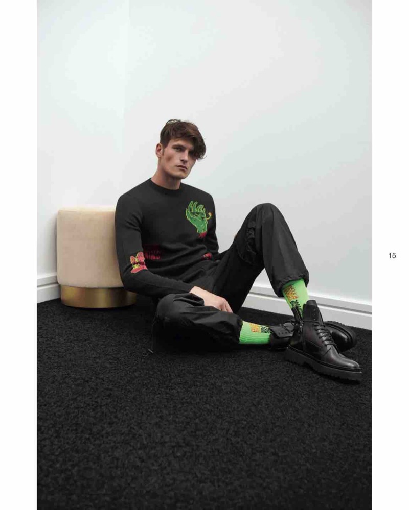 The work of American filmmaker David Lynch inspires Beymen’s fall-winter 2019 Academia collection. The themes of “Day Dream,” “Fire Walk With Me,” “Keep It Cool,” and “Get Lucky” inform the season’s eclectic attitude. Photographed by Arale Reartes, model John Todd is front and center as the face of the collection. Taking to a minimal set, John showcases varied looks that transition from casual and sporty to sophisticated and tailored. Elegant suit pieces are juxtaposed with a gamut of on-trend sportswear. Academia sets the tone for a stylish season with standouts, which include cargo joggers, distressed knitwear, flame print separates, a fleece hooded pullover, and side-striped denim.