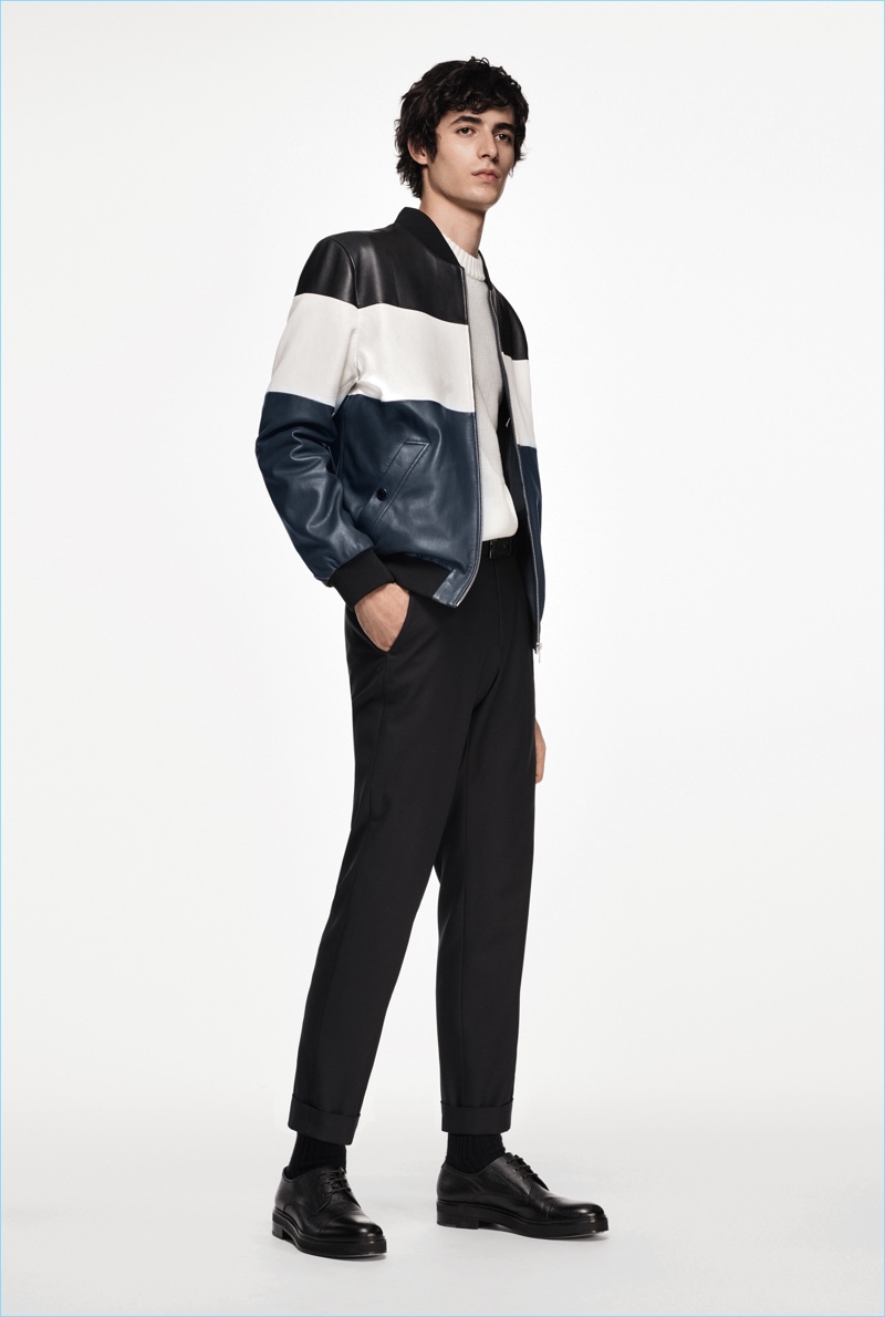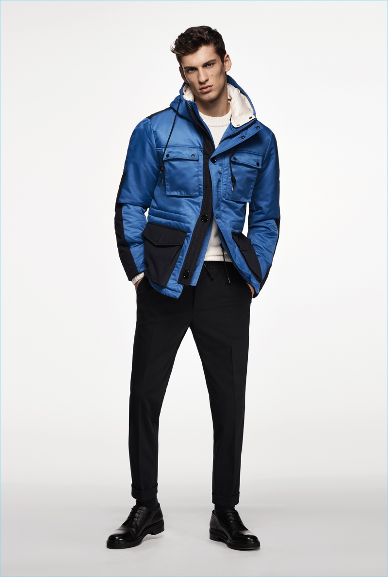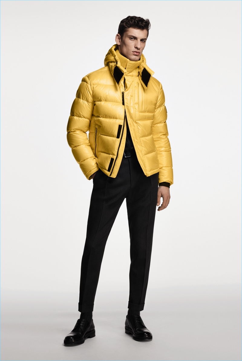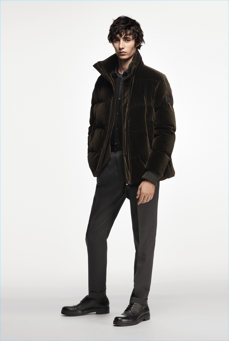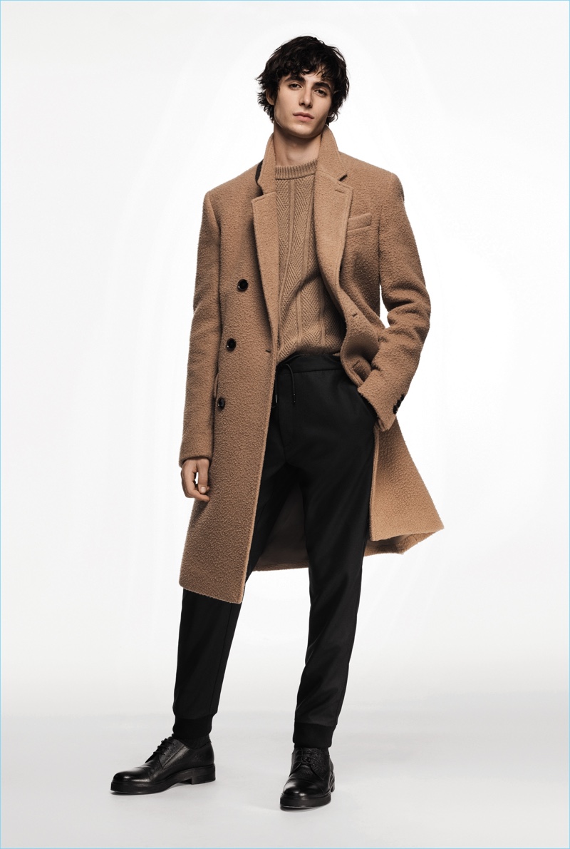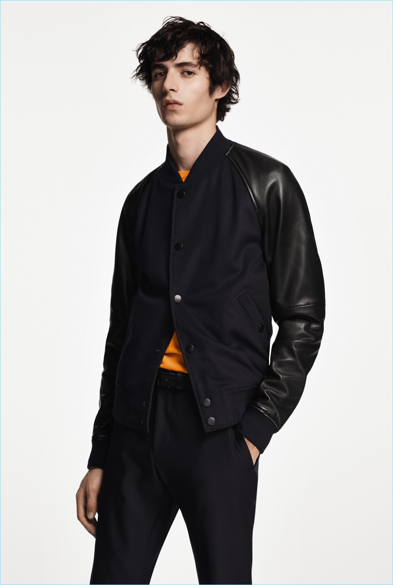 BOSS paints a sleek picture for its fall-winter 2018 commercial collection. The German brand serves up an effortless mix of sharp tailoring and relaxed sportswear. Models Oscar Kindelan and David Trulik offer us a look at the season as they star in the accompanying lookbook. The models embrace BOSS’ dark color palette that features black, brown, burgundy, and teal. Sweaters and jackets with bold color-blocking offset classic men’s suits. Meanwhile, BOSS’ man is ready for the cold with plenty of puffer jackets. Continuing down the outerwear front, the label also delivers striking coats in camel and cream. BOSS took to the catwalk as well with baseball-inspired fashions.