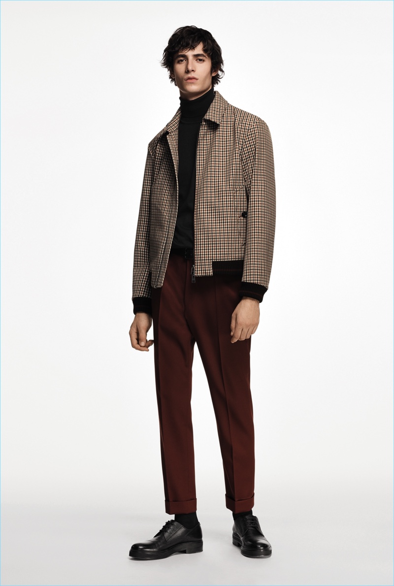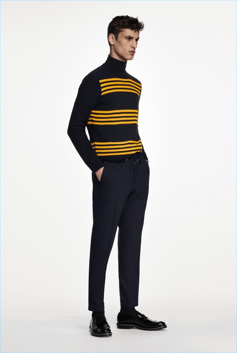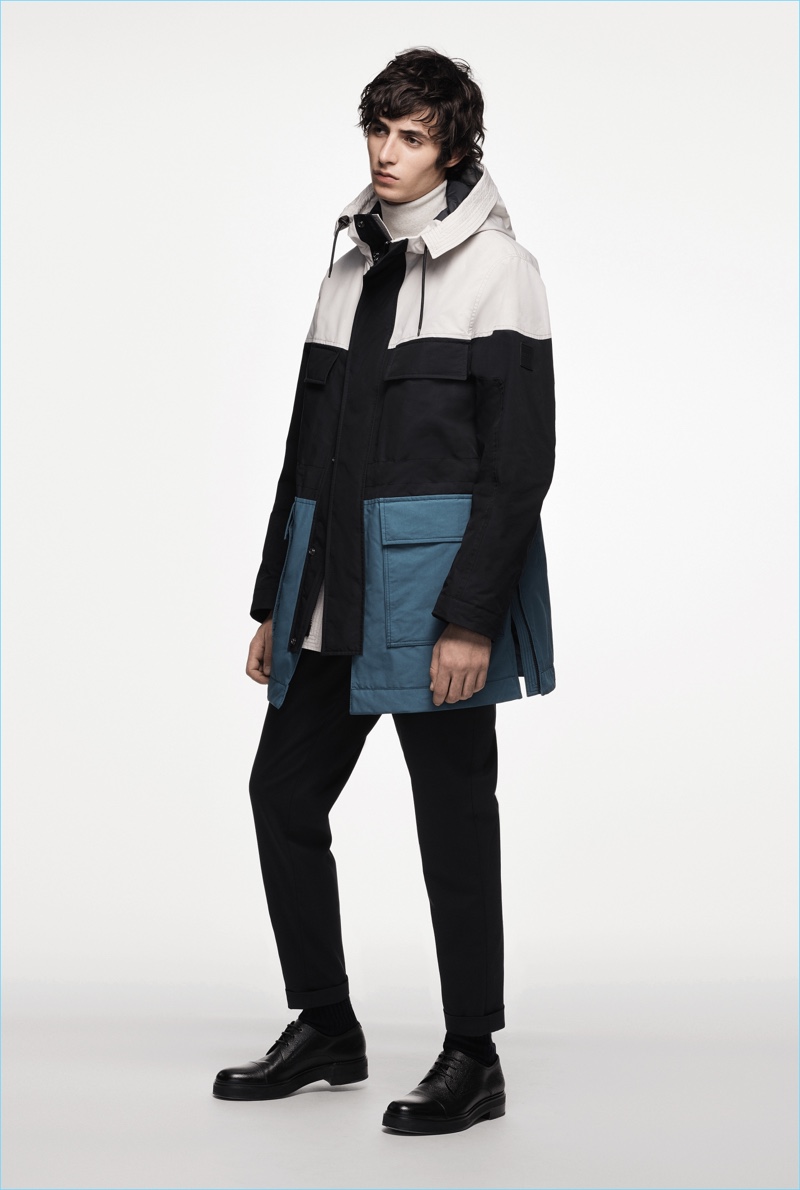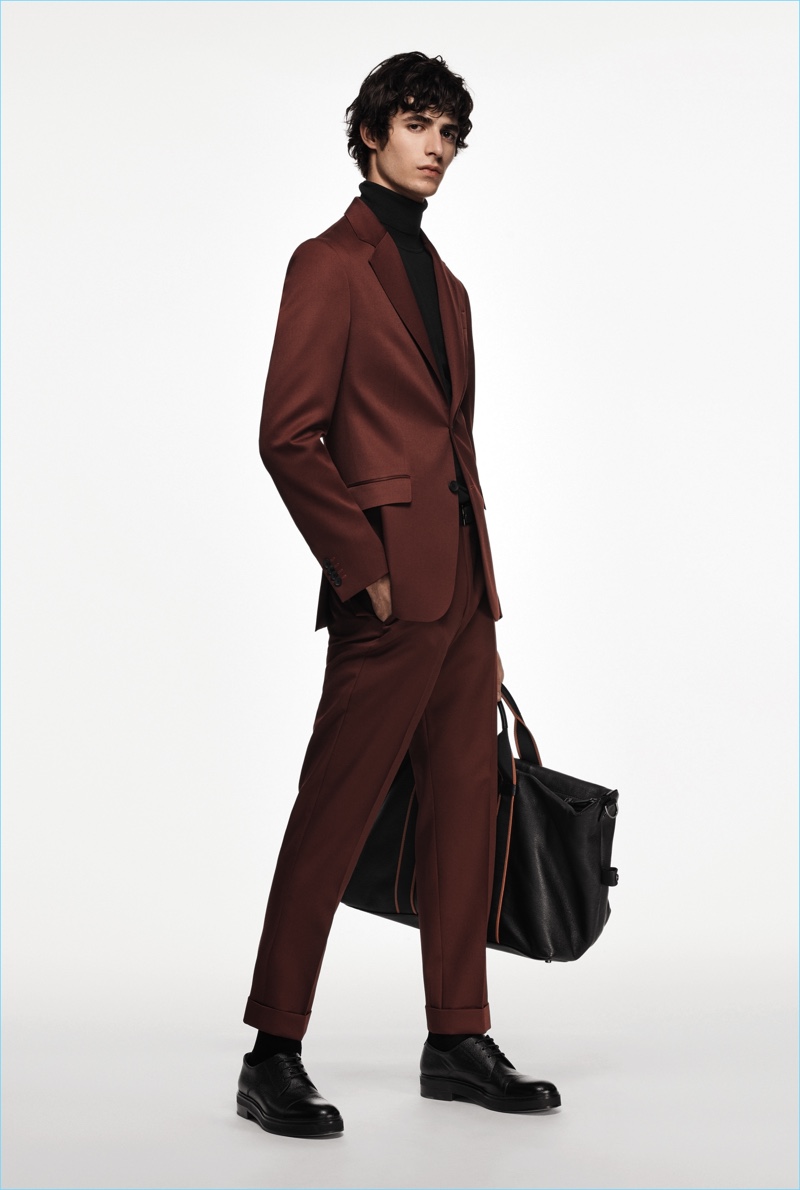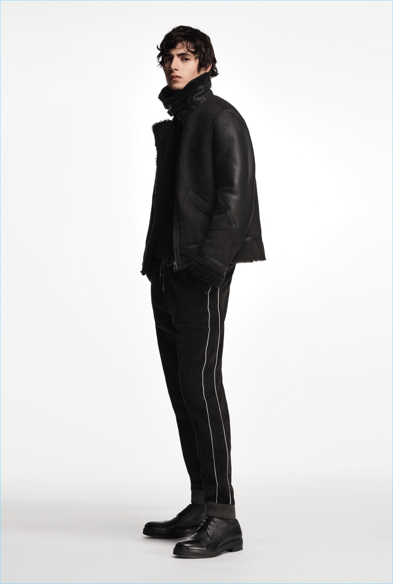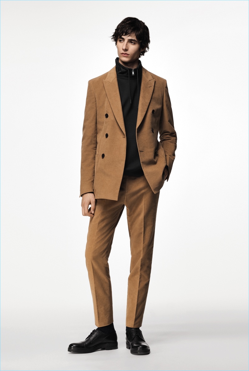 BOSS paints a sleek picture for its fall-winter 2018 commercial collection. The German brand serves up an effortless mix of sharp tailoring and relaxed sportswear. Models Oscar Kindelan and David Trulik offer us a look at the season as they star in the accompanying lookbook. The models embrace BOSS’ dark color palette that features black, brown, burgundy, and teal. Sweaters and jackets with bold color-blocking offset classic men’s suits. Meanwhile, BOSS’ man is ready for the cold with plenty of puffer jackets. Continuing down the outerwear front, the label also delivers striking coats in camel and cream. BOSS took to the catwalk as well with baseball-inspired fashions.