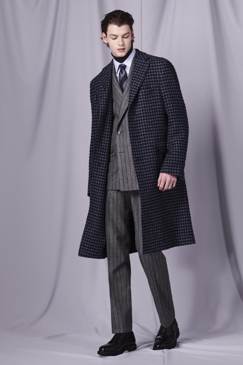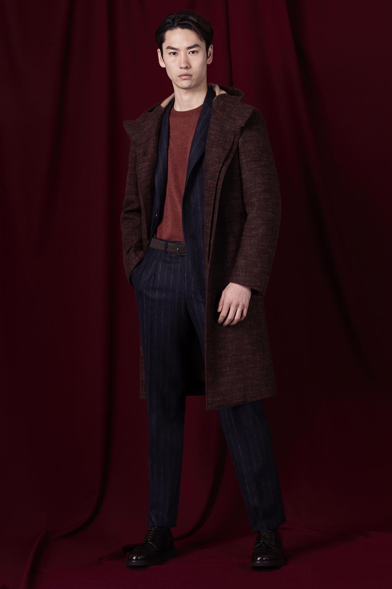 Henry Rausch, David Trulik, and Hyo Jin Cho don fall-winter 2019 looks by Canali.