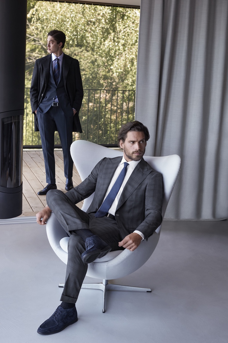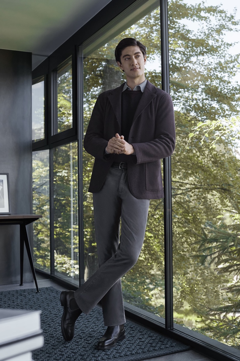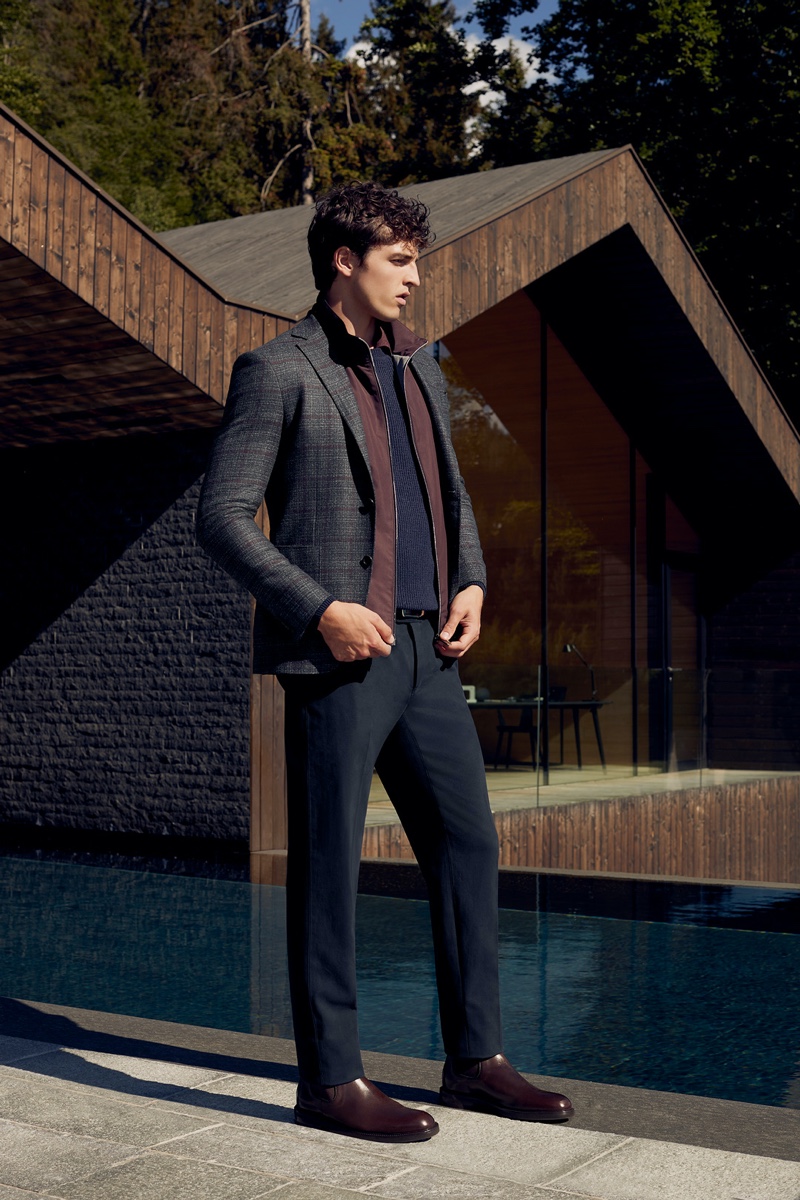 Canali is “Chasing Beauty” with its fall-winter 2020 collection. The concept unfolds in three parts: Black Edition, Canali 1934, and Exclusive, while exploring different colors, shapes, and cuts. From sporty to elegant and refined, the Canali man is multifaceted. The Italian brand showcases these views with an outing lensed by photographer Alessandro Burzigotti. The latter collaborates with art director Simone Lorusso for the occasion. Front and center, models Simone Bredariol, Alberto Perazzolo, and Andrea Tonduti inspire in sleek numbers styled by Francesco Casarotto. For the casual man on the go, Canali Black Edition delivers high-performance clothing in dark hues with colorful accents. Ready to layer, a varied selection offers half-zip pullovers, vests, jackets, and more. Meanwhile, an everyday elegance is at the forefront for Canali 1934 with its tailored essentials, such as the trench coat or suit jacket. However, the defining moment of the season perhaps belongs to Canali Exclusive. A timelessness takes centerstage with sharply tailored suits and chic menswear like a cape.