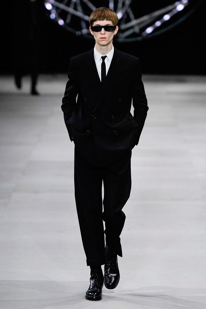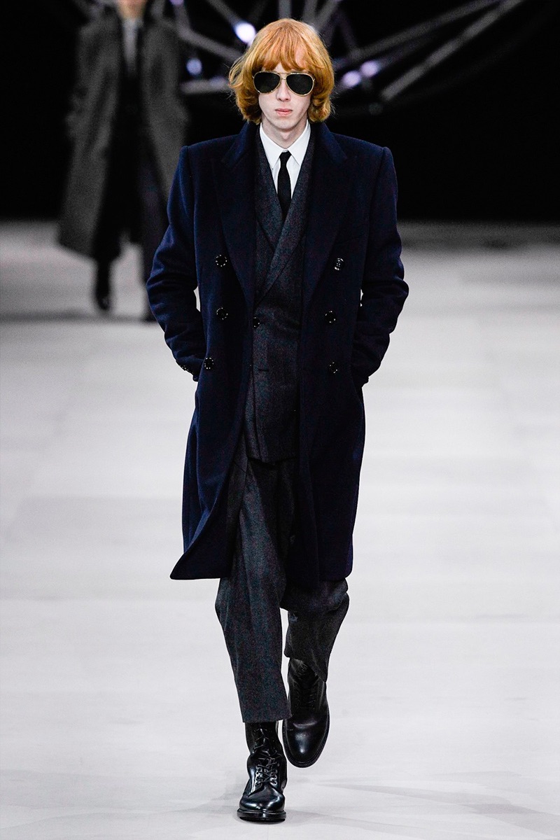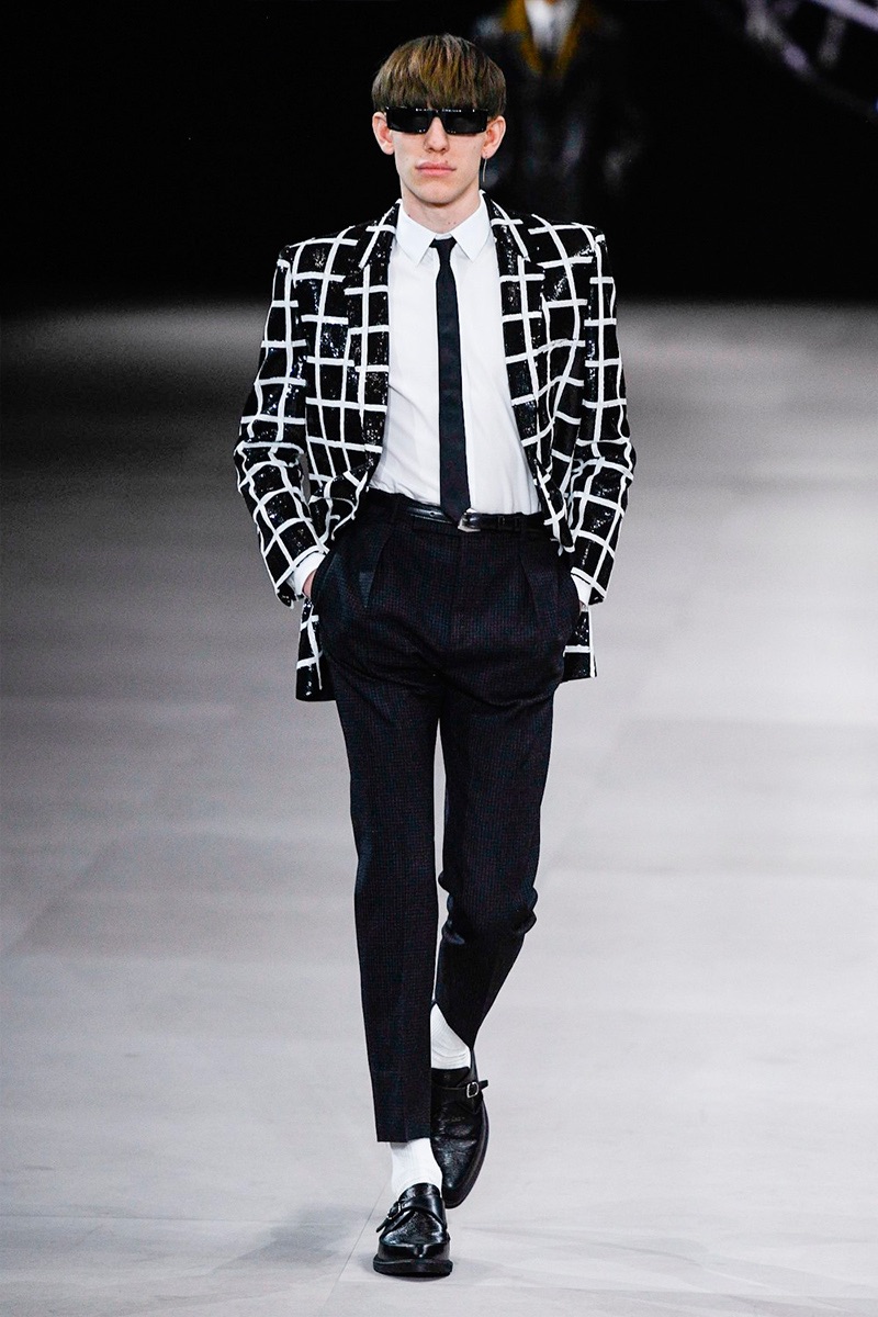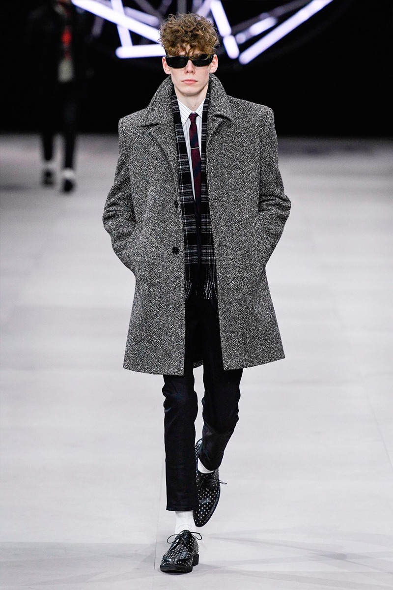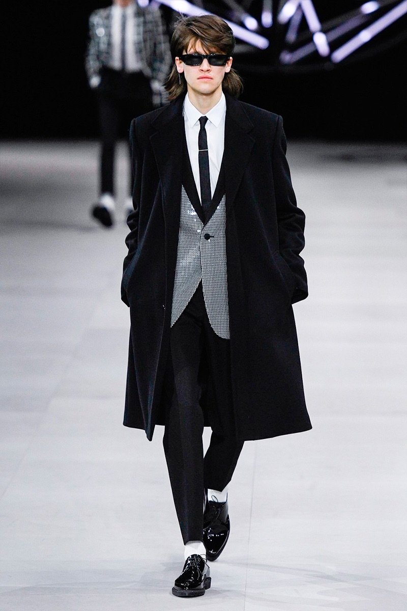 While a rock ‘n’ roll spirit is close to heart for Hedi Slimane, the designer takes a more conservative approach to menswear this season. Paying a nod to the 1960s, tailoring is front and center for Celine’s fall-winter 2019 collection. Refined suiting, skinny ties, trim dress shirts, and elegant coats define the season.
