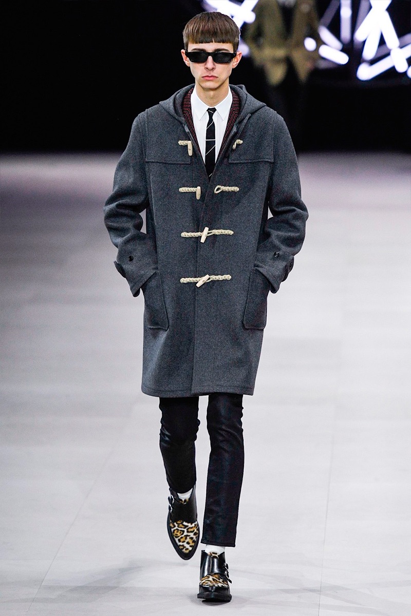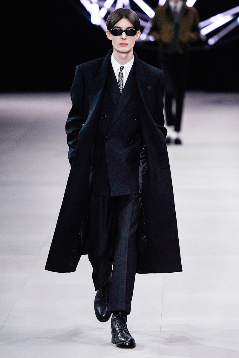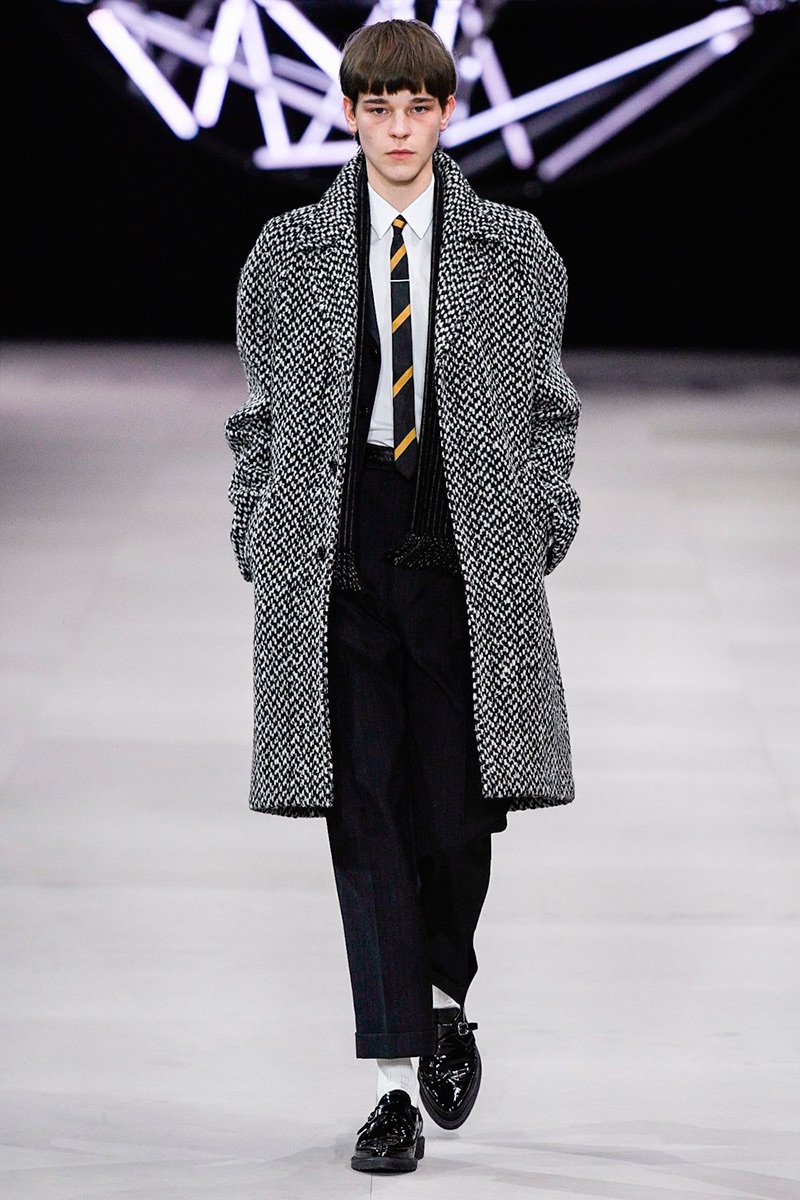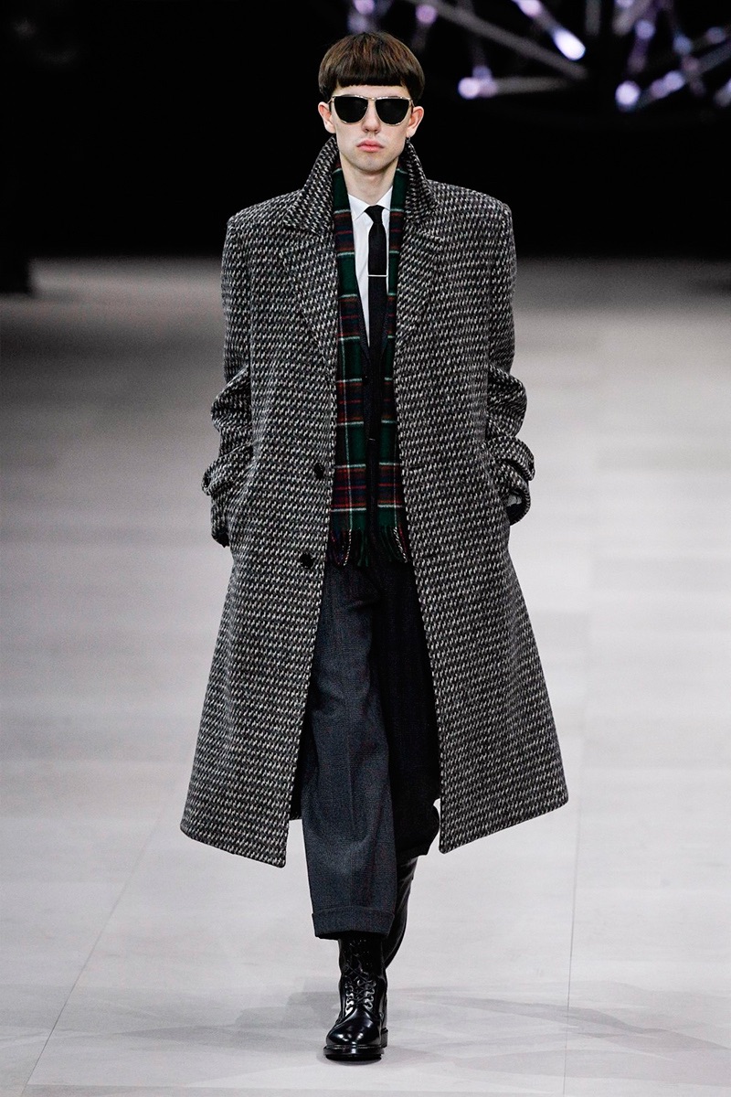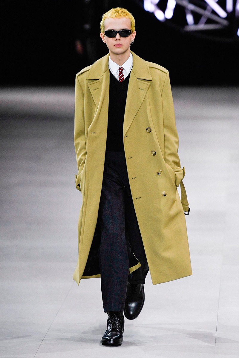 While a rock ‘n’ roll spirit is close to heart for Hedi Slimane, the designer takes a more conservative approach to menswear this season. Paying a nod to the 1960s, tailoring is front and center for Celine’s fall-winter 2019 collection. Refined suiting, skinny ties, trim dress shirts, and elegant coats define the season.