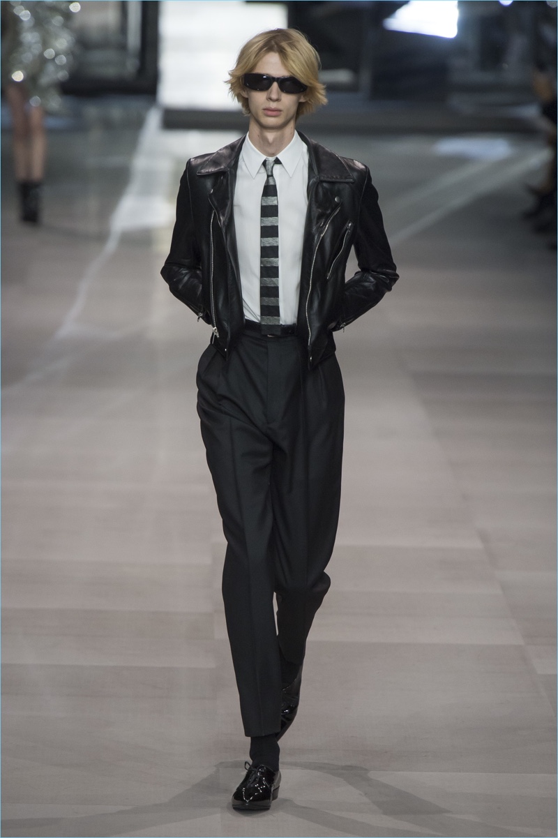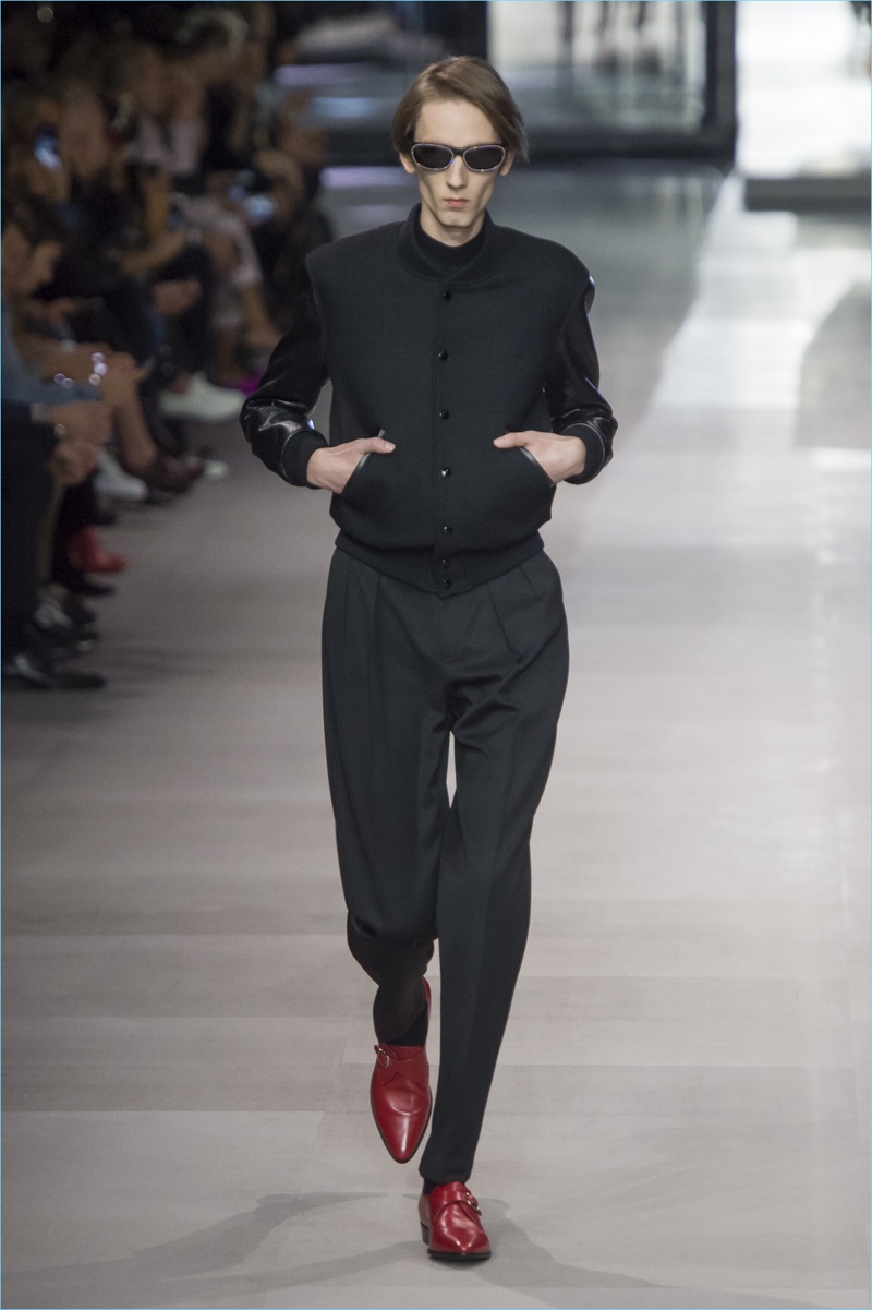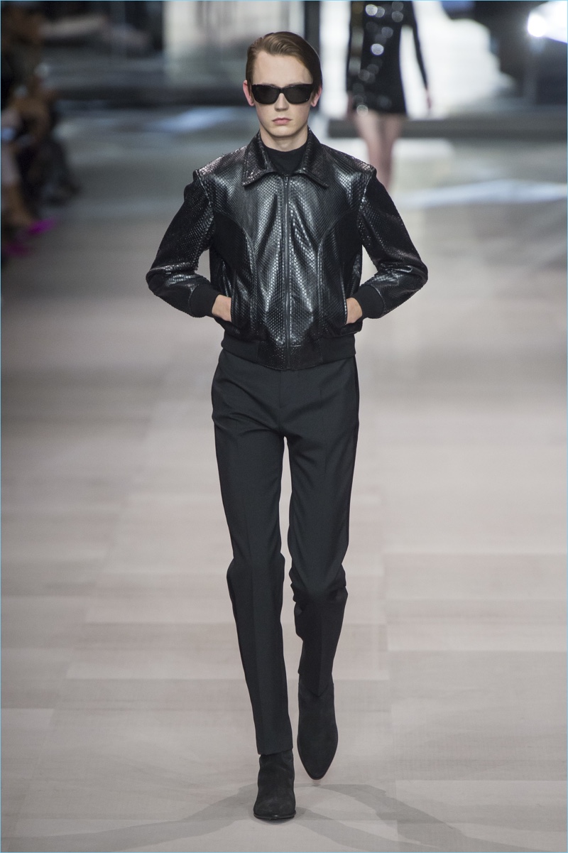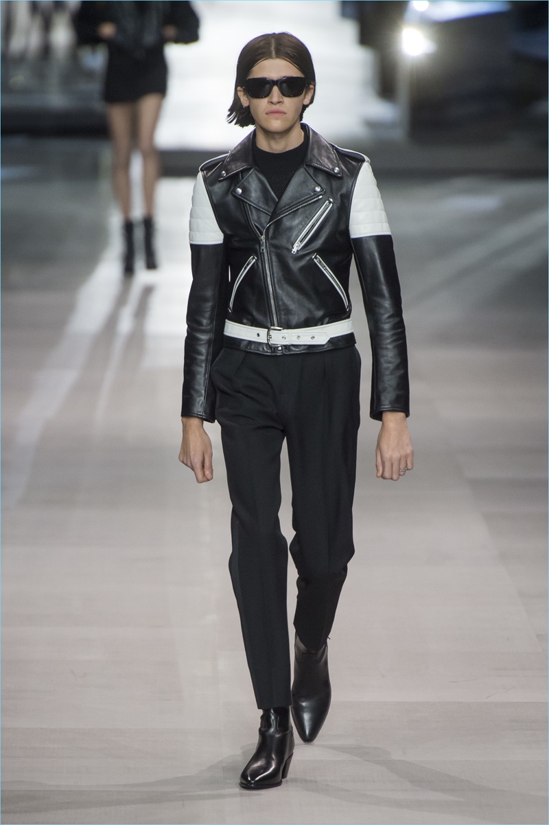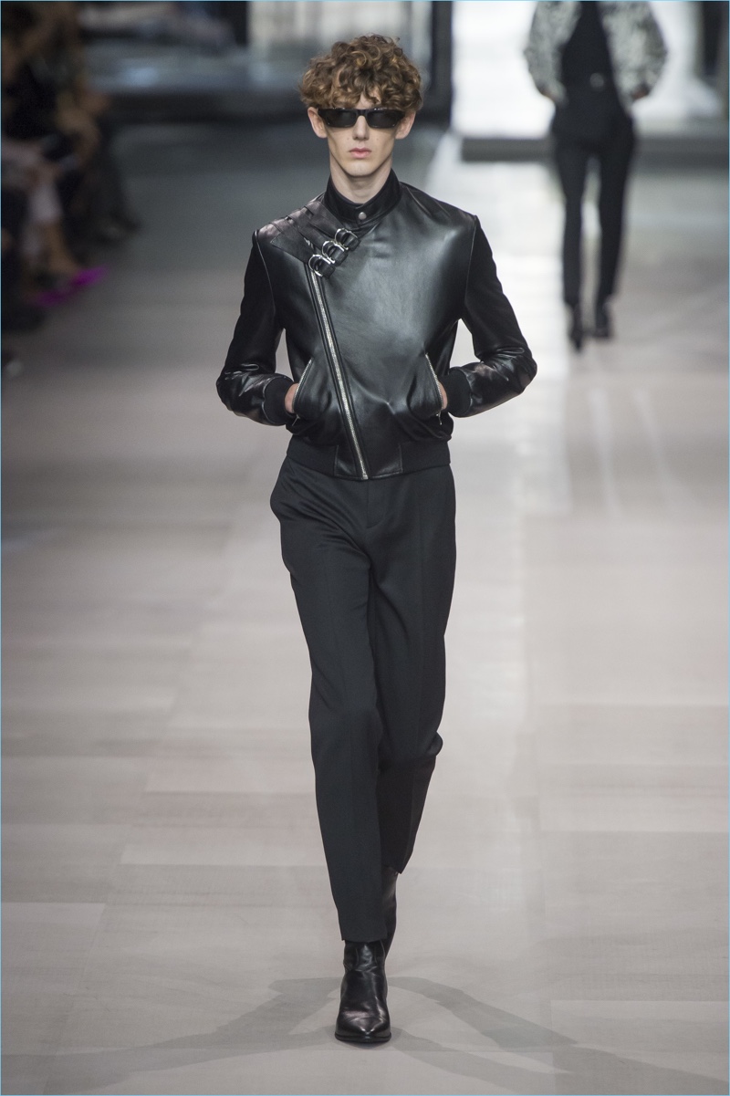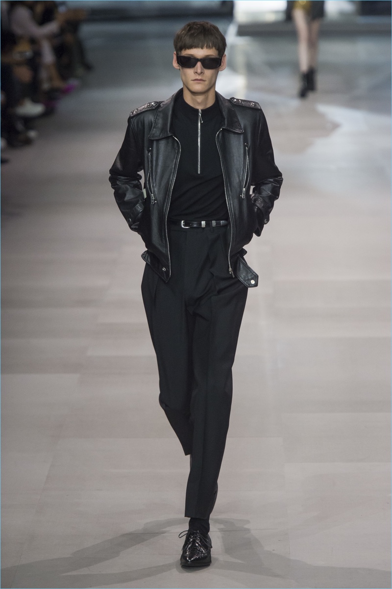 After months of anticipation, designer Hedi Slimane made his debut at Celine. Unveiling his spring-summer 2019 collection for the fashion house, Slimane officially launched Celine menswear. While many critics drew instant comparisons to Slimane’s work at Saint Laurent, the Celine man is more in line with the designer’s legacy at Dior Homme. Entitled “Paris La Nuit,” the menswear collection celebrates youth, but with a sharp tailored focus. Not limited in age, you can easily imagine the predominantly black collection worn by a variety of men, ranging from Lenny Kravitz and Jeff Goldblum to Alex Turner. Likely to be a commercial success, the lineup easily delivers with key items such as the trench coat, leather biker jacket, and fitted bomber.