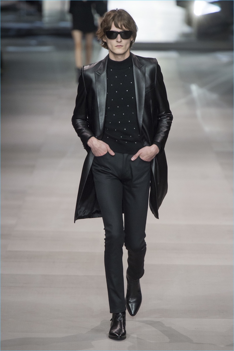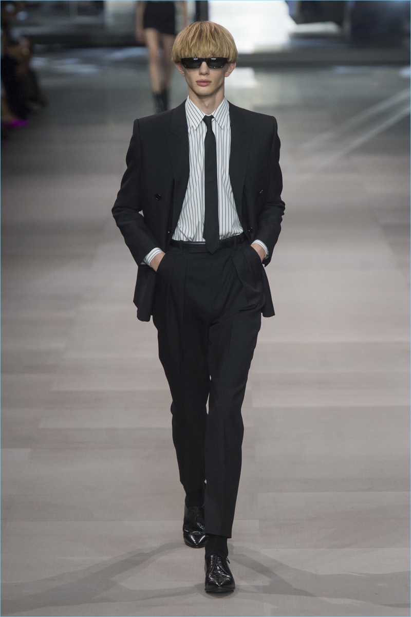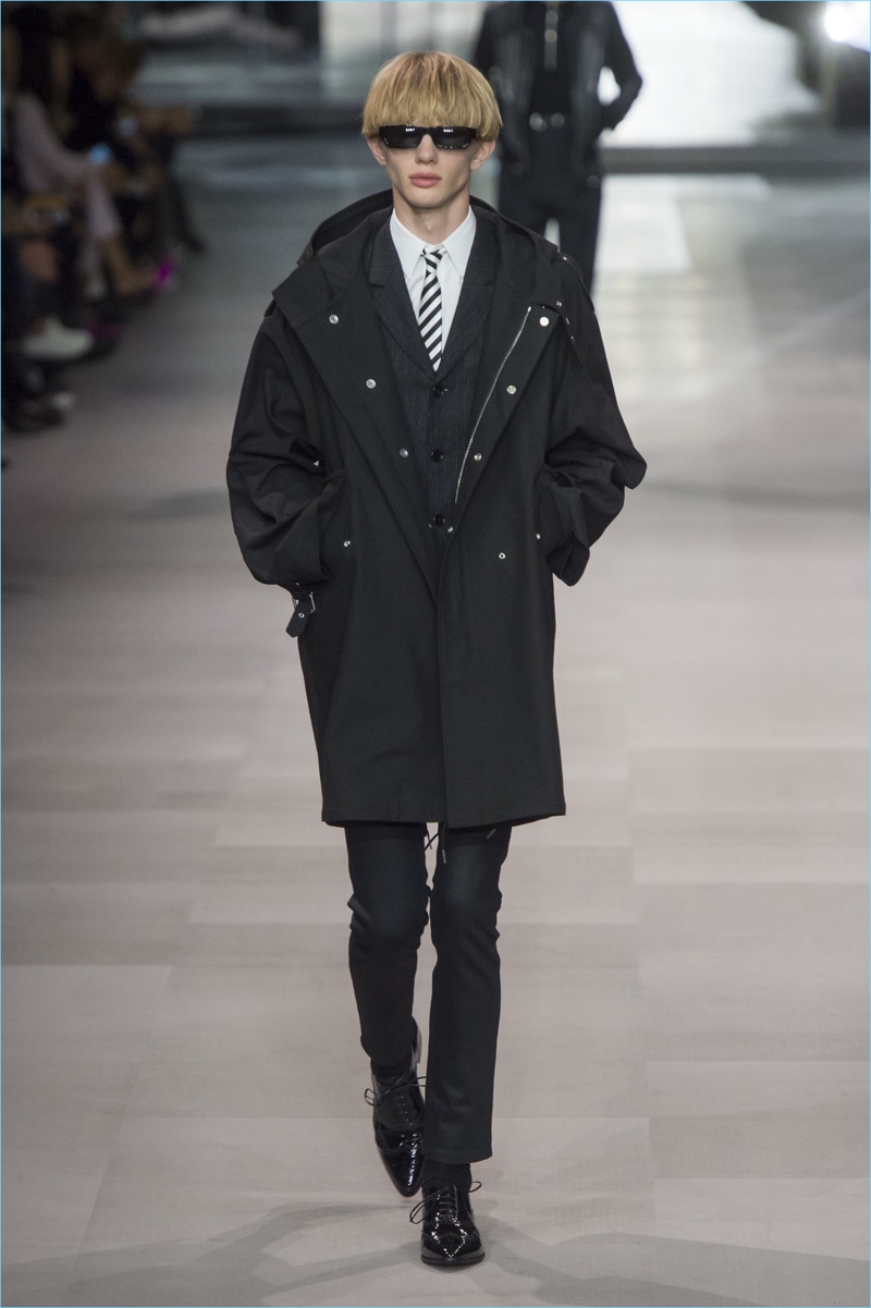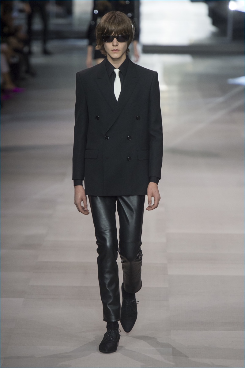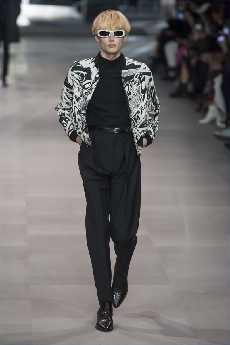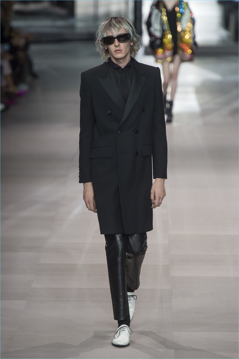 After months of anticipation, designer Hedi Slimane made his debut at Celine. Unveiling his spring-summer 2019 collection for the fashion house, Slimane officially launched Celine menswear. While many critics drew instant comparisons to Slimane’s work at Saint Laurent, the Celine man is more in line with the designer’s legacy at Dior Homme. Entitled “Paris La Nuit,” the menswear collection celebrates youth, but with a sharp tailored focus. Not limited in age, you can easily imagine the predominantly black collection worn by a variety of men, ranging from Lenny Kravitz and Jeff Goldblum to Alex Turner. Likely to be a commercial success, the lineup easily delivers with key items such as the trench coat, leather biker jacket, and fitted bomber.