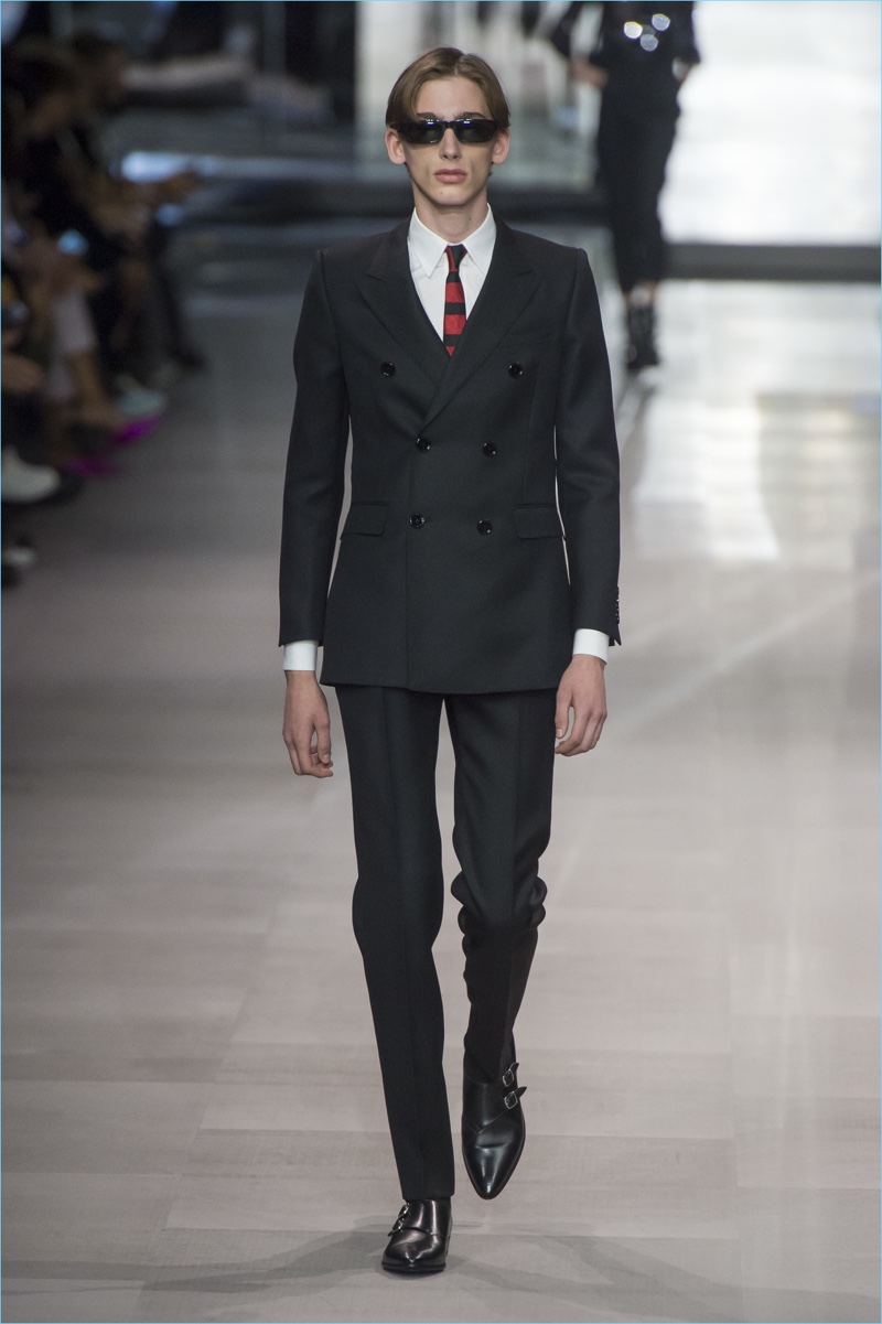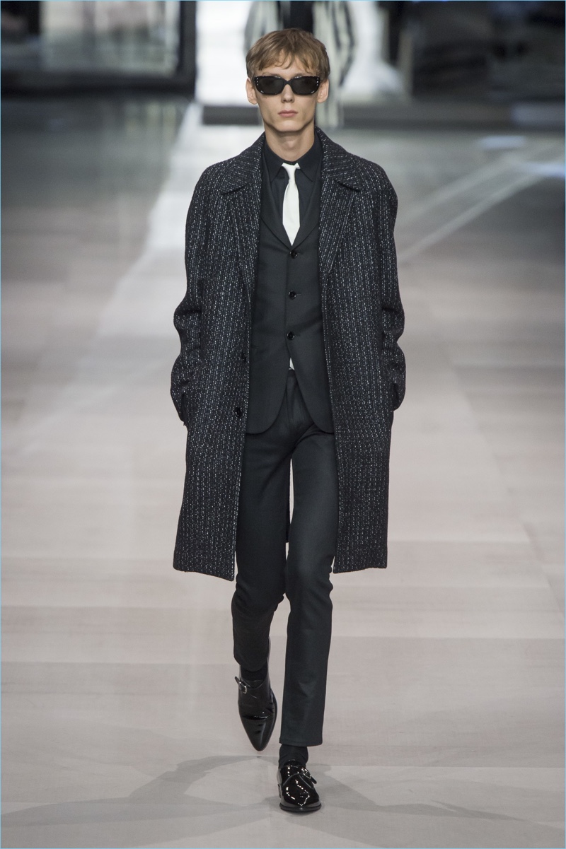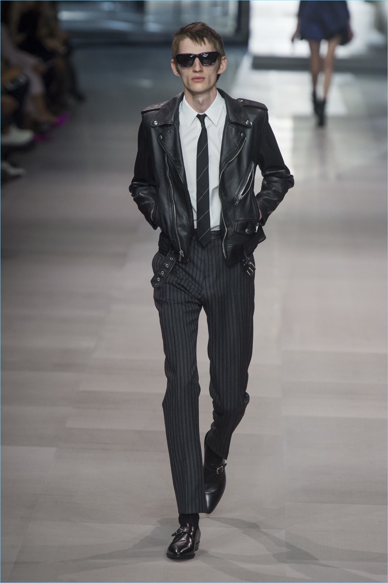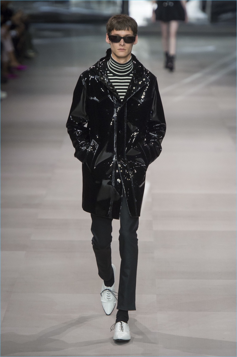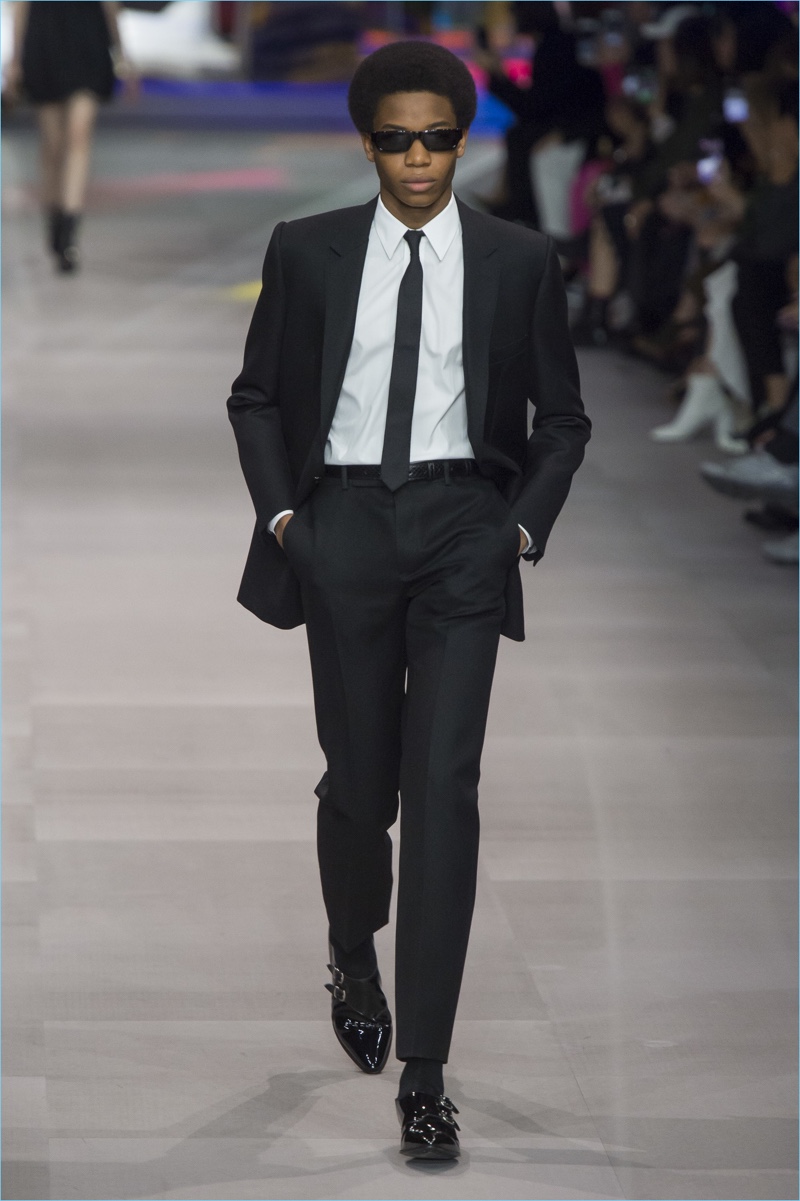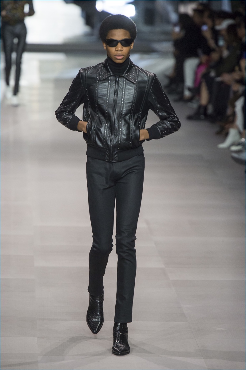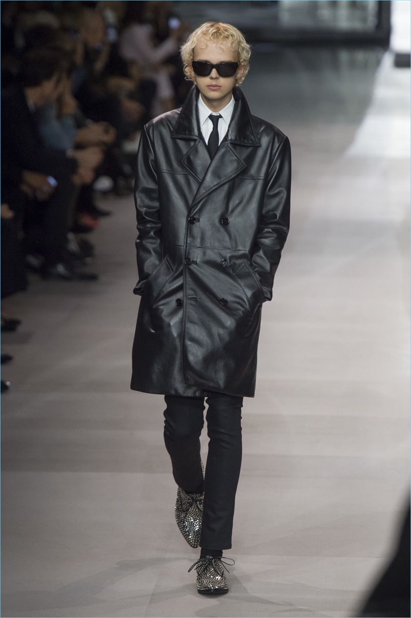 After months of anticipation, designer Hedi Slimane made his debut at Celine. Unveiling his spring-summer 2019 collection for the fashion house, Slimane officially launched Celine menswear. While many critics drew instant comparisons to Slimane’s work at Saint Laurent, the Celine man is more in line with the designer’s legacy at Dior Homme. Entitled “Paris La Nuit,” the menswear collection celebrates youth, but with a sharp tailored focus. Not limited in age, you can easily imagine the predominantly black collection worn by a variety of men, ranging from Lenny Kravitz and Jeff Goldblum to Alex Turner. Likely to be a commercial success, the lineup easily delivers with key items such as the trench coat, leather biker jacket, and fitted bomber.