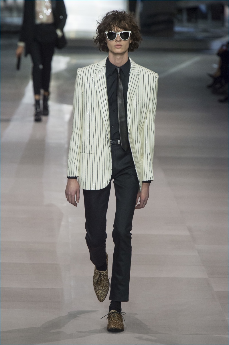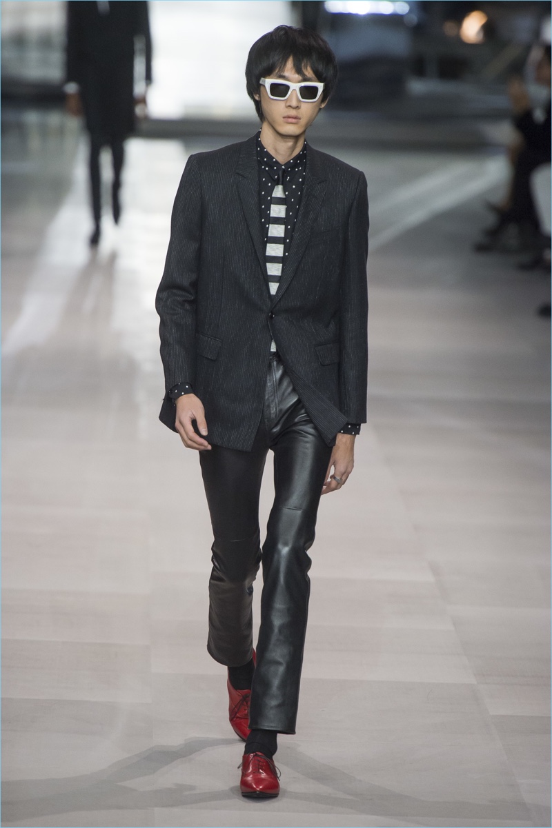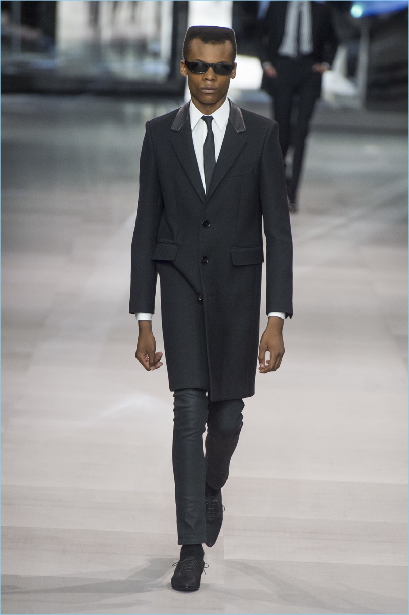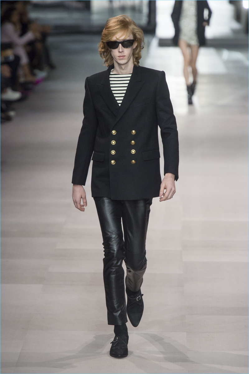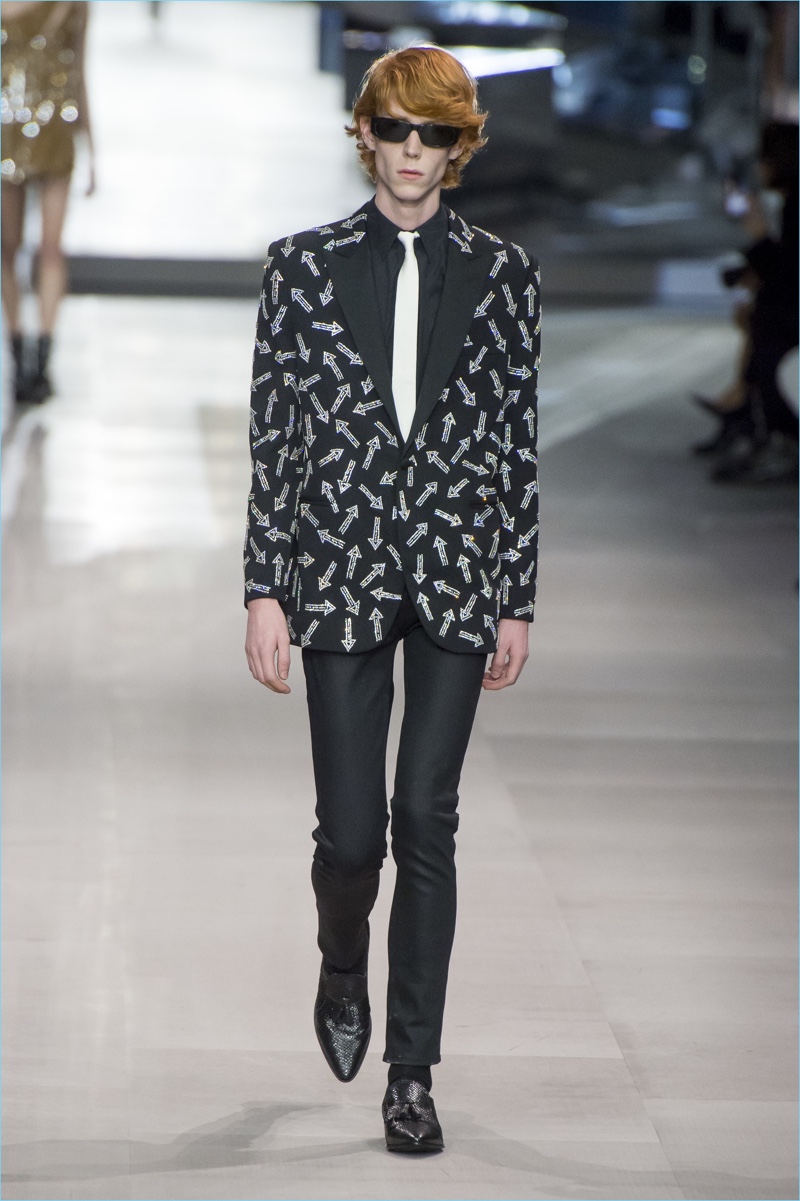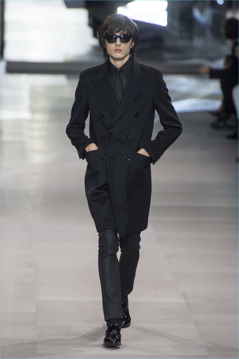 After months of anticipation, designer Hedi Slimane made his debut at Celine. Unveiling his spring-summer 2019 collection for the fashion house, Slimane officially launched Celine menswear. While many critics drew instant comparisons to Slimane’s work at Saint Laurent, the Celine man is more in line with the designer’s legacy at Dior Homme. Entitled “Paris La Nuit,” the menswear collection celebrates youth, but with a sharp tailored focus. Not limited in age, you can easily imagine the predominantly black collection worn by a variety of men, ranging from Lenny Kravitz and Jeff Goldblum to Alex Turner. Likely to be a commercial success, the lineup easily delivers with key items such as the trench coat, leather biker jacket, and fitted bomber.