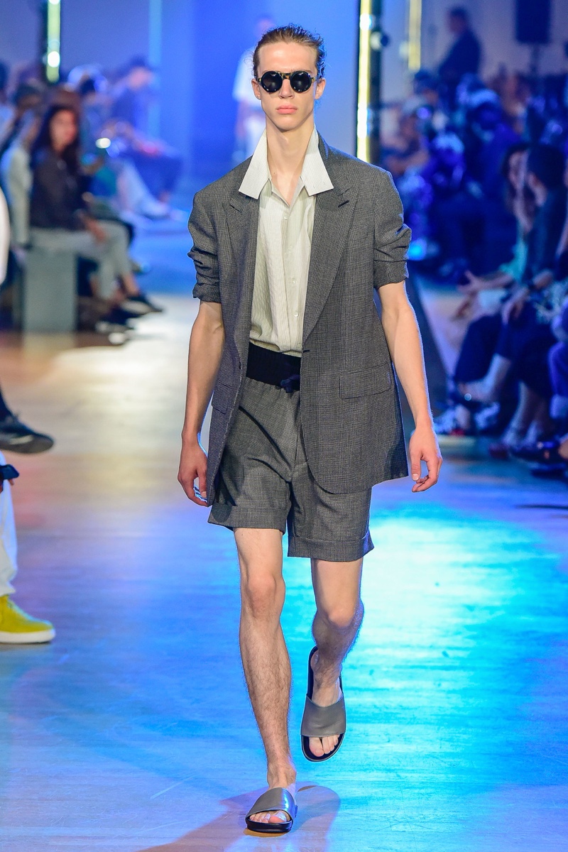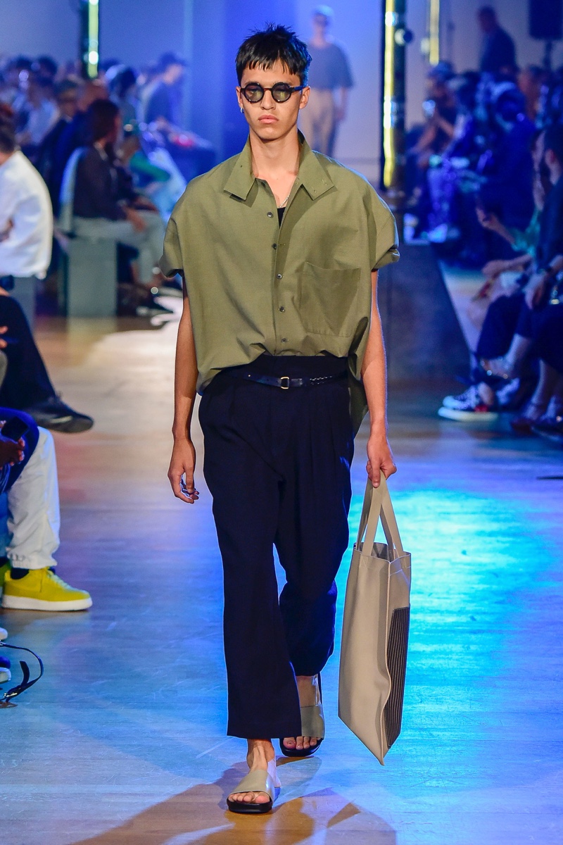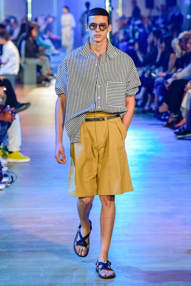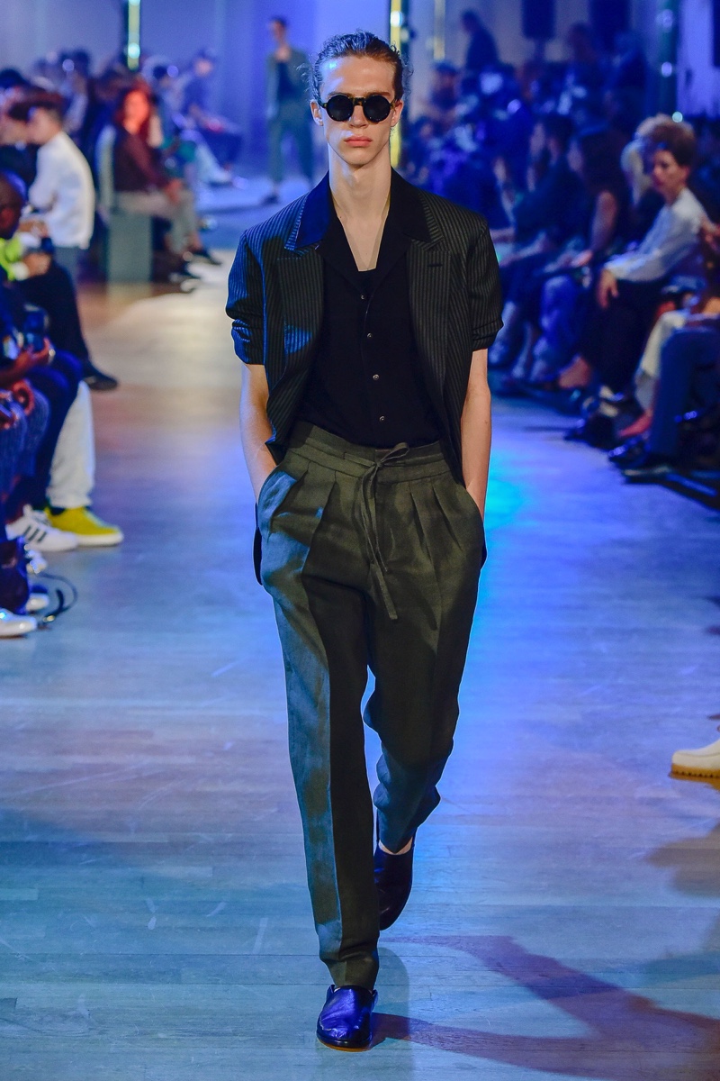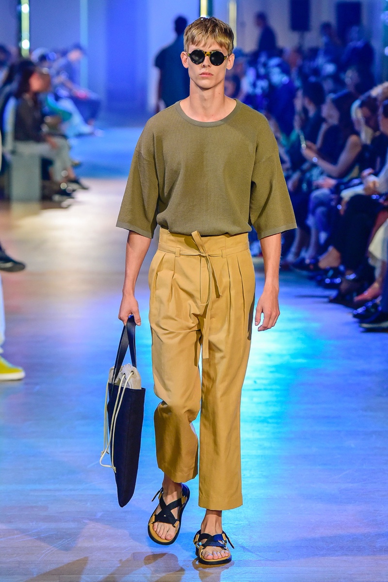 Cerruti 1881 sets the stage for spring-summer 2019 in Tokyo. Eastern designs influence the work of chief creative officer Jason Basmajian. Bringing a chic element to summer dressing, the man of Cerruti 1881 is treated to lightweight layers and relaxed tailoring. Proportion-wise, shorts and pants make an impact with high waists. Pleated details elongate clean lines. Meanwhile, half unbuttoned shirts embrace a boxy shape and fall in line with the collection’s kimono-inspired pieces. Delivering a wardrobe of short-sleeve coats, sporty parkas, and graphic tees, Cerruti 1881 maintains a simple color palette. Dusty neutrals join the accessible nature of black, navy, and grey. Finally, strap sandals, leather loafers, and sleek totes complete the season’s look.
