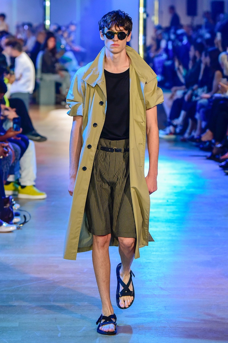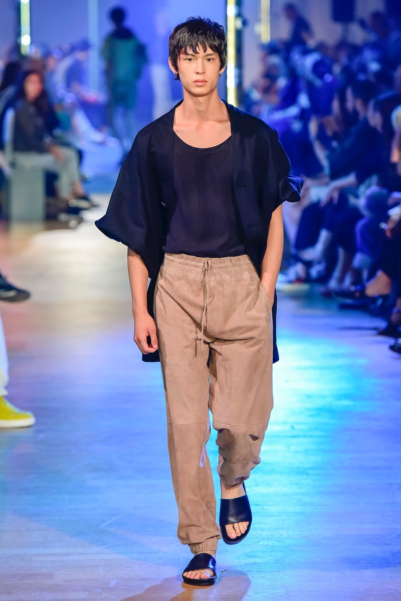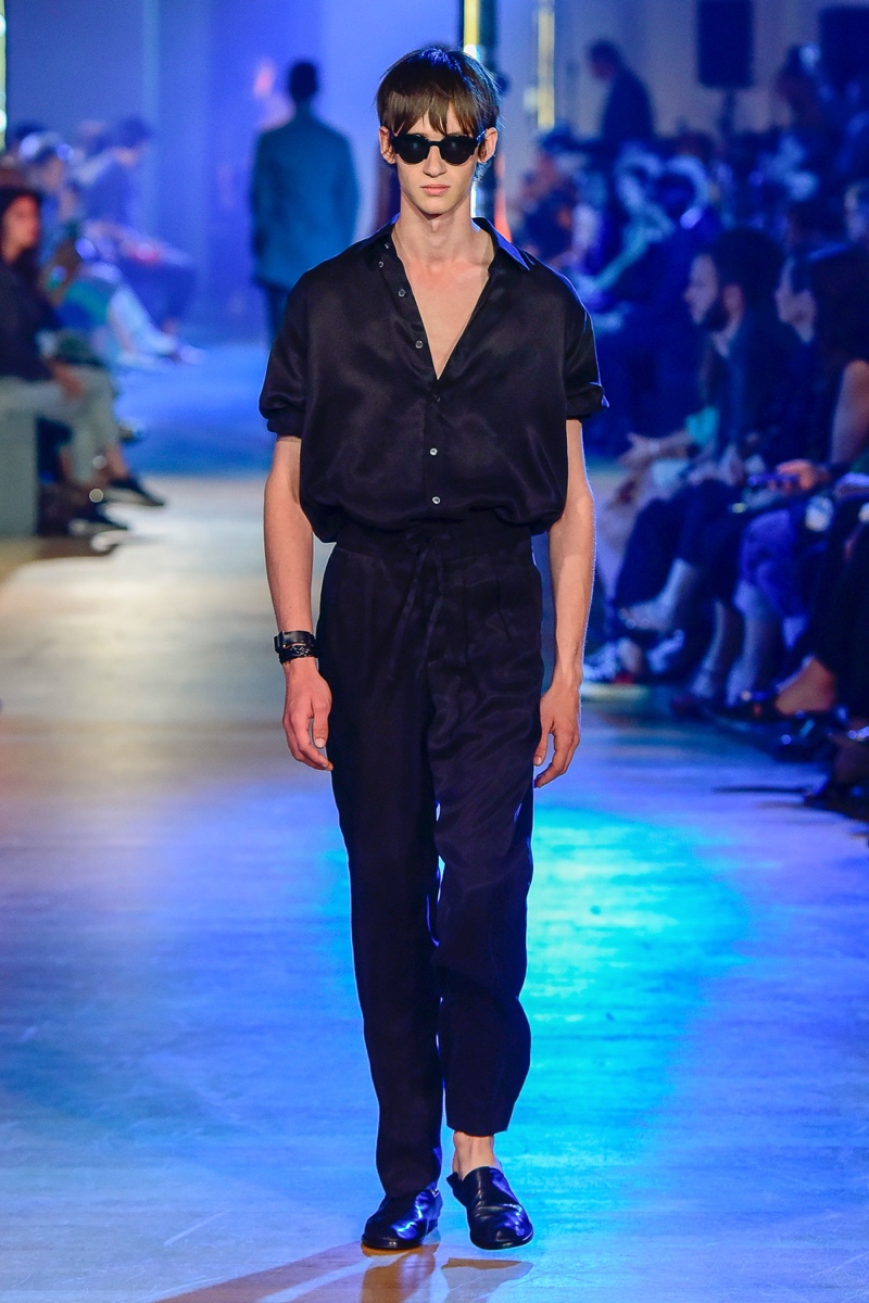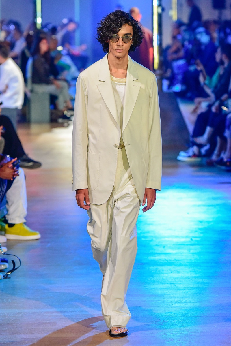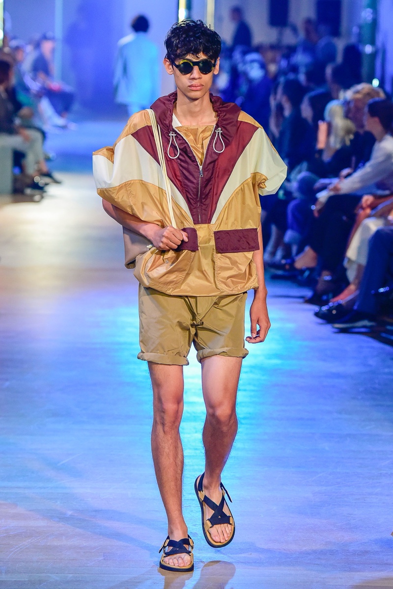 Cerruti 1881 sets the stage for spring-summer 2019 in Tokyo. Eastern designs influence the work of chief creative officer Jason Basmajian. Bringing a chic element to summer dressing, the man of Cerruti 1881 is treated to lightweight layers and relaxed tailoring. Proportion-wise, shorts and pants make an impact with high waists. Pleated details elongate clean lines. Meanwhile, half unbuttoned shirts embrace a boxy shape and fall in line with the collection’s kimono-inspired pieces. Delivering a wardrobe of short-sleeve coats, sporty parkas, and graphic tees, Cerruti 1881 maintains a simple color palette. Dusty neutrals join the accessible nature of black, navy, and grey. Finally, strap sandals, leather loafers, and sleek totes complete the season’s look.
