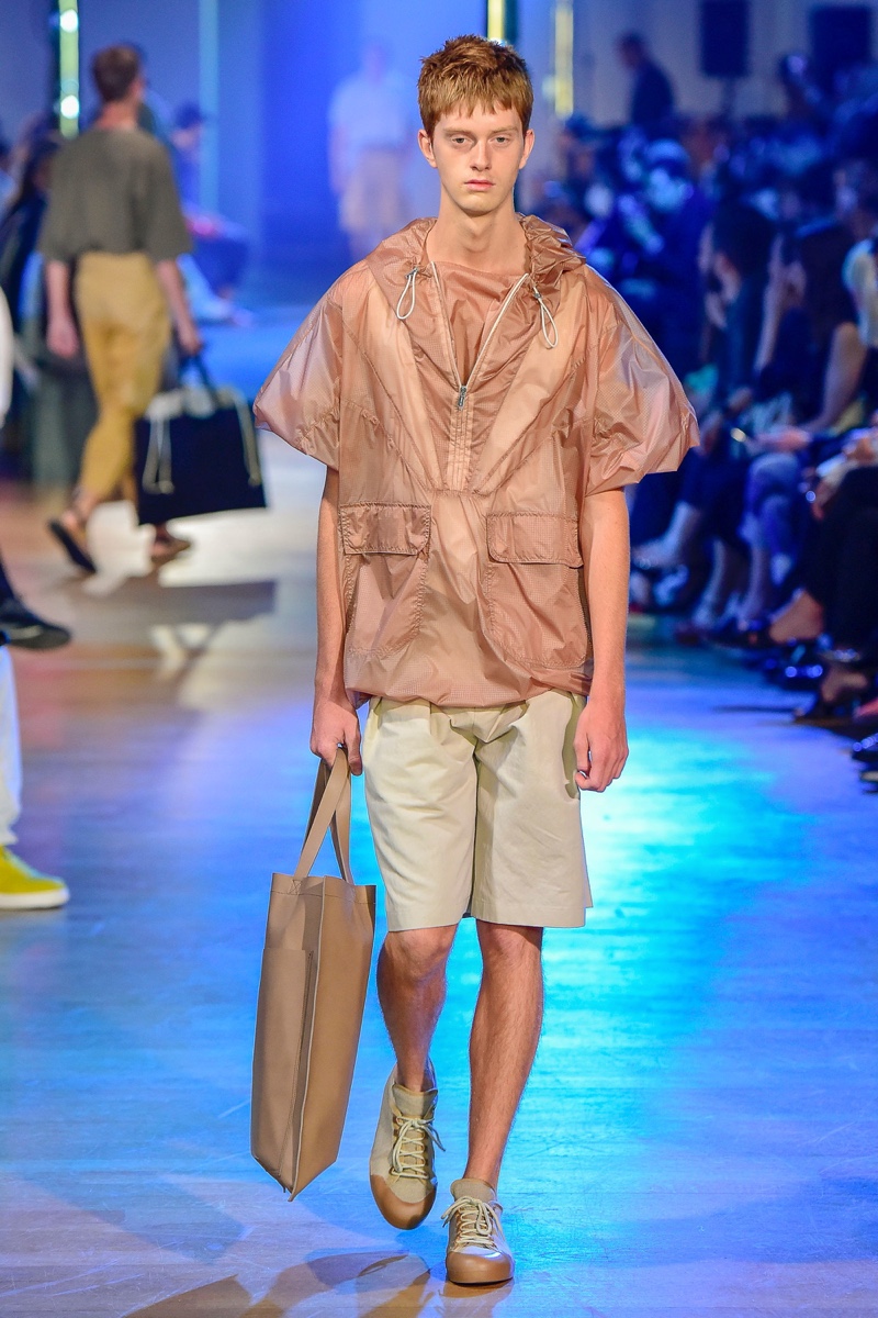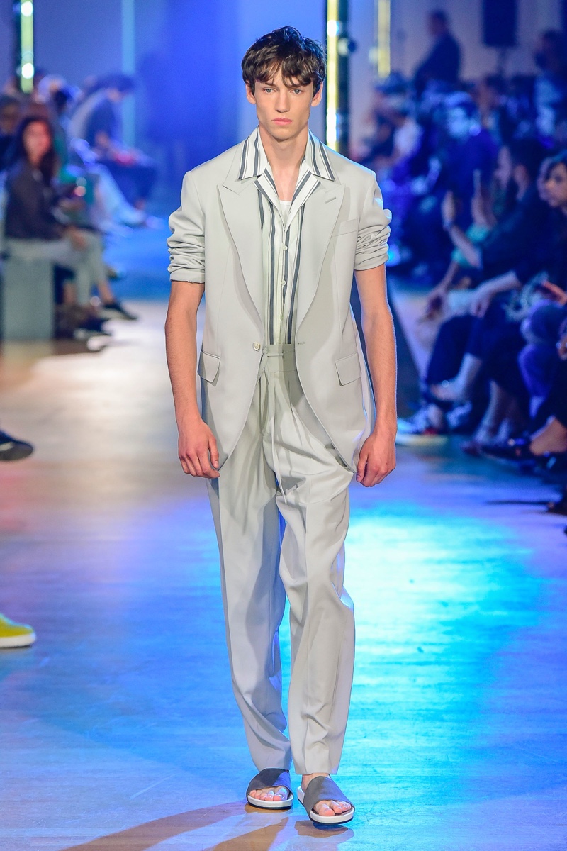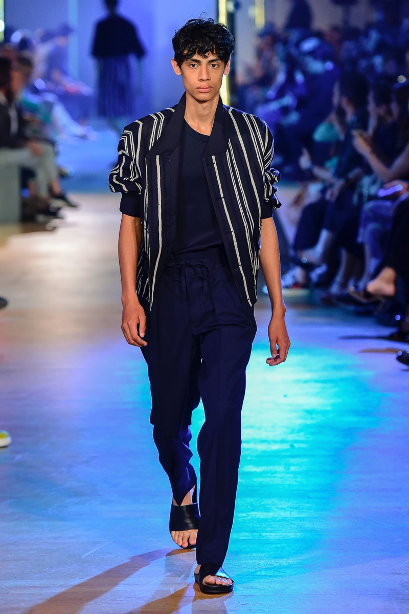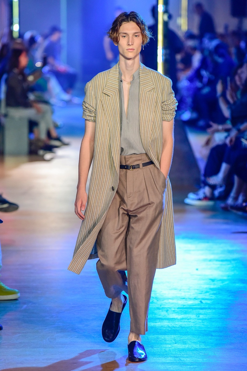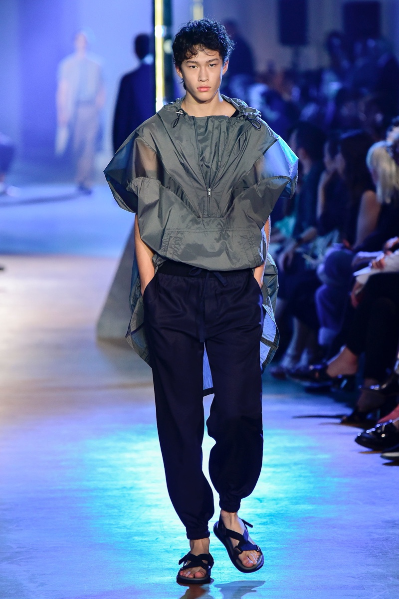 Cerruti 1881 sets the stage for spring-summer 2019 in Tokyo. Eastern designs influence the work of chief creative officer Jason Basmajian. Bringing a chic element to summer dressing, the man of Cerruti 1881 is treated to lightweight layers and relaxed tailoring. Proportion-wise, shorts and pants make an impact with high waists. Pleated details elongate clean lines. Meanwhile, half unbuttoned shirts embrace a boxy shape and fall in line with the collection’s kimono-inspired pieces. Delivering a wardrobe of short-sleeve coats, sporty parkas, and graphic tees, Cerruti 1881 maintains a simple color palette. Dusty neutrals join the accessible nature of black, navy, and grey. Finally, strap sandals, leather loafers, and sleek totes complete the season’s look.
