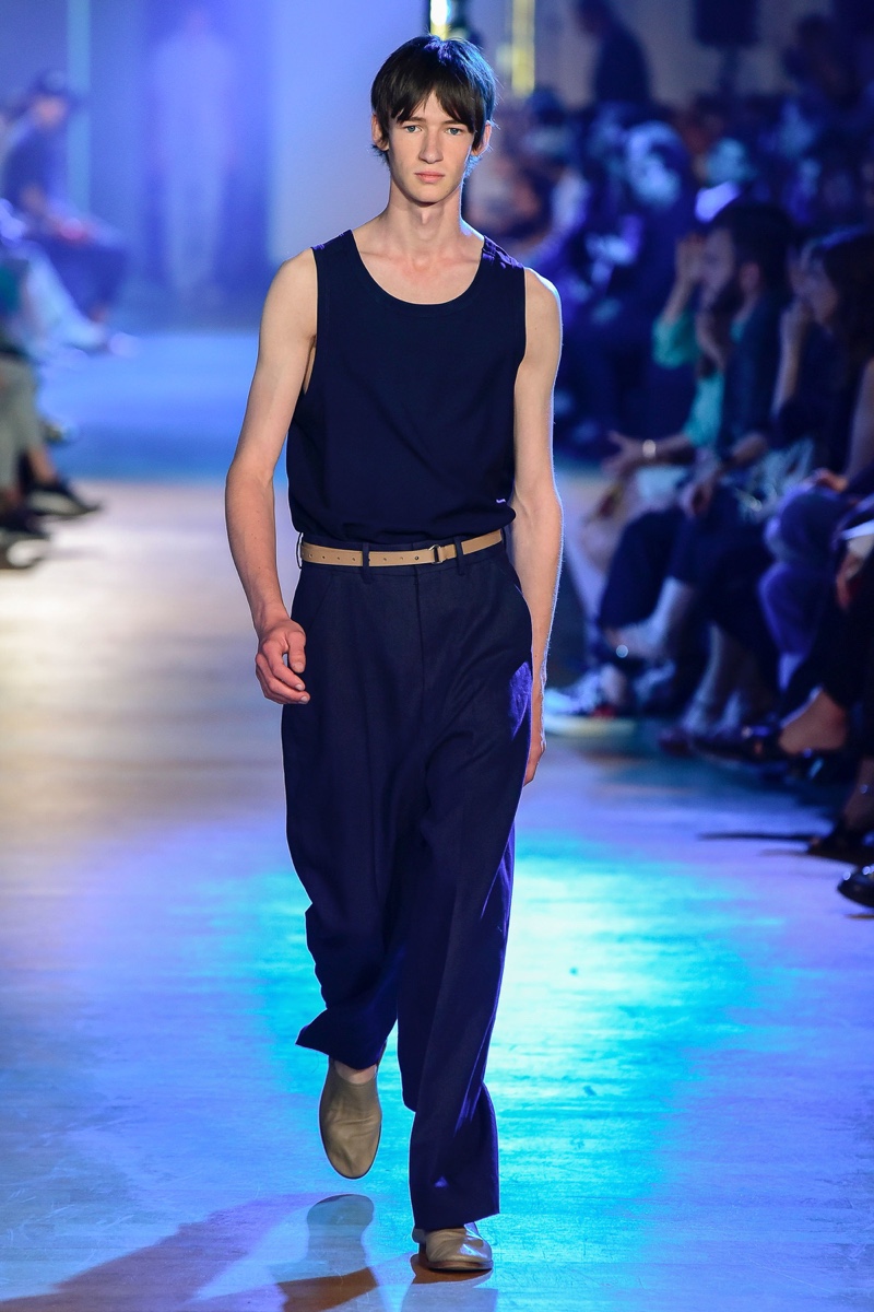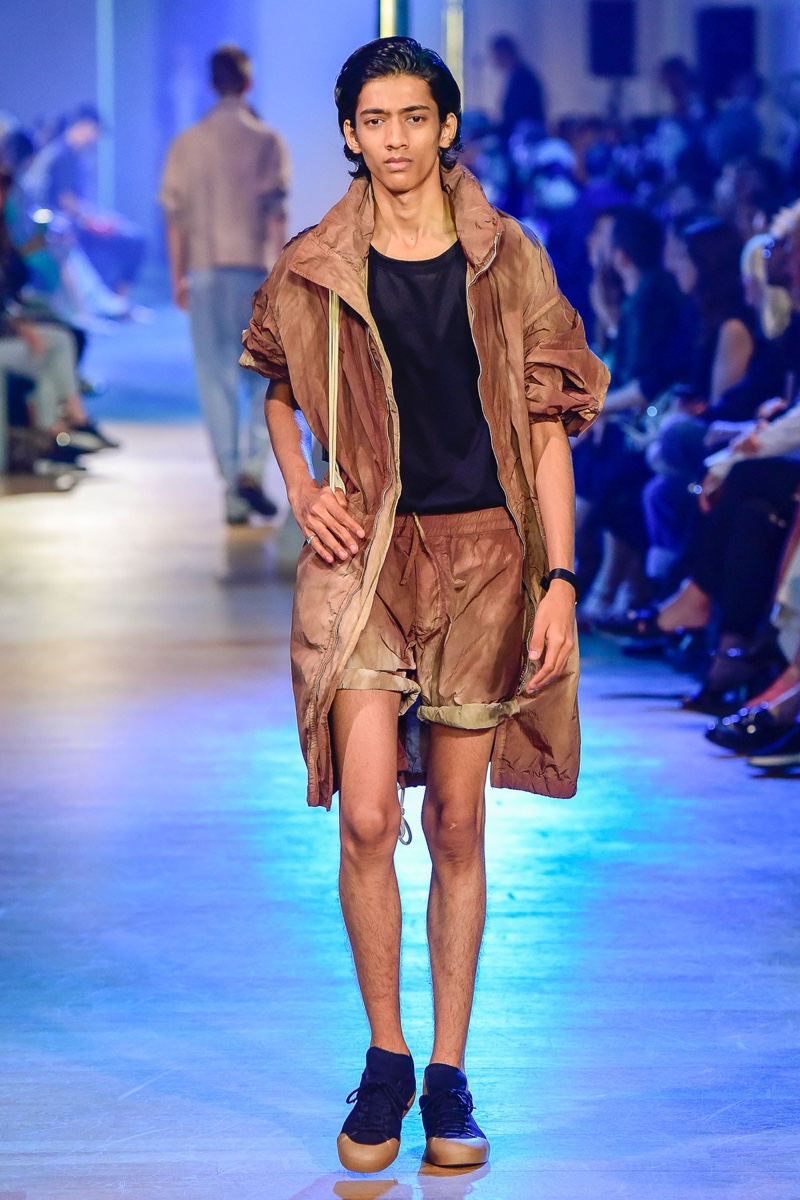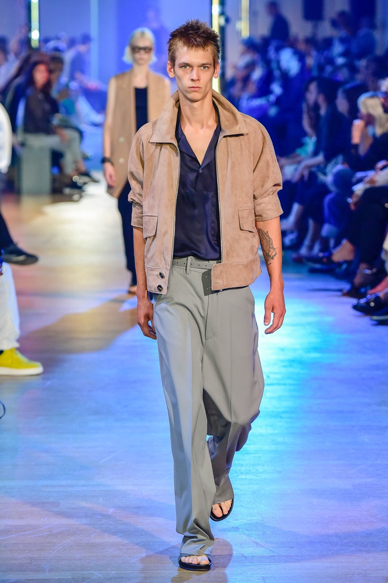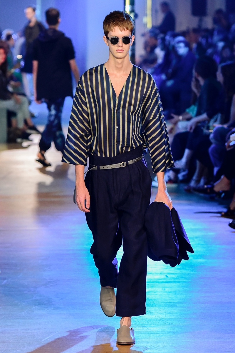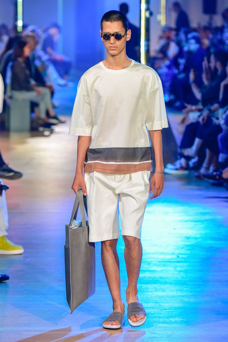Cerruti 1881 sets the stage for spring-summer 2019 in Tokyo. Eastern designs influence the work of chief creative officer Jason Basmajian. Bringing a chic element to summer dressing, the man of Cerruti 1881 is treated to lightweight layers and relaxed tailoring. Proportion-wise, shorts and pants make an impact with high waists. Pleated details elongate clean lines. Meanwhile, half unbuttoned shirts embrace a boxy shape and fall in line with the collection’s kimono-inspired pieces. Delivering a wardrobe of short-sleeve coats, sporty parkas, and graphic tees, Cerruti 1881 maintains a simple color palette. Dusty neutrals join the accessible nature of black, navy, and grey. Finally, strap sandals, leather loafers, and sleek totes complete the season’s look.