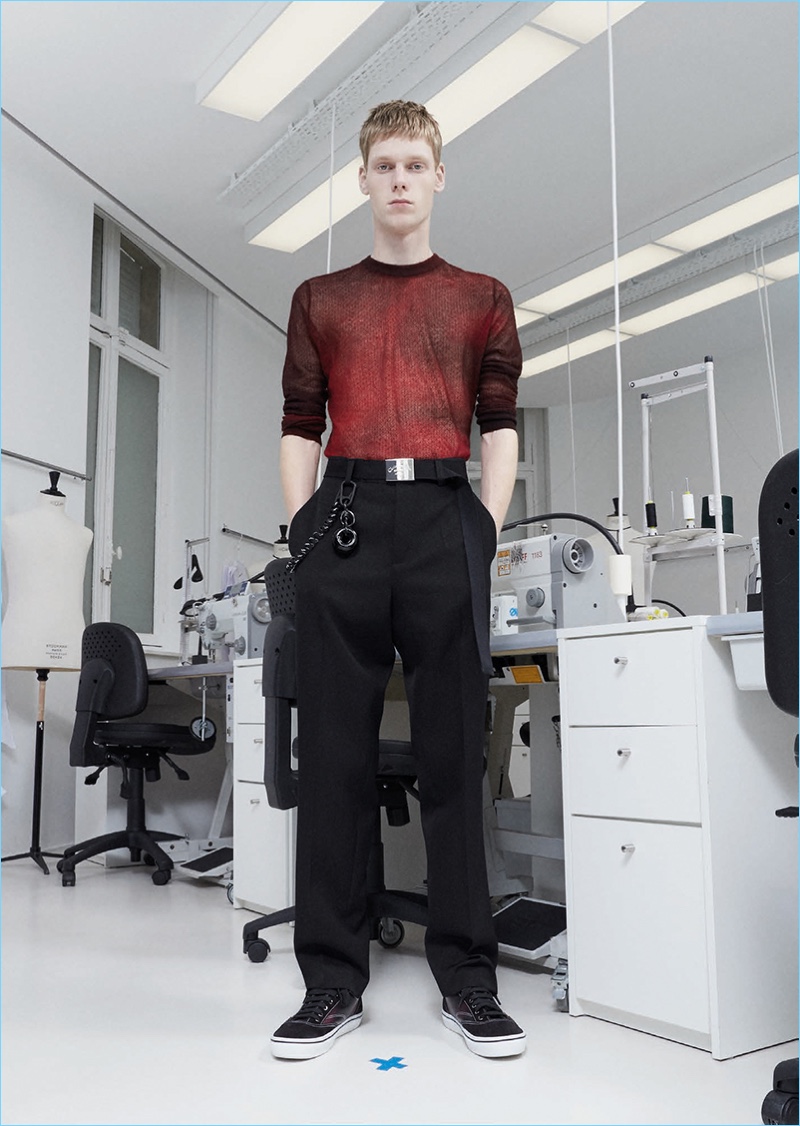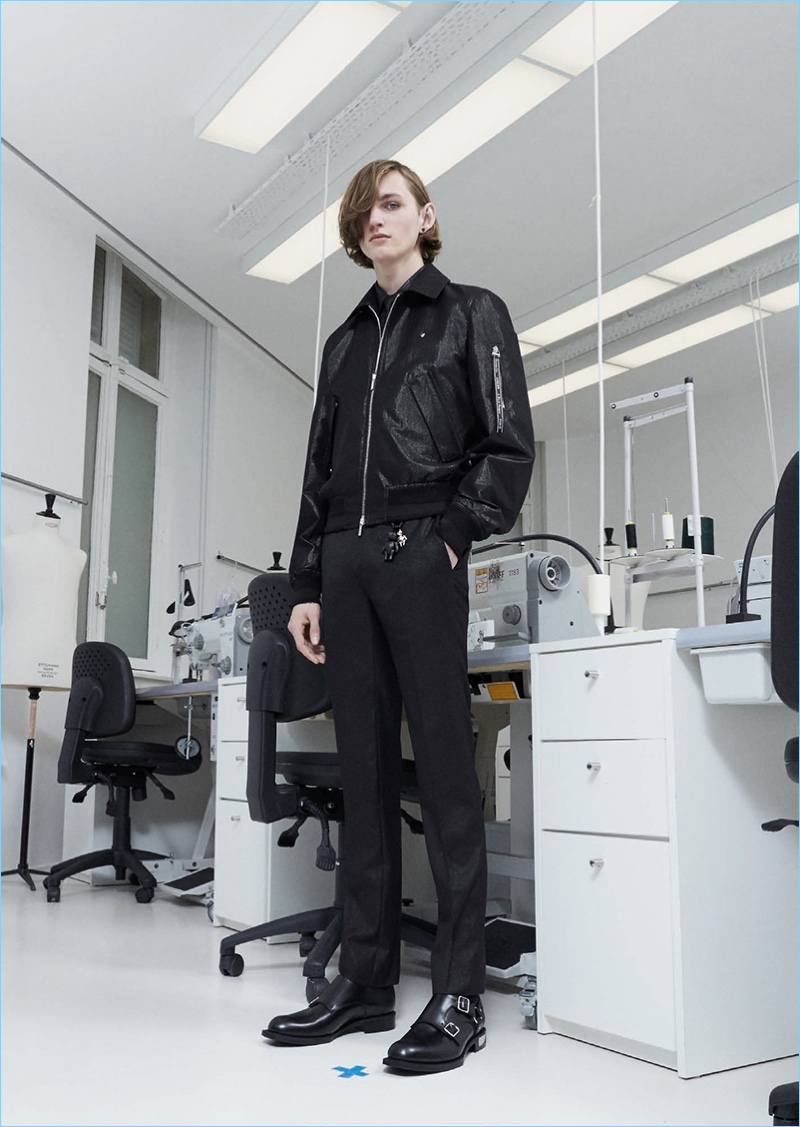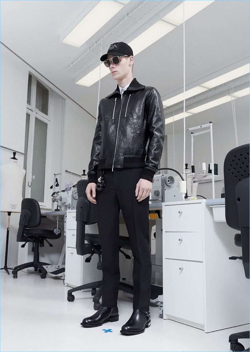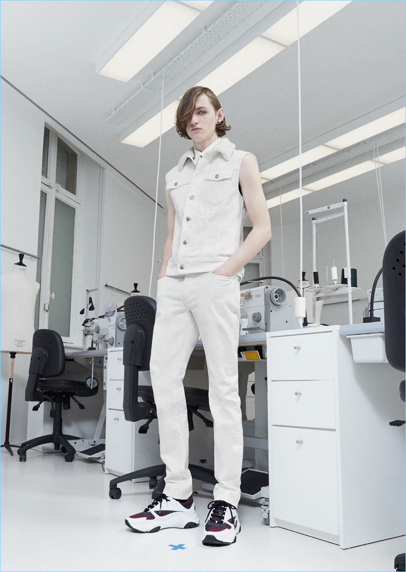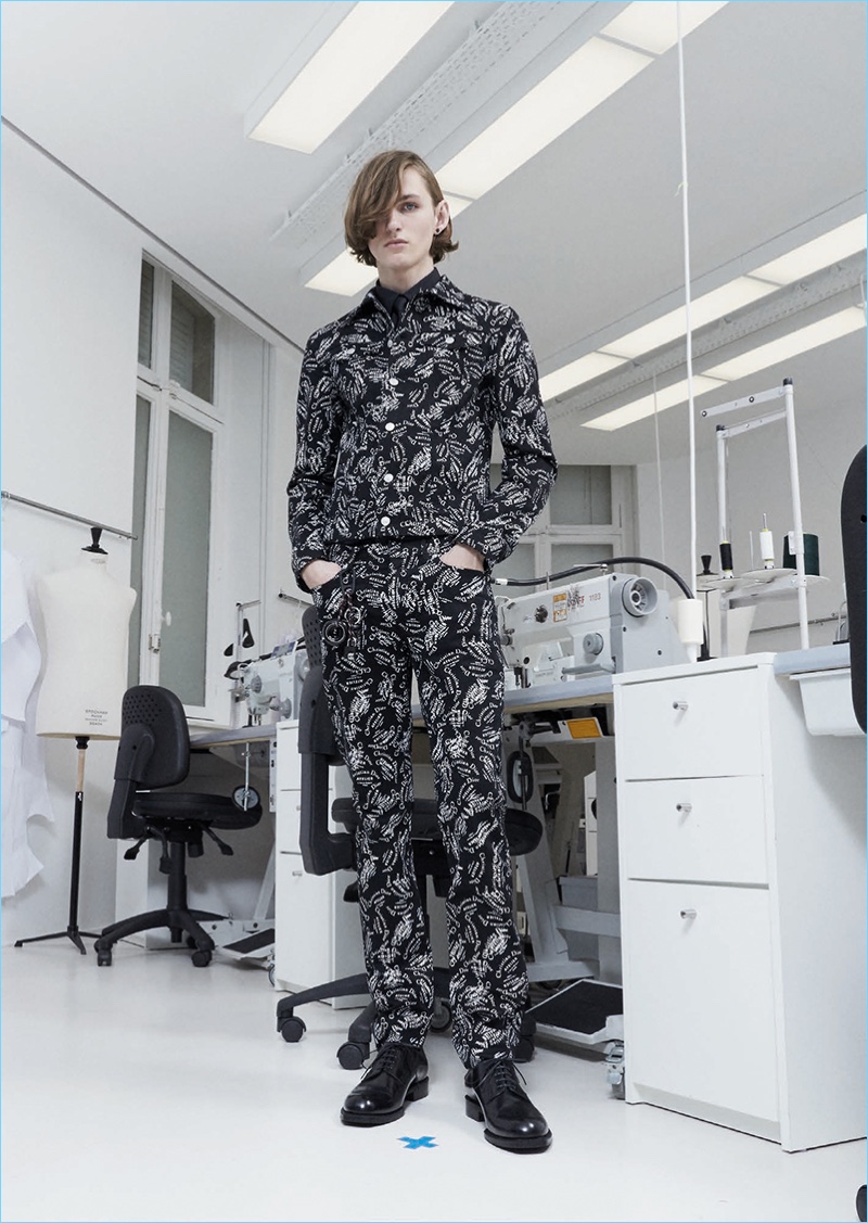 Following the news that Kris Van Assche is departing the brand, Dior Homme unveils a new lookbook. The brand paints a dark image with its pre-fall 2018 collection. Tailoring is front and center for the occasion. Deep blue and red accent black as the fashion brand delivers on relaxed tailoring. Pleated trousers and sleek suit jackets join deconstructed essentials. Taking a page from a book of patterns, graphic lines adorn paneled jackets and coats. Meanwhile, a sporty element invades the lineup with graphic tees, casual jackets, and on-trend bags. The Dior man is also treated to gradient prints and high profile sneakers.