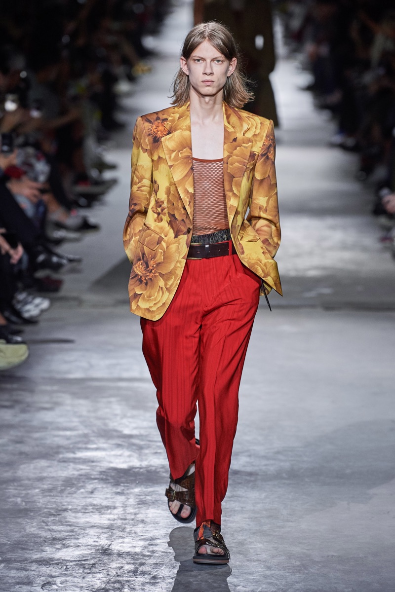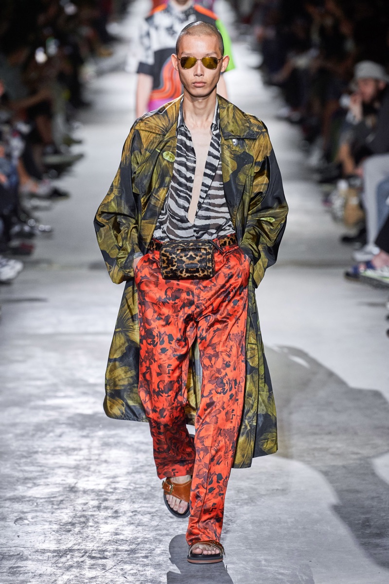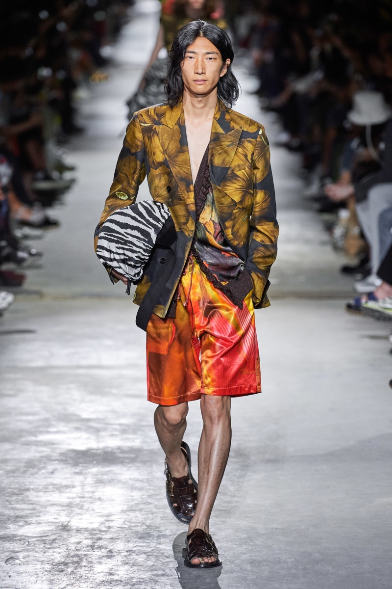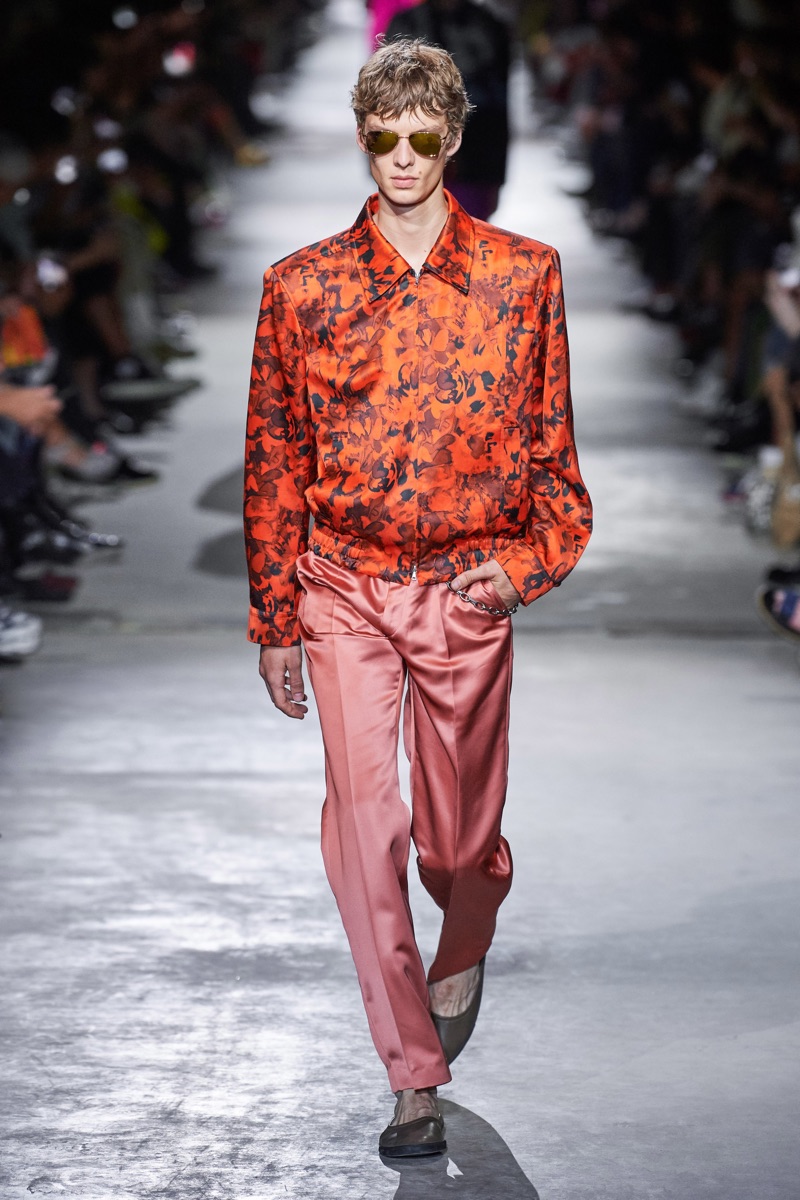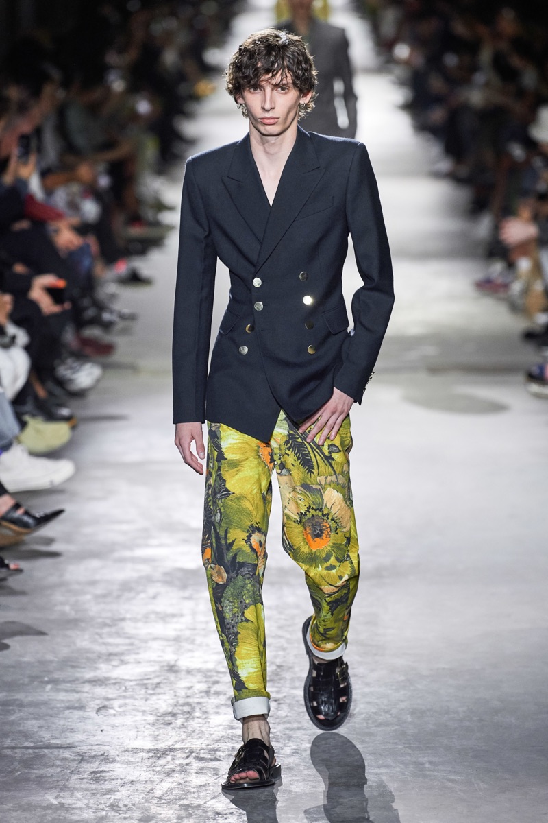 Dries Van Noten explores the more flamboyant side of menswear with his spring-summer 2020 collection. The designer references cult film classics such as 1982’s Querelle while approaching a more gender-fluid style for today. Vibrant colors and graphic prints collide as a bold update to menswear icons. Creating a harmonious balance, the silhouettes shift from narrow and fitted to relaxed with the utmost ease. Hemlines follow suit as Van Noten delivers shorts with both sensible and daring lengths. Ultimately, the collection achieves the ideal marriage of Van Noten’s celebrated artistry with practicality in function.