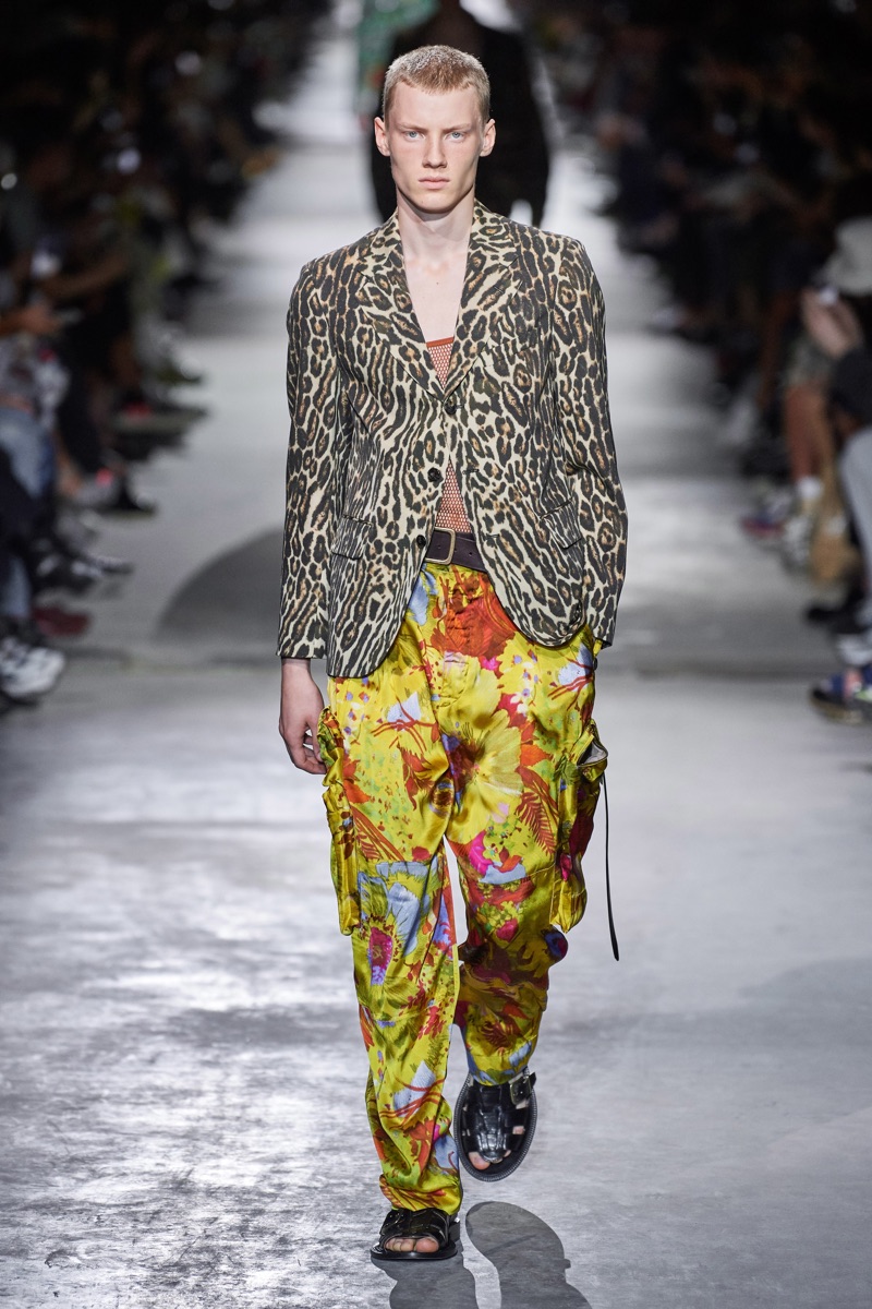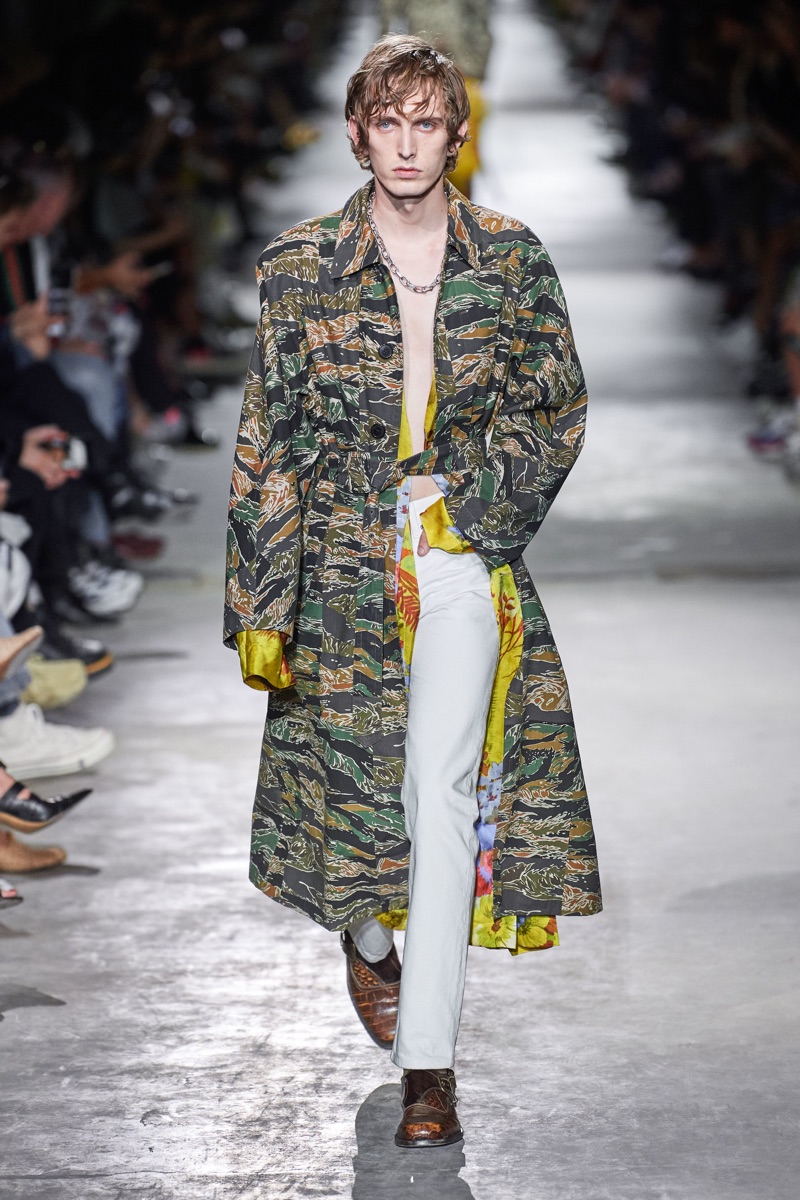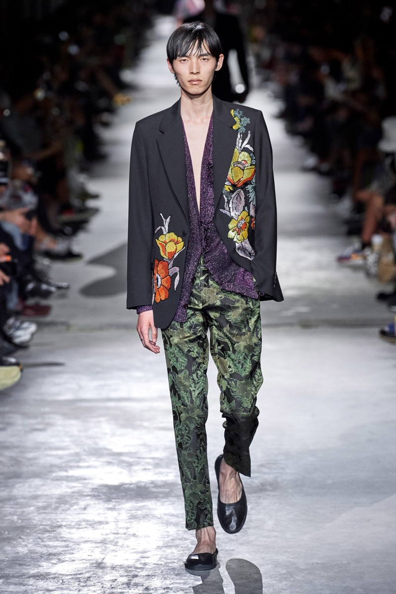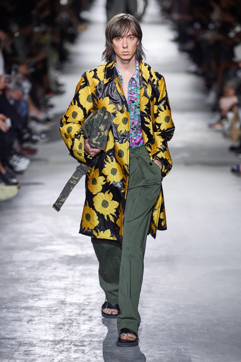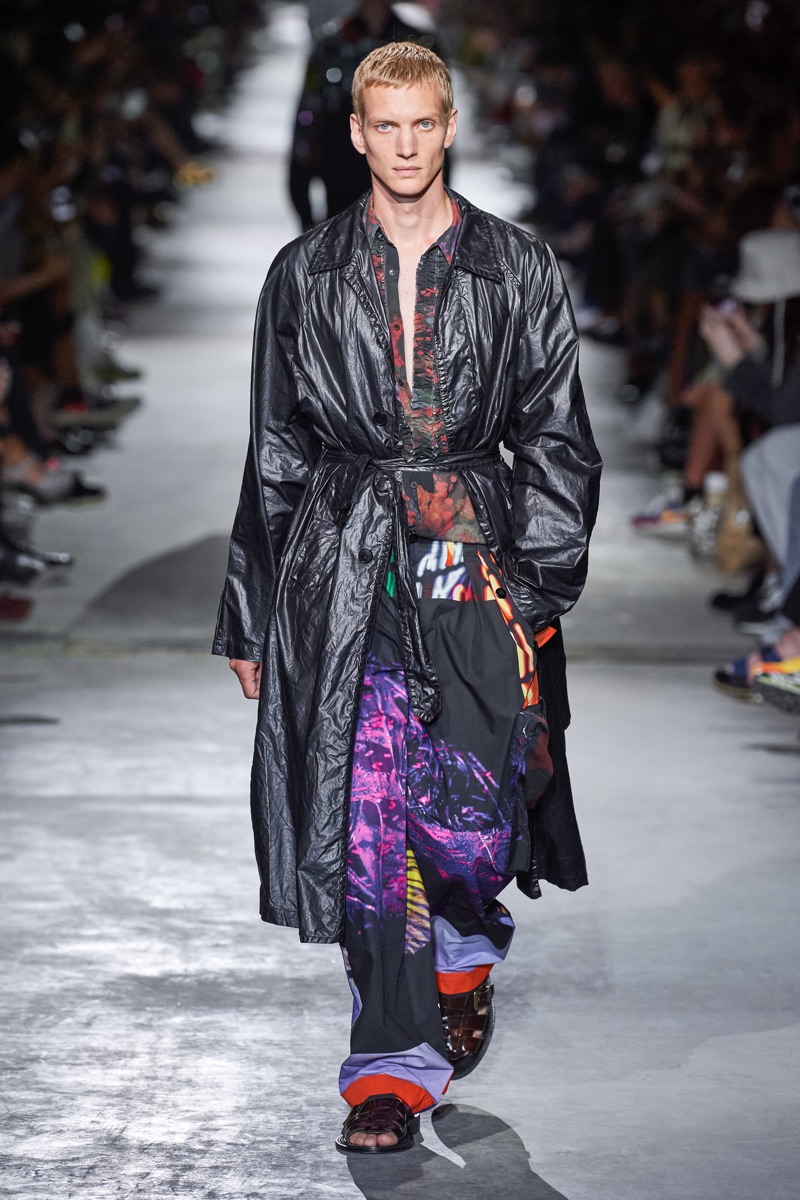 Dries Van Noten explores the more flamboyant side of menswear with his spring-summer 2020 collection. The designer references cult film classics such as 1982’s Querelle while approaching a more gender-fluid style for today. Vibrant colors and graphic prints collide as a bold update to menswear icons. Creating a harmonious balance, the silhouettes shift from narrow and fitted to relaxed with the utmost ease. Hemlines follow suit as Van Noten delivers shorts with both sensible and daring lengths. Ultimately, the collection achieves the ideal marriage of Van Noten’s celebrated artistry with practicality in function.