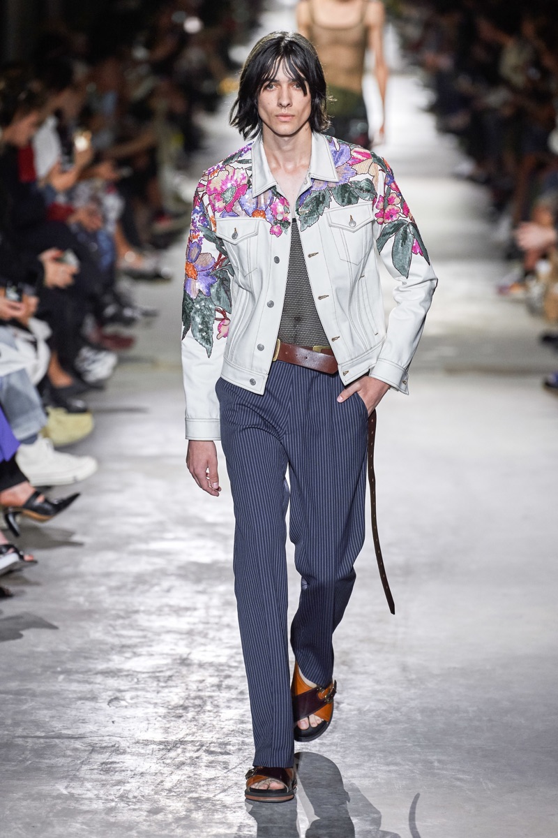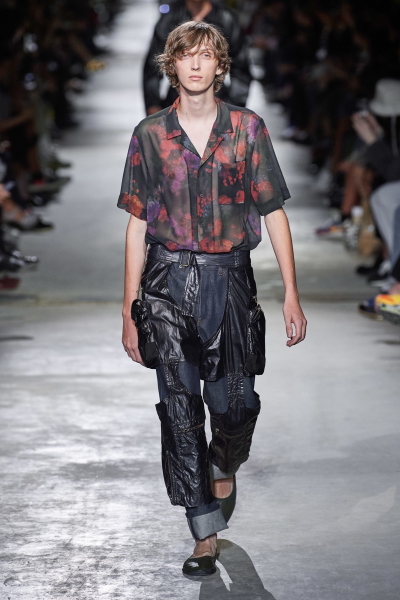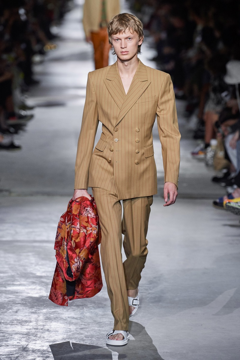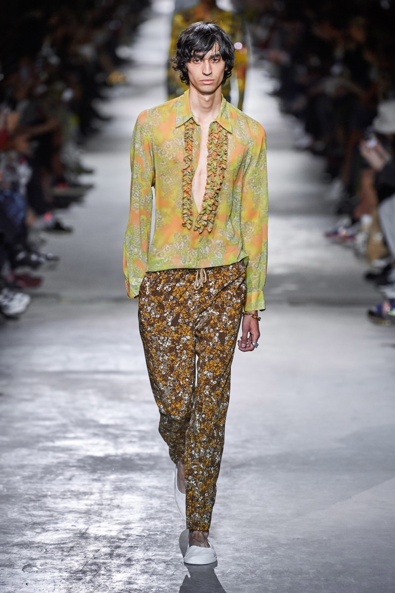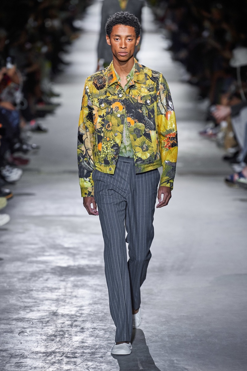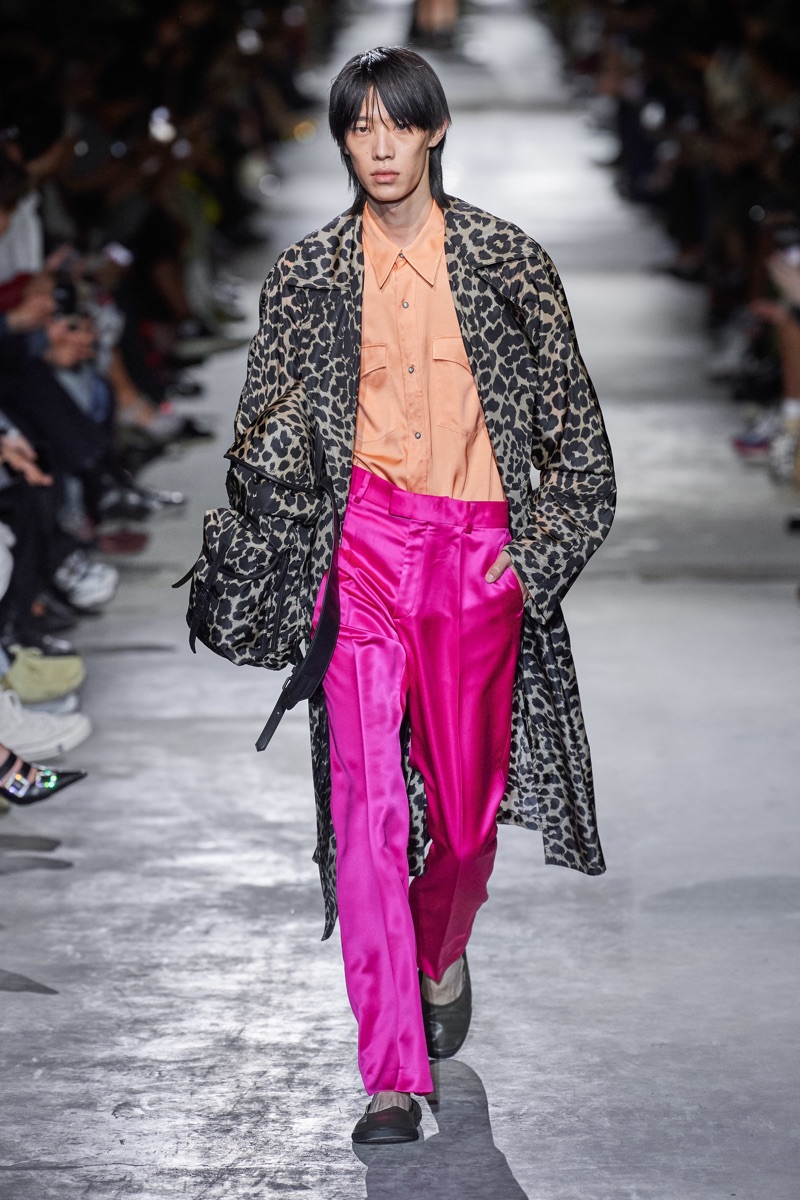 Dries Van Noten explores the more flamboyant side of menswear with his spring-summer 2020 collection. The designer references cult film classics such as 1982’s Querelle while approaching a more gender-fluid style for today. Vibrant colors and graphic prints collide as a bold update to menswear icons. Creating a harmonious balance, the silhouettes shift from narrow and fitted to relaxed with the utmost ease. Hemlines follow suit as Van Noten delivers shorts with both sensible and daring lengths. Ultimately, the collection achieves the ideal marriage of Van Noten’s celebrated artistry with practicality in function.
