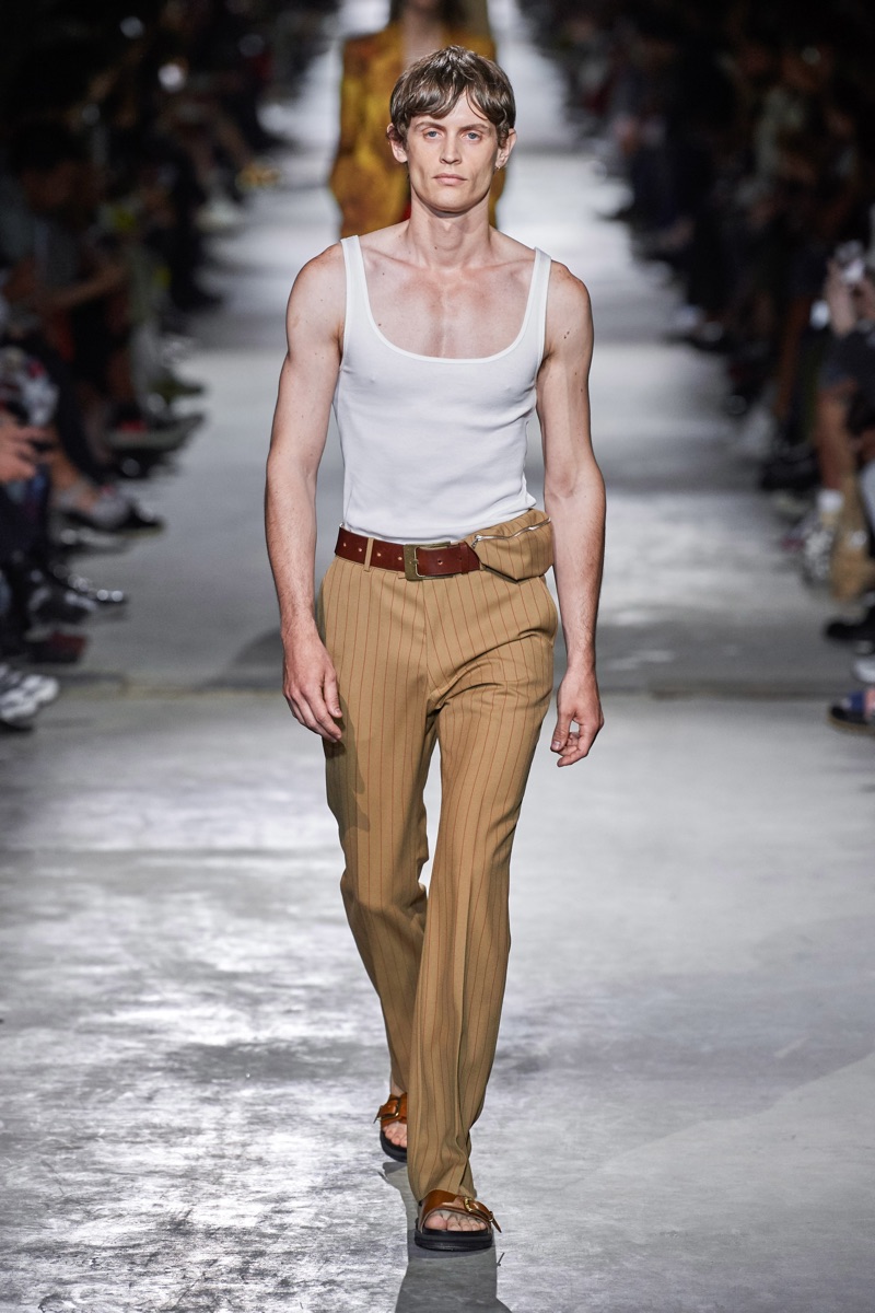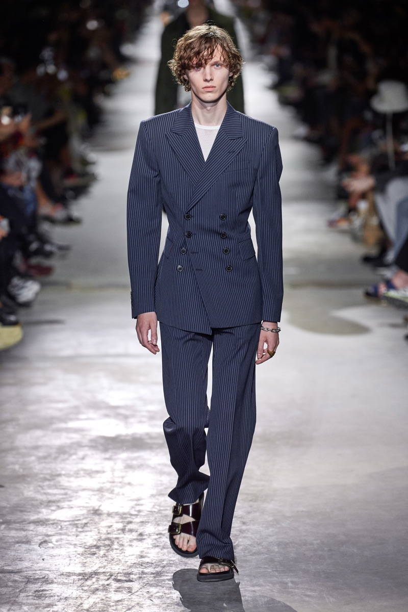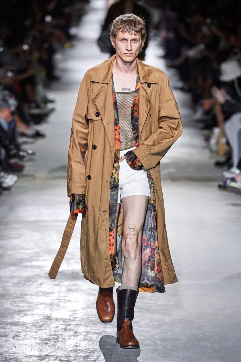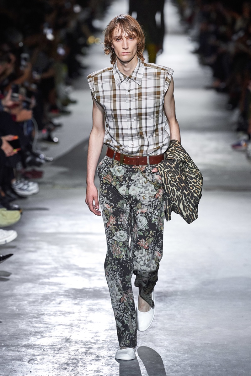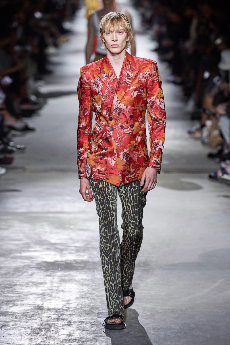 Dries Van Noten explores the more flamboyant side of menswear with his spring-summer 2020 collection. The designer references cult film classics such as 1982’s Querelle while approaching a more gender-fluid style for today. Vibrant colors and graphic prints collide as a bold update to menswear icons. Creating a harmonious balance, the silhouettes shift from narrow and fitted to relaxed with the utmost ease. Hemlines follow suit as Van Noten delivers shorts with both sensible and daring lengths. Ultimately, the collection achieves the ideal marriage of Van Noten’s celebrated artistry with practicality in function.