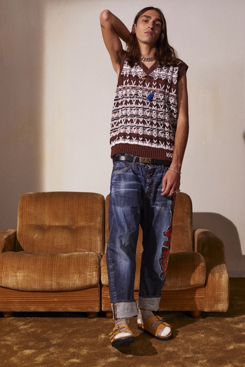 Embodying a perennial youth, Dsquared2 looks to its resort 2022 collection with the idea of hanging out with friends. Eclectic tastes converge with a certain spontaneity for the season. Dan and Dean Caten deliver fun layers to dissect for the right occasion.