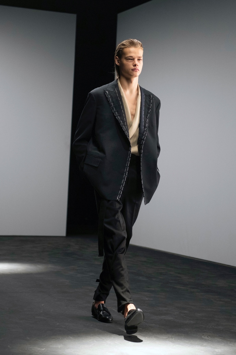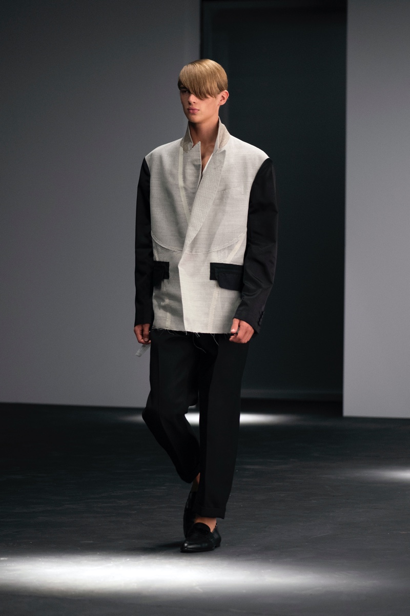 It cannot be denied that this fine collection places a concentration on the pleasure of work and the gorgeousness of the refinement and functionality of the pieces. The trend is that investment on an emotional level and the clothing’s meaning are both at a high level of importance for the maker and the consumer who buys and wears the clothing. The ease of this menswear may seem to be noted as somewhat subversive. With the deconstruction and construction processes and the various tailoring elements, the overall result is an impressive collection.