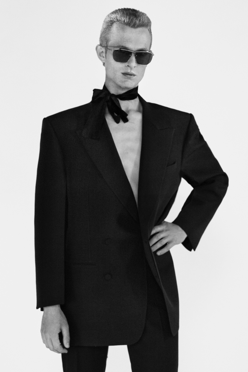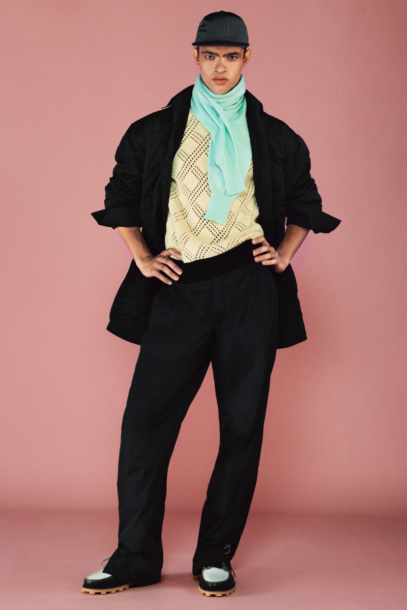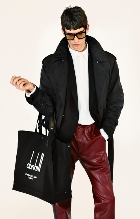 Overall, the Dunhill collection represents an array of styles and varieties that aren’t afraid to show their imperfections and take on some of the “provocative effeminacy” of the ’80s casuals. “In this collection, I wanted to look at certain identities,” says Dunhill creative director Mark Weston. “These are clothing archetypes, but also identities of Britishness, of masculinity, of uniforms, as well as those of Dunhill past and the new era archetypes that we have sought to establish here.”