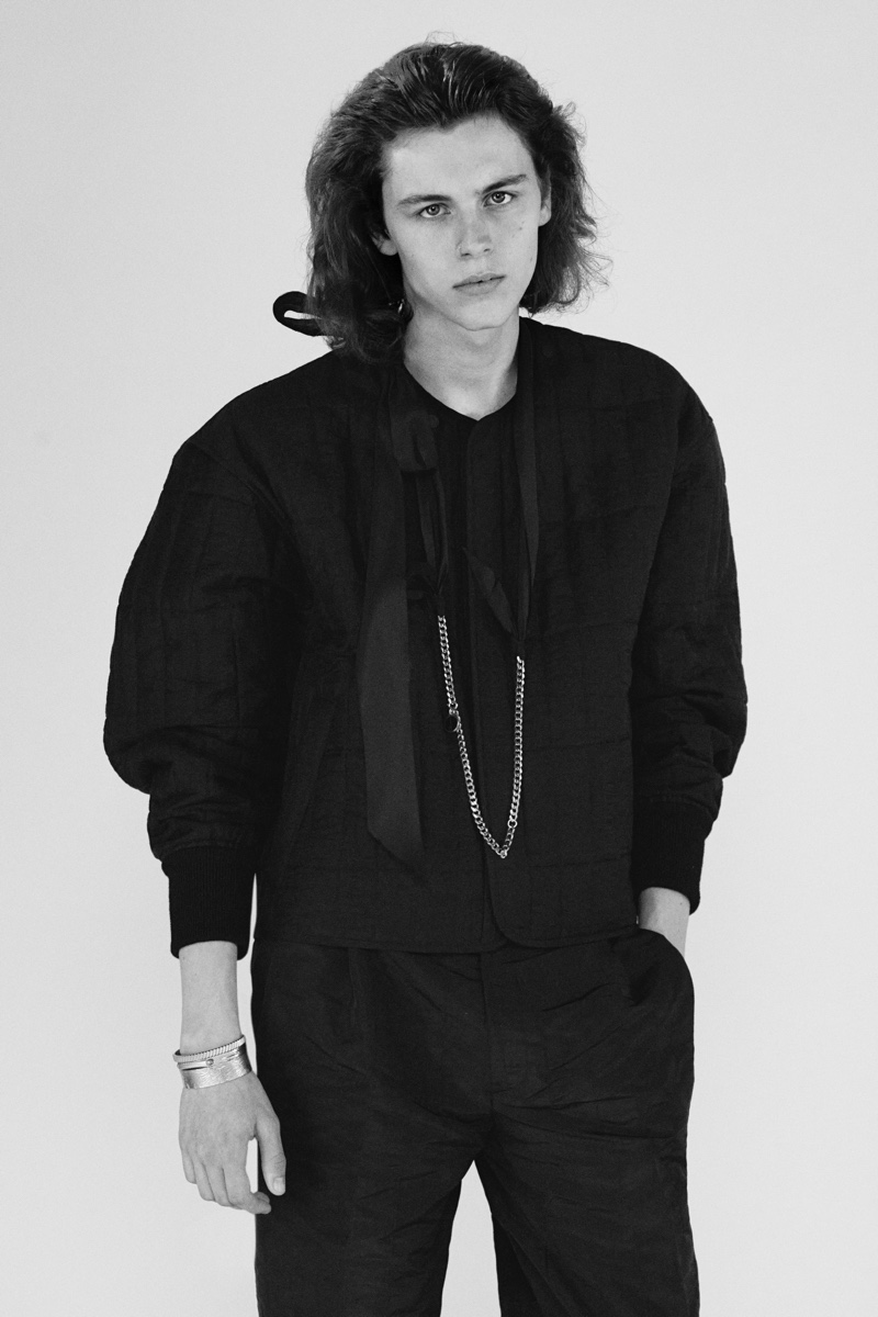 Working with art director Ezra Petronio, Mark Kean photographs models Abdullahi Amure, Andriy Skrynnyk, Keenan Gyamfi, Lawal Badmus, Louis Hart, and Nick Offord for Dunhill’s spring-summer 2022 lookbook. The models wear Mark Weston’s latest designs for the fashion house with styling by Elliott Smedley.